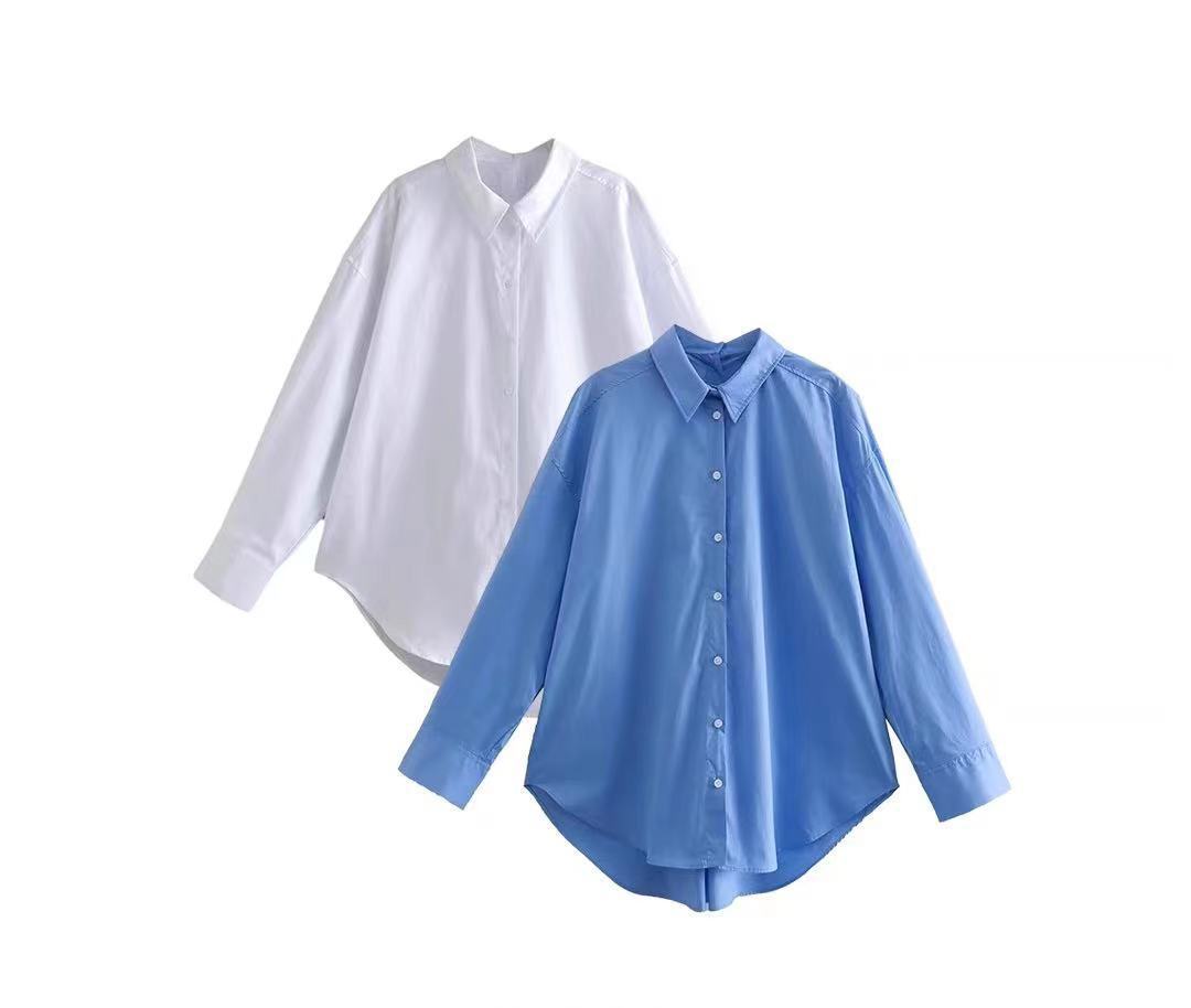 ZA 국경 간 여성 의류 도매 유럽과 미국 스타일의 새로운 면 포플린 틈새 디자인 느슨한 캐주얼 긴팔 셔츠
