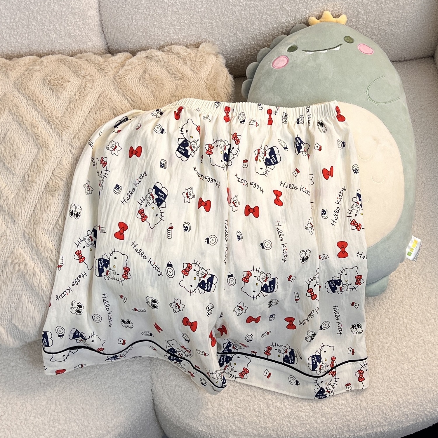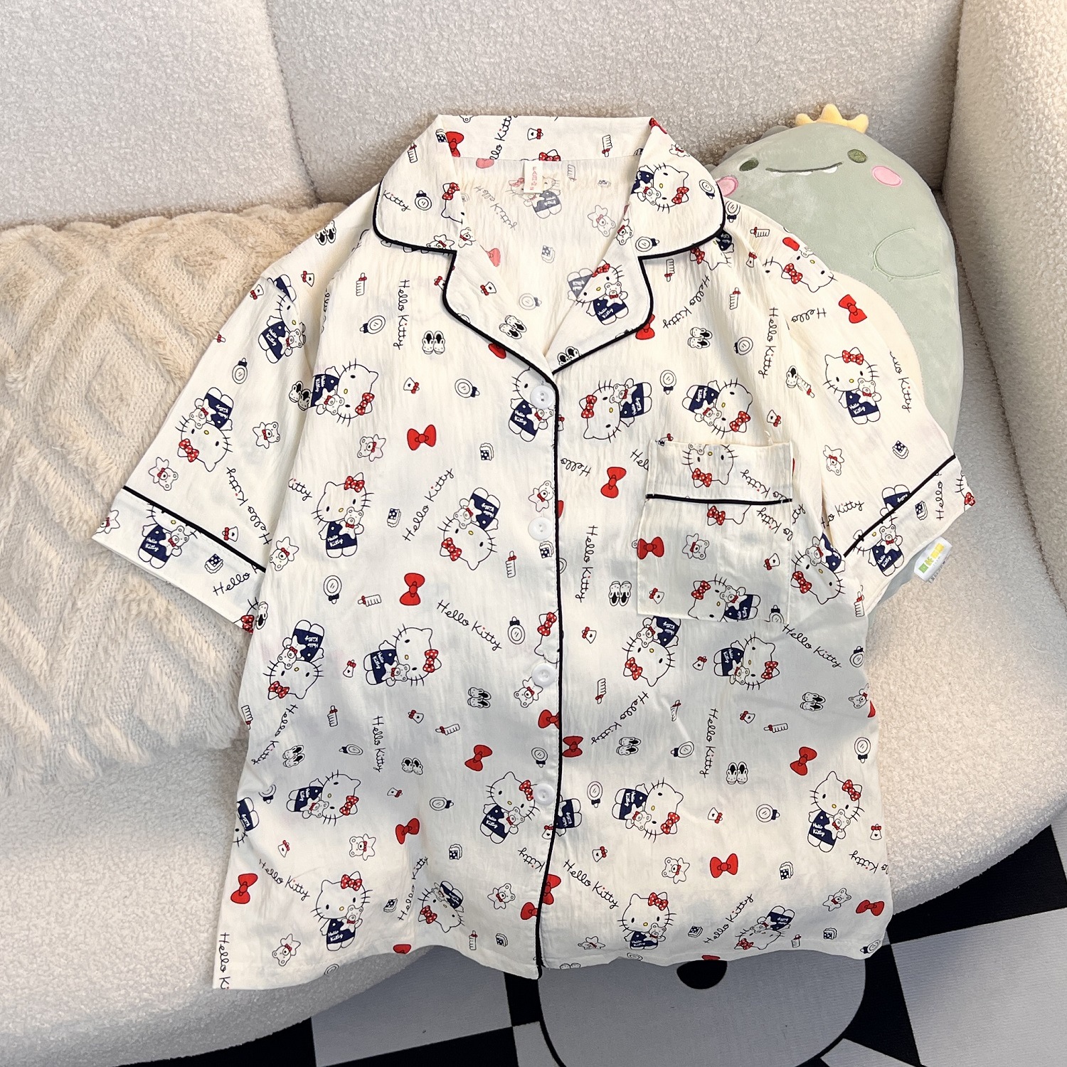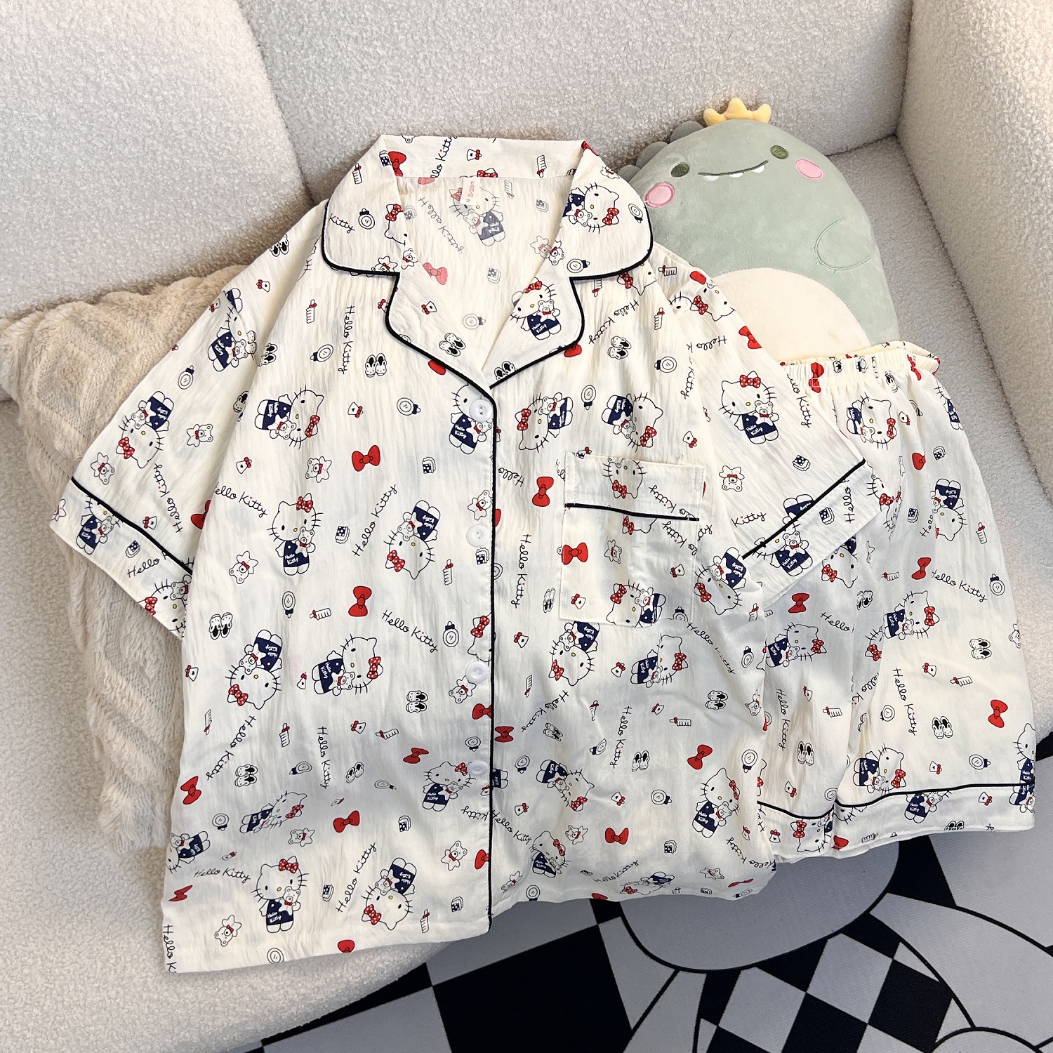 Bow KT 고양이 잠옷 여성 여름 구름 면화 반팔 반바지 얇은 느슨한 학생 기숙사 가정 의류 세트스토어 가기