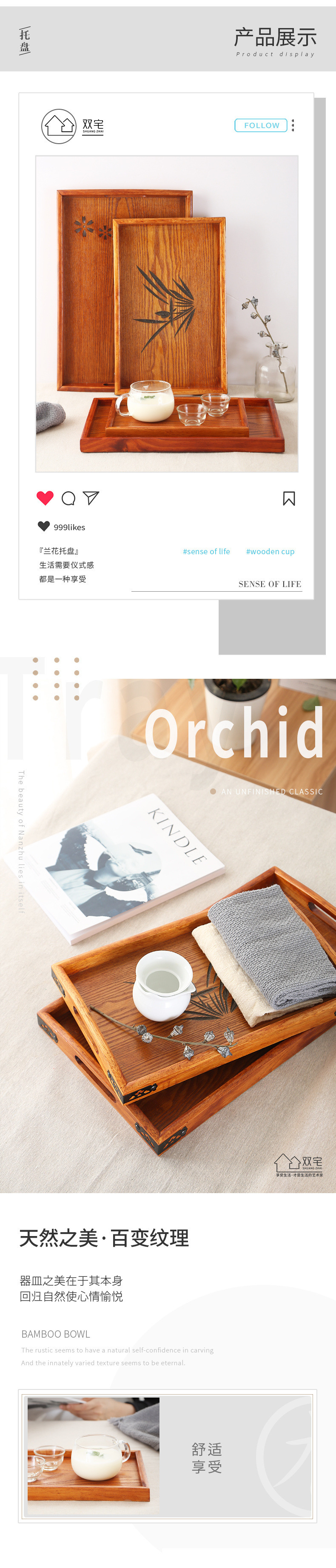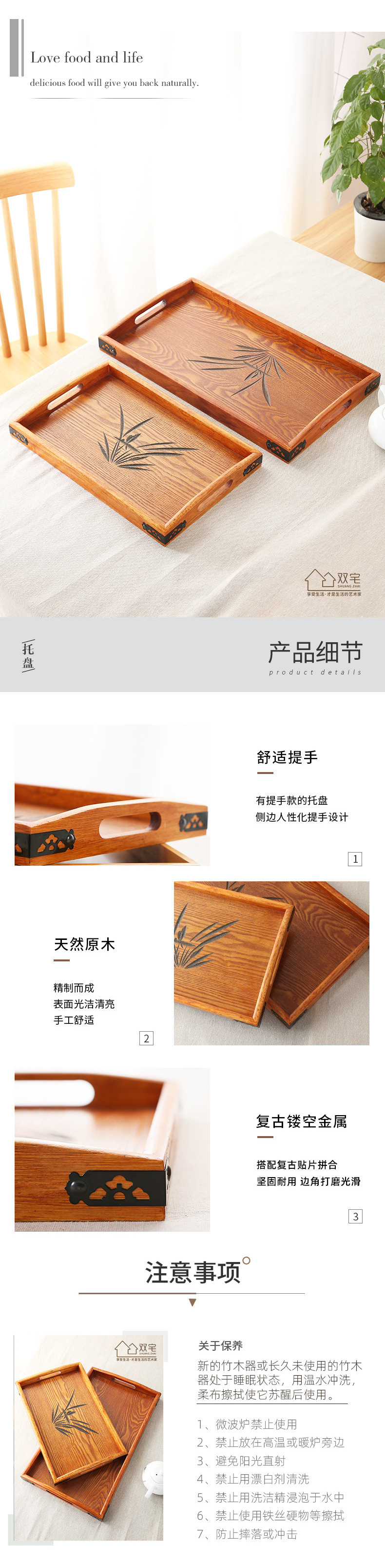 초대형 60*40 구운 양 트레이 대형 나무 트레이 단단한 나무 직사각형 가정용 컵 트레이 서빙 트레이 화상 방지