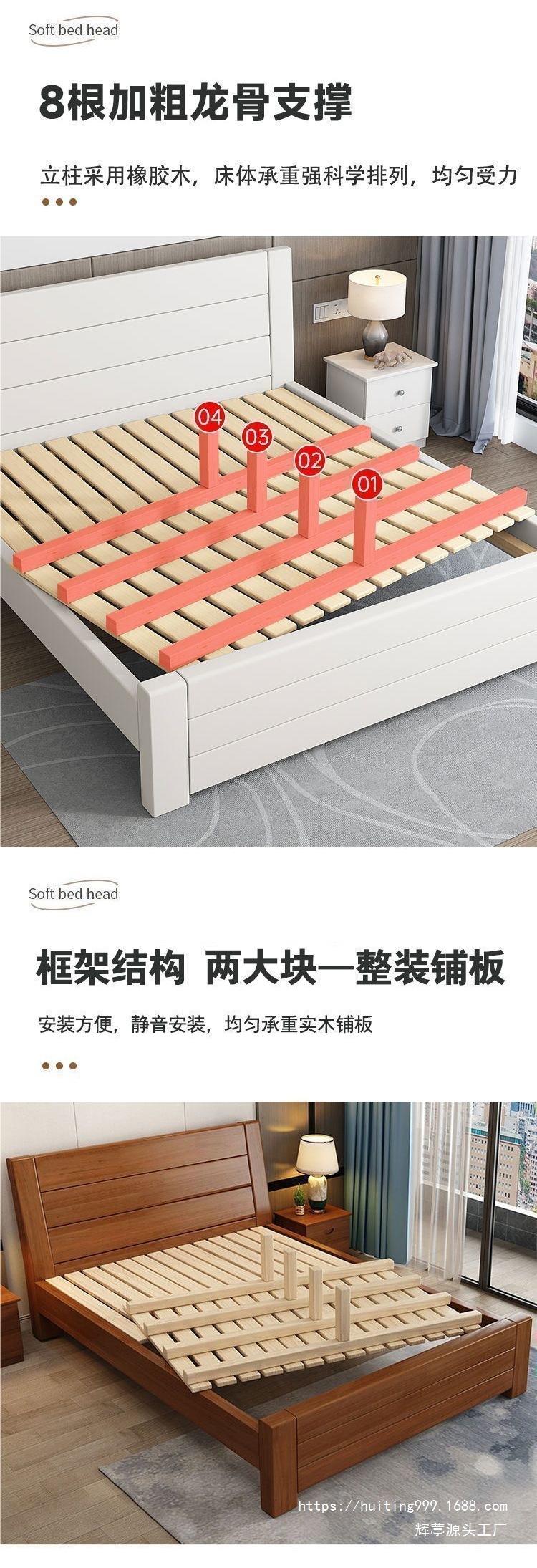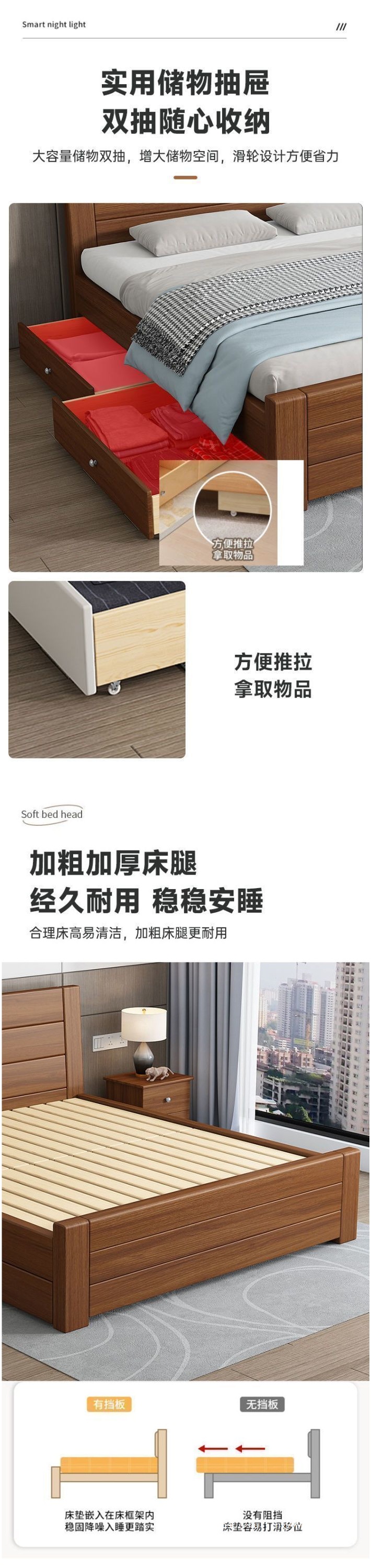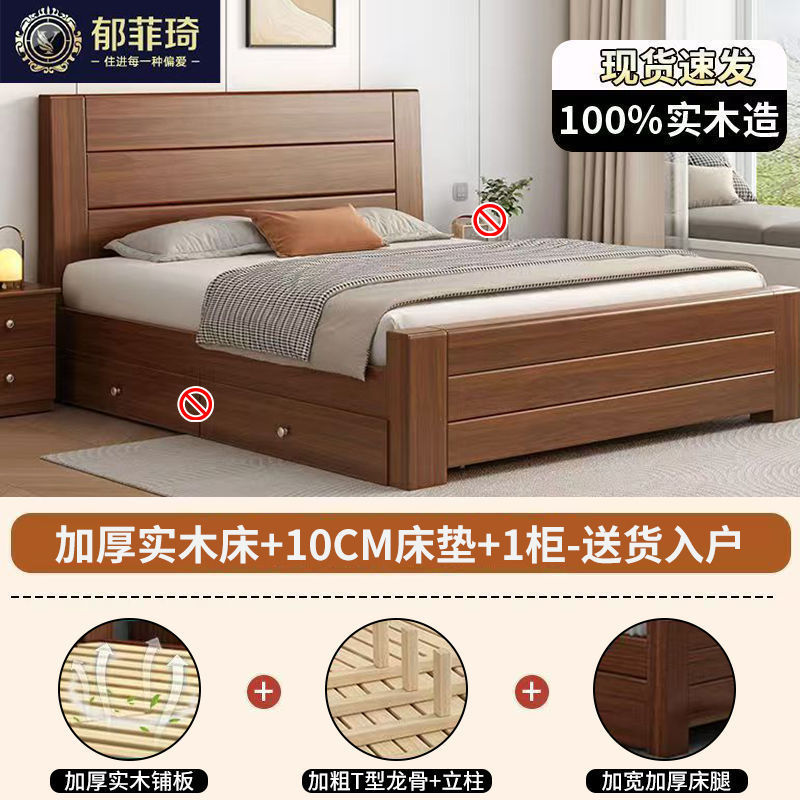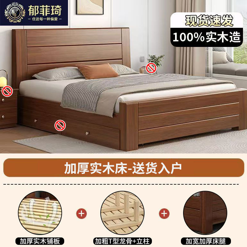 중국 스타일 단단한 나무 침대 1.8m 더블 침대 마스터 침실 경제적 인 간단한 1.5m 싱글 침대 가정용 1.2m 두꺼운 침대스토어 가기