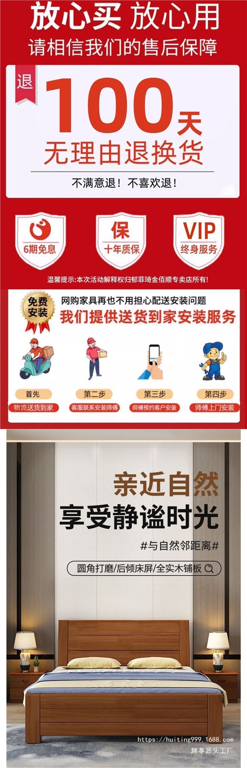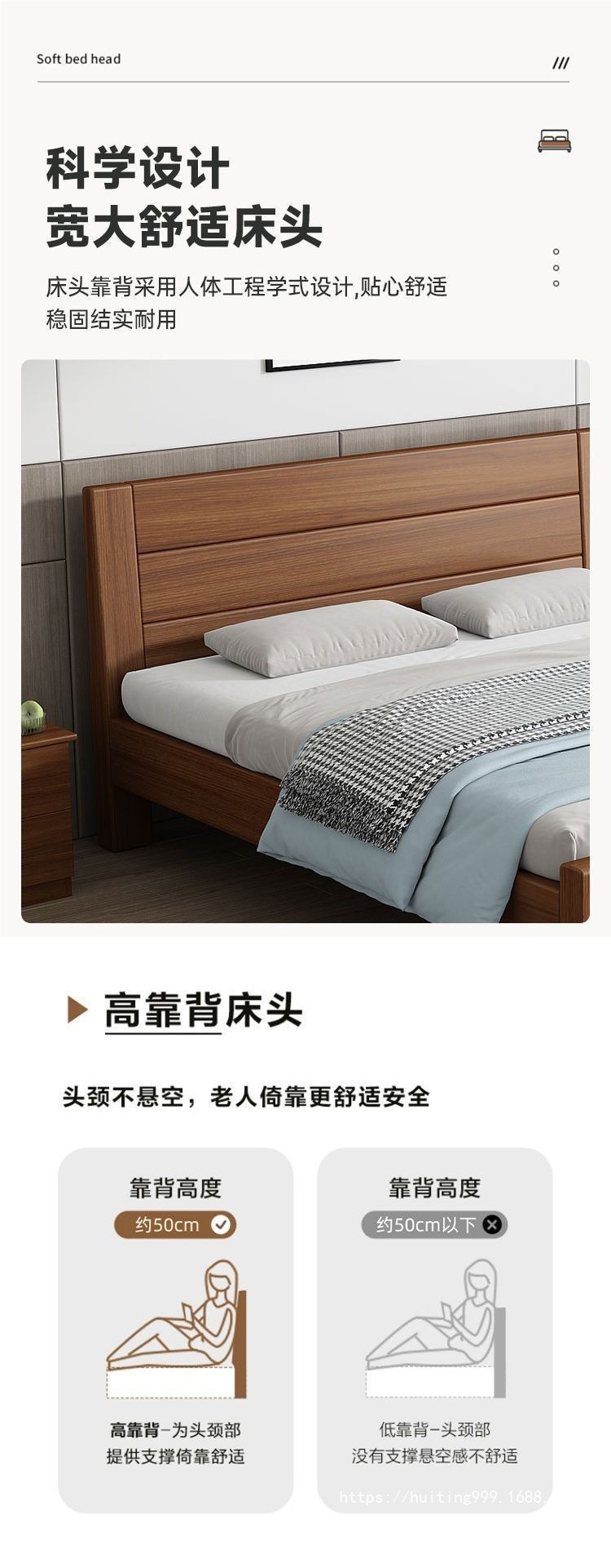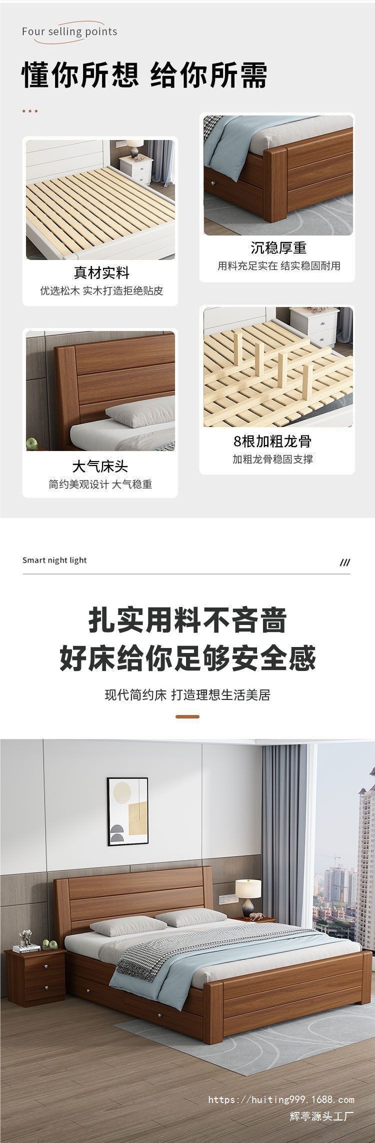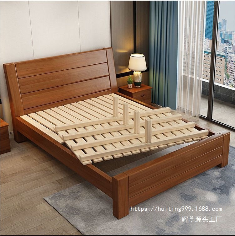 중국 스타일 단단한 나무 침대 1.8m 더블 침대 마스터 침실 경제적 인 간단한 1.5m 싱글 침대 가정용 1.2m 두꺼운 침대스토어 가기