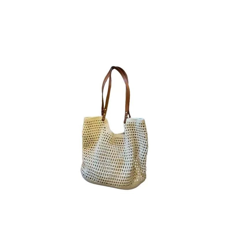 새로운 스타일의 밀짚 질감 대용량 해변 캐주얼 다목적 여행 어깨 토트 백 라이트 여행 폴리 에스터