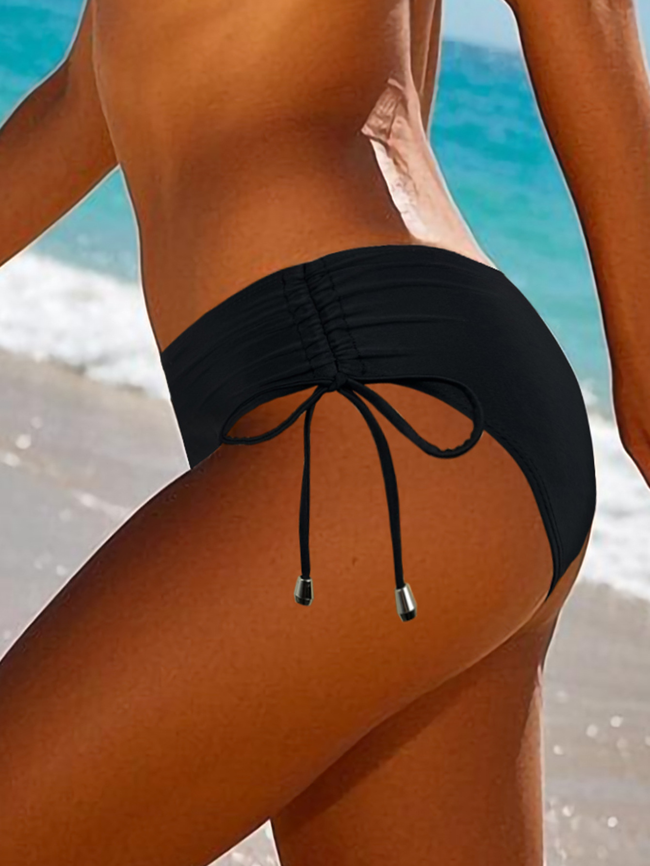 2025년 여름 인기 모델은 실버 벨 디자인의 솔리드 컬러 양쪽 끈이 있는 여성용 수영복입니다.