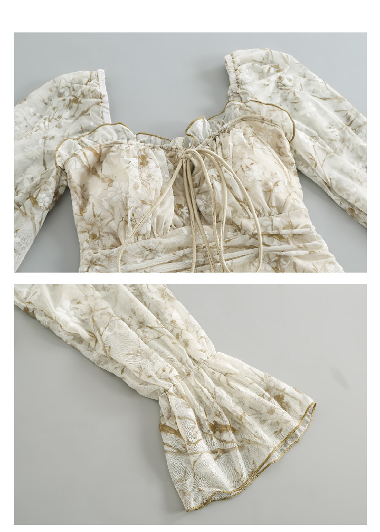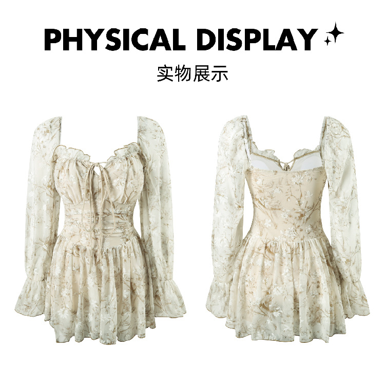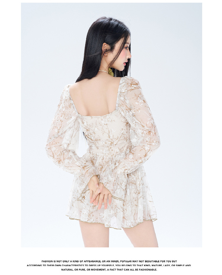 여자 레이스 꽃무늬 스커트 수영복, 여성용 긴팔 자외선 차단 원 숄더 섹시하고 달콤한 배 커버 순수한 욕망 휴가 수영복스토어 가기