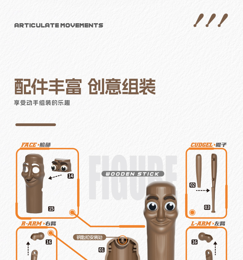 외국 산해고전 자석 나무 막대 TungTungSahur 손 모델 다관절 이동식 조립 장난감