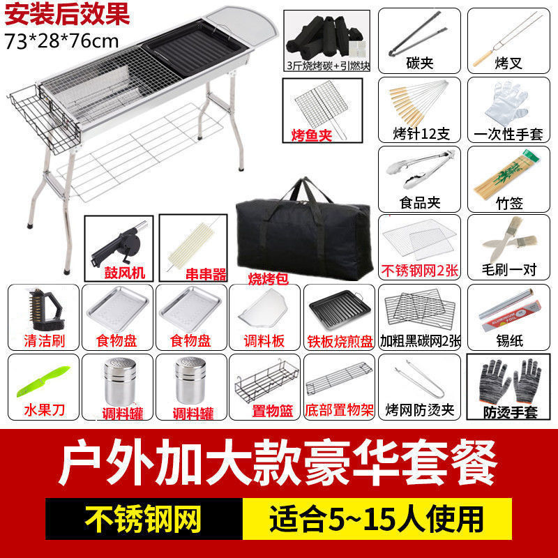 대형 스테인레스 스틸 그릴 숯 야외 바베큐 그릴 야외 가정용 그릴 숯 그릴 전체 세트스토어 가기