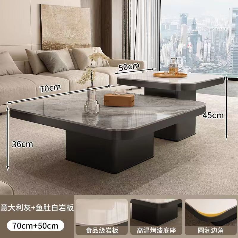 2025 이탈리아 하이 엔드 스퀘어 슬레이트 라이트 럭셔리 작은 아파트 심플 모던 커피 테이블 거실 미니멀리스트 홈 조합