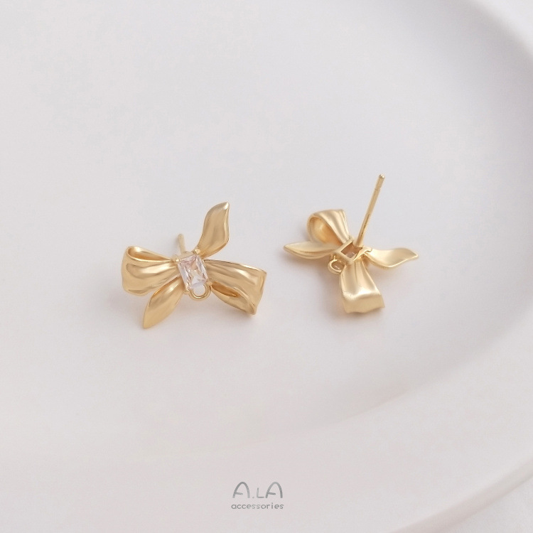 14K 금도금 전기 도금 직사각형 지르코늄 패션 보우 귀걸이 925 실버 바늘 수제 diy 귀걸이