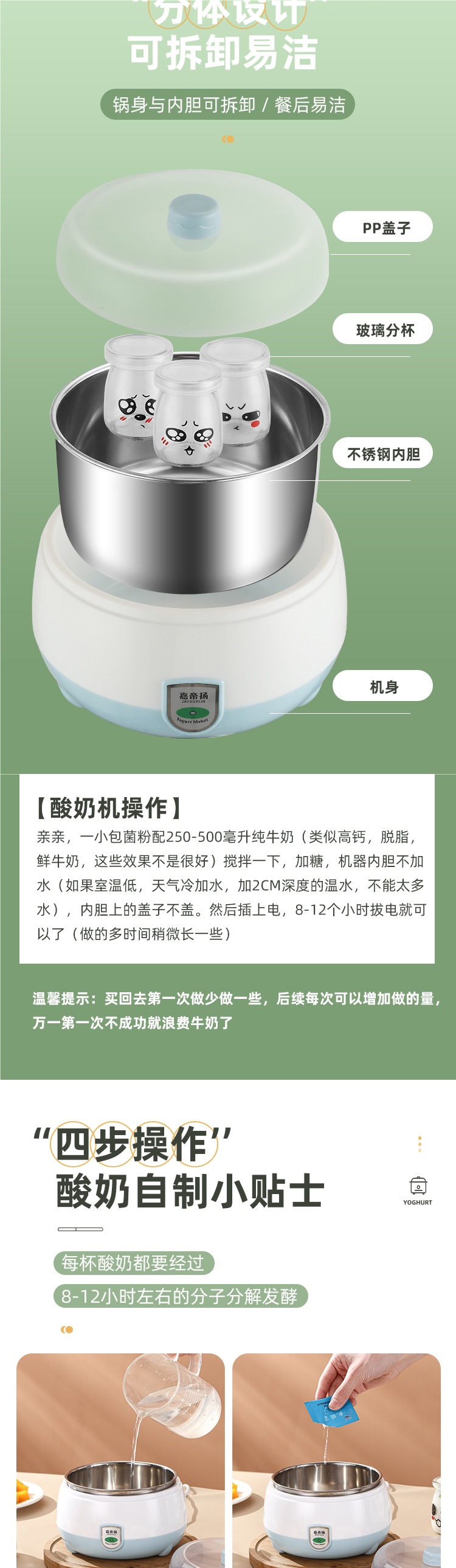Jiadiyang 요구르트 기계 가정용 소형 완전 자동 항온 발효 수제 요구르트 미니 발효 기계 유리 컵