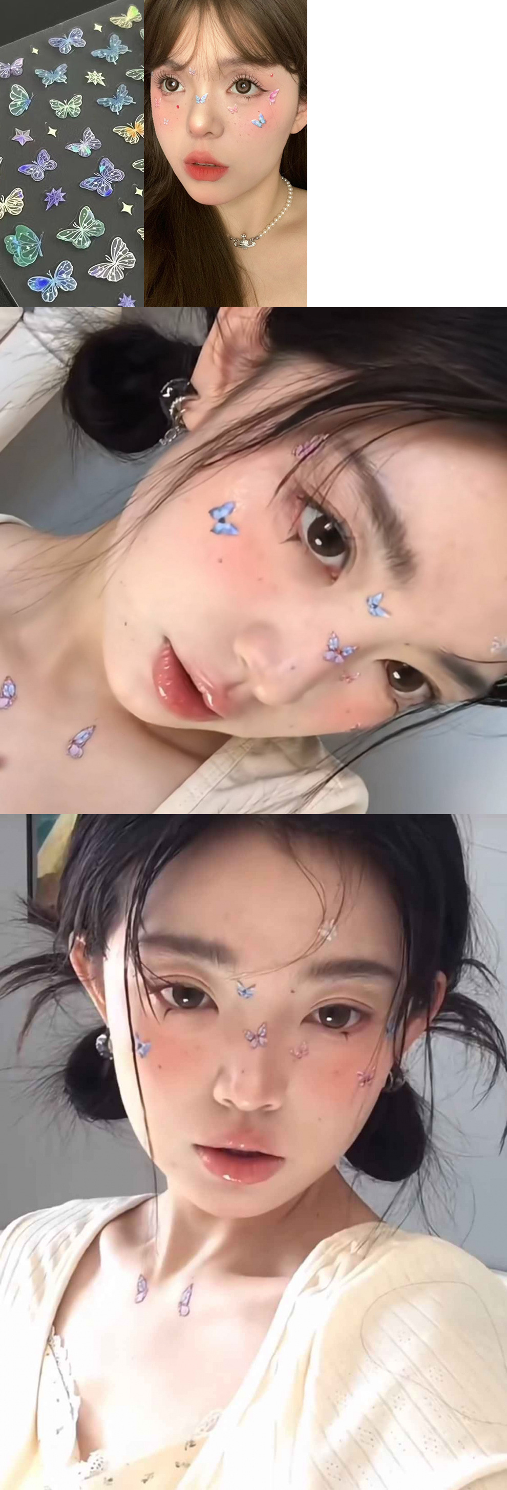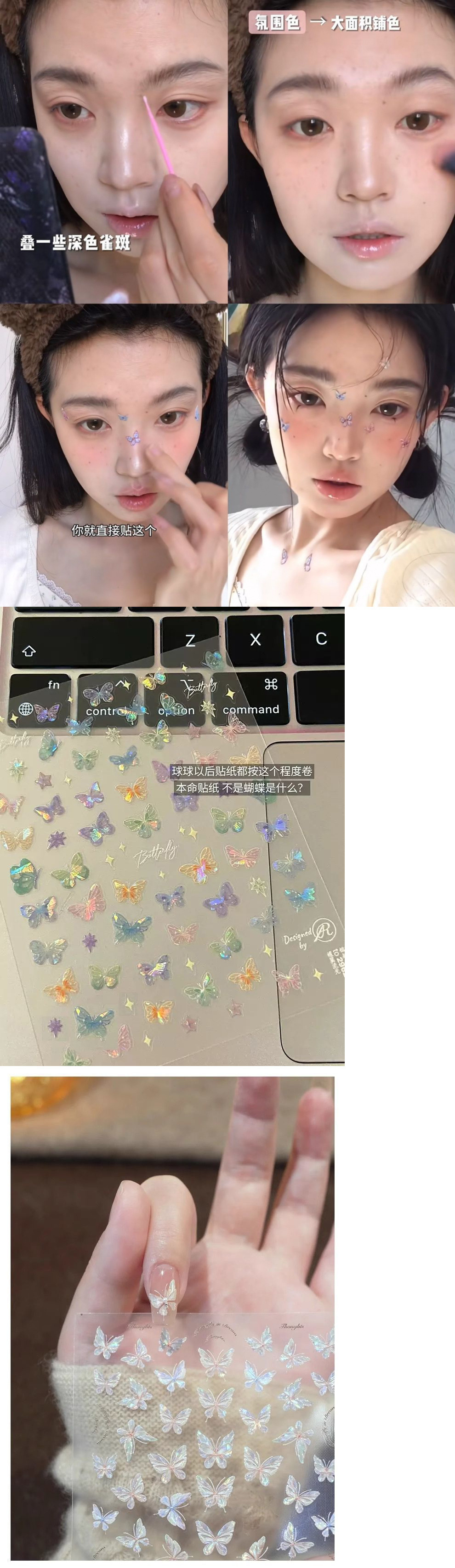 나비 소녀 네일 아트 스티커 쉘 라이트 나비 네일 아트 플로팅 크리스탈 다이아몬드 스티커 매일을위한 판타지 크리 에이 티브 나비 메이크업