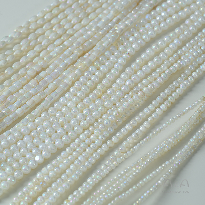 천연 쉘 비즈 전기 도금 AB 다채로운 빛 쉘 비즈 라운드 비즈 라운드 튜브 쌀 비즈 diy 페르시 팔찌 귀 보석 재료스토어 가기