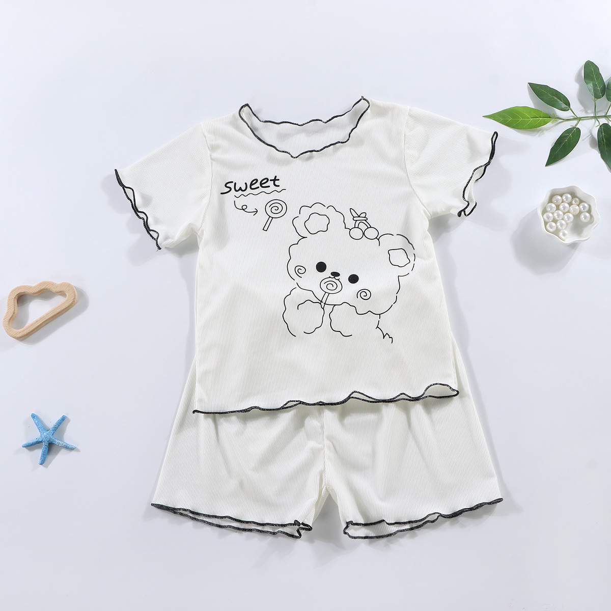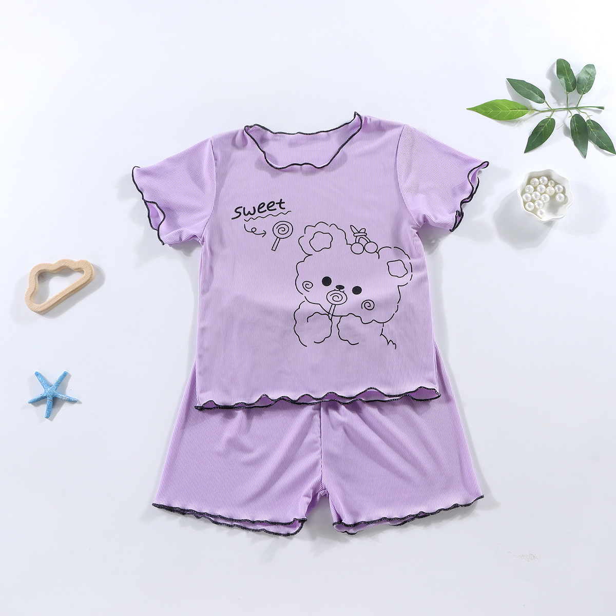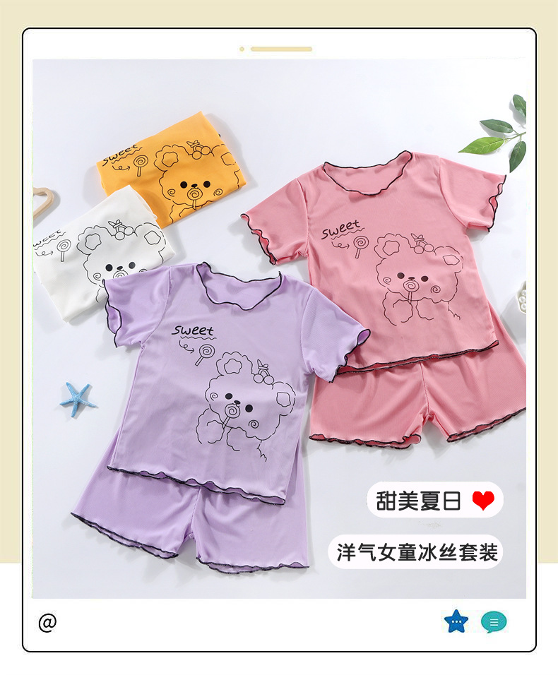 여아 캐주얼 반팔 여름옷, 패셔너블한 여아 정장, 아동 가정복, 유아 에어컨 의류, 투피스 슈트 상의스토어 가기
