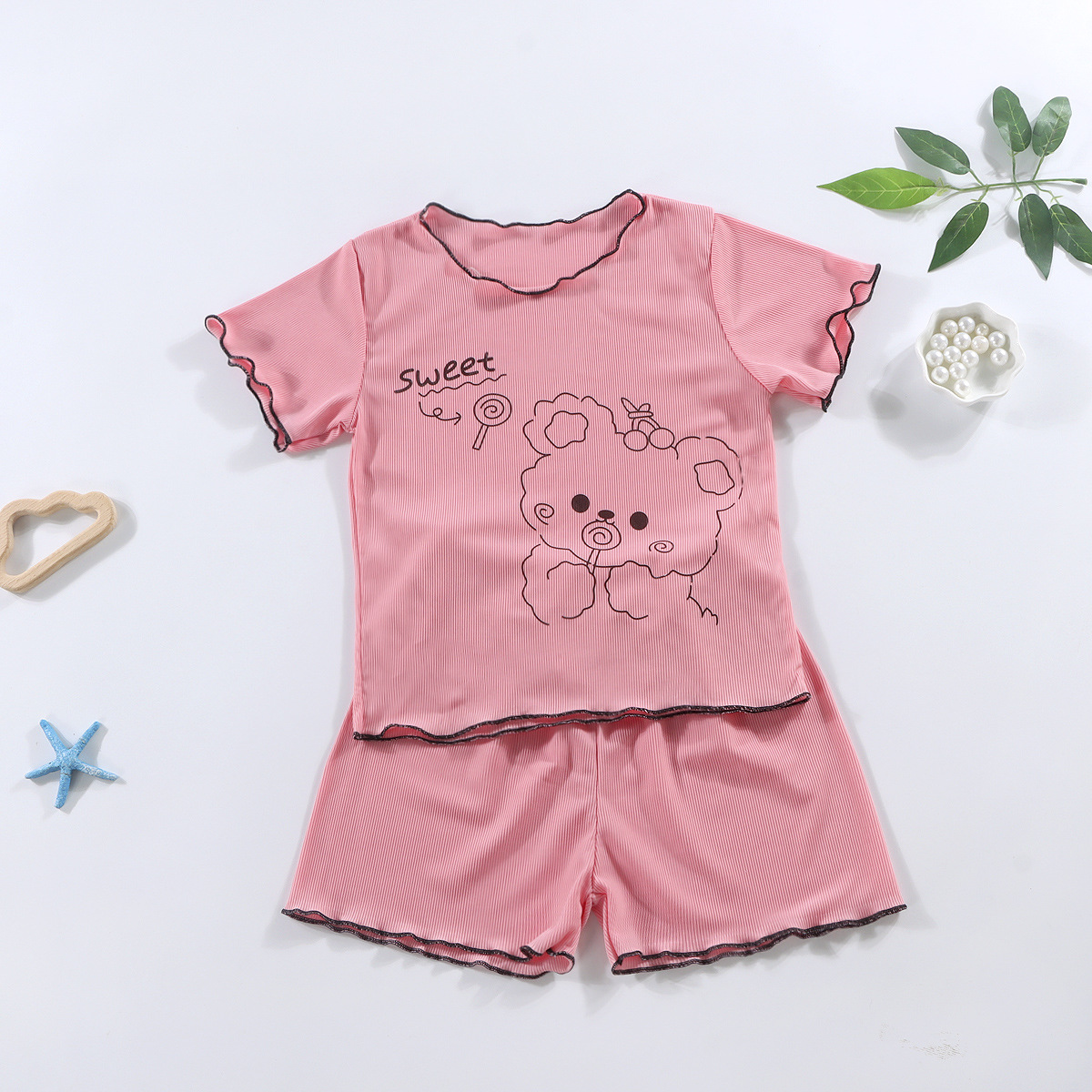 여아 캐주얼 반팔 여름옷, 패셔너블한 여아 정장, 아동 가정복, 유아 에어컨 의류, 투피스 슈트 상의