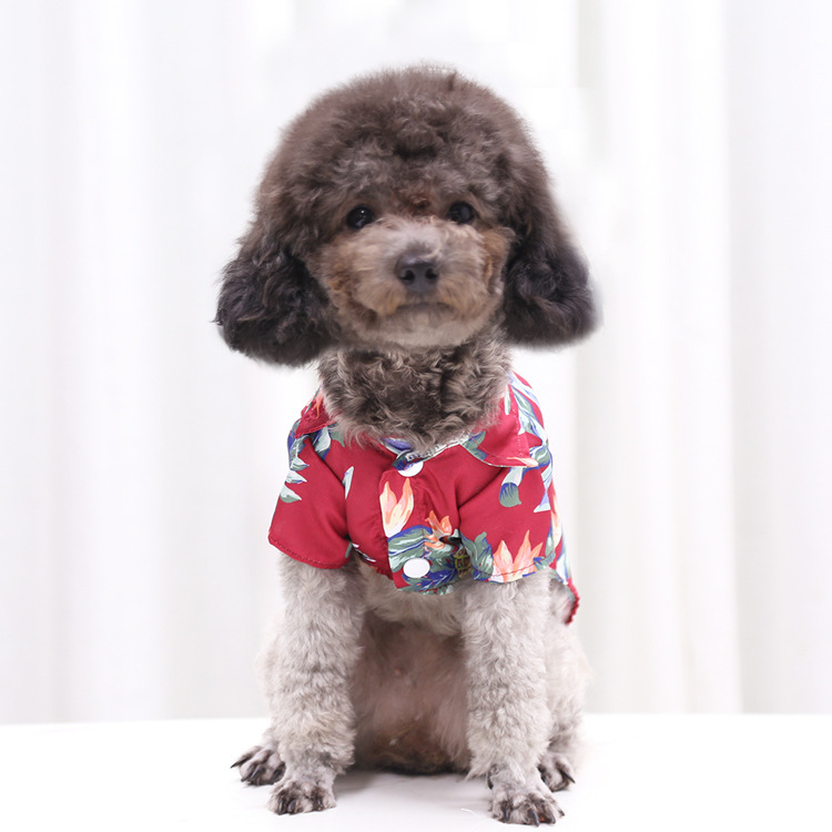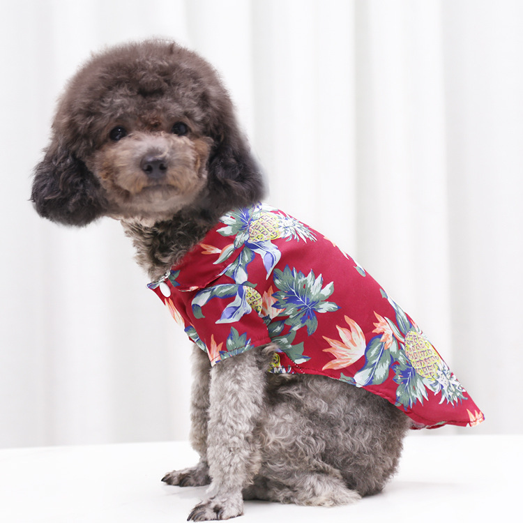 소형 및 중형견 여름옷 얇은 소재 강아지 고양이 비치 파인애플 프린트 반팔 셔츠 비치 스타일스토어 가기