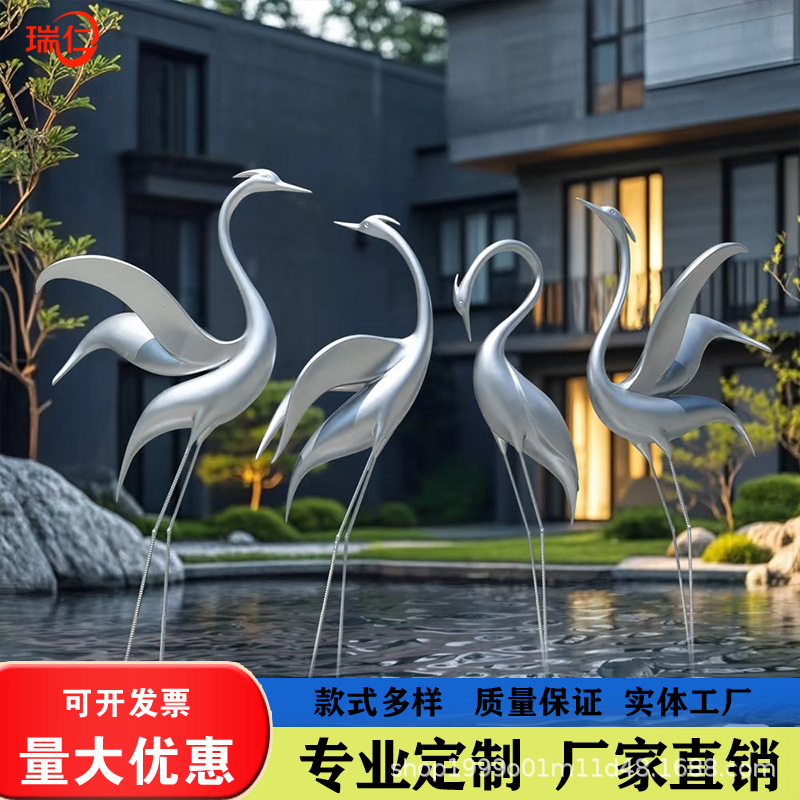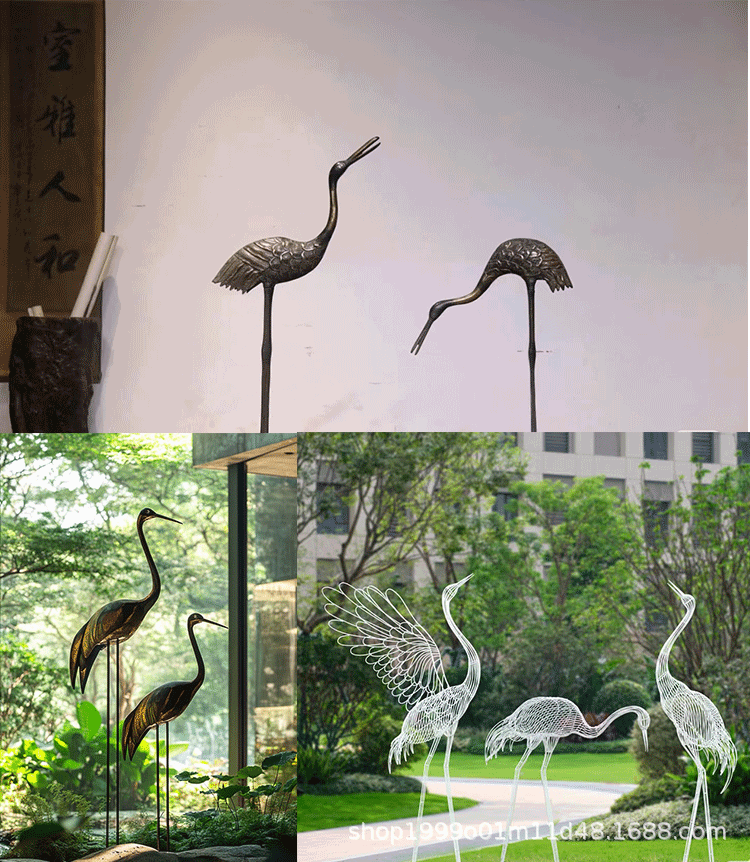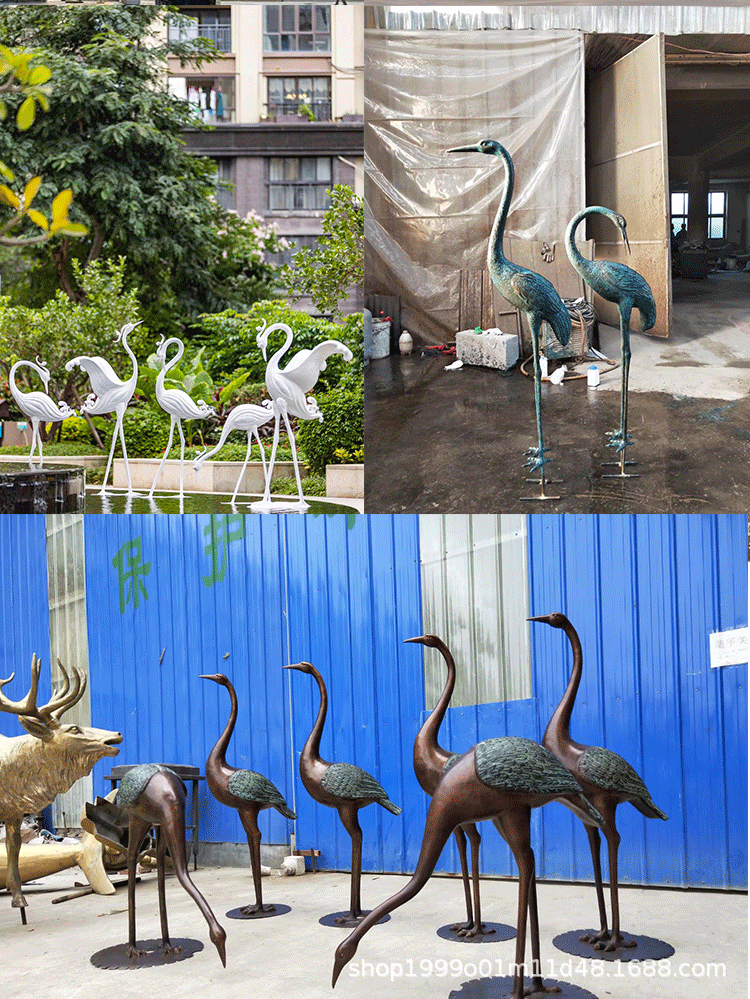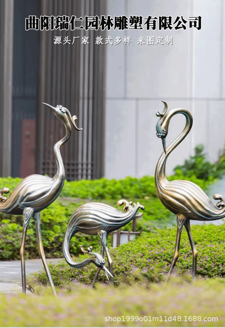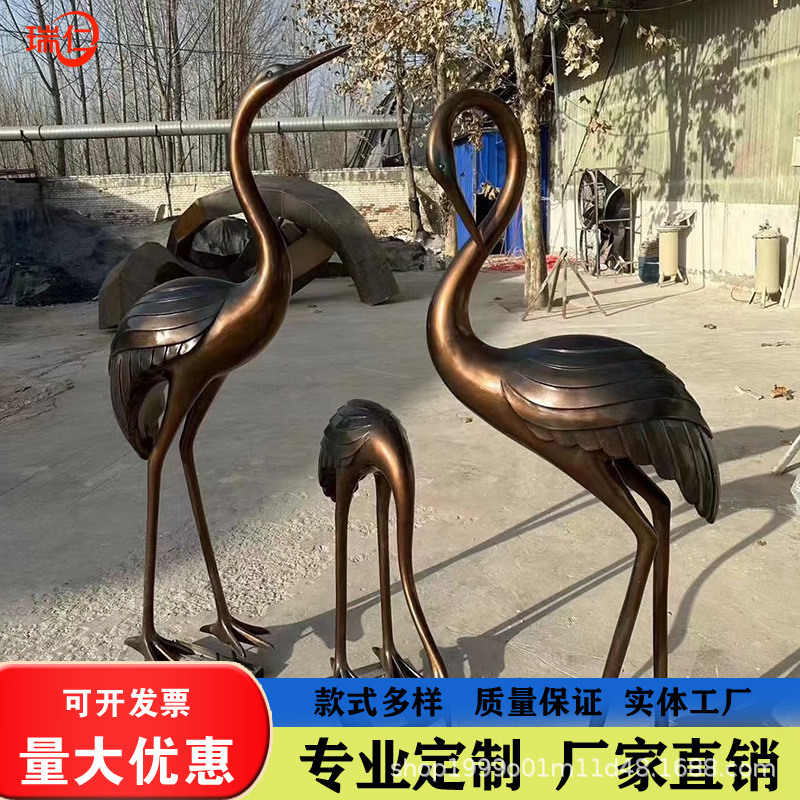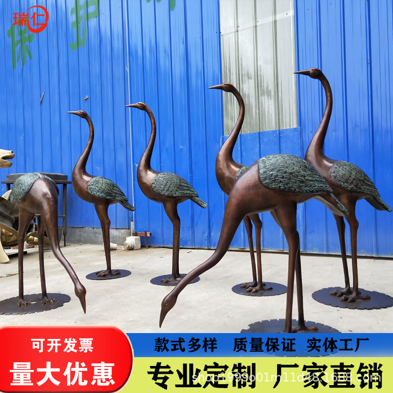 대형 주조 구리 크레인 조각 야외 정원 풍경 수영장 중국 동물 조각 호텔 회사 구리 조각 장식품스토어 가기