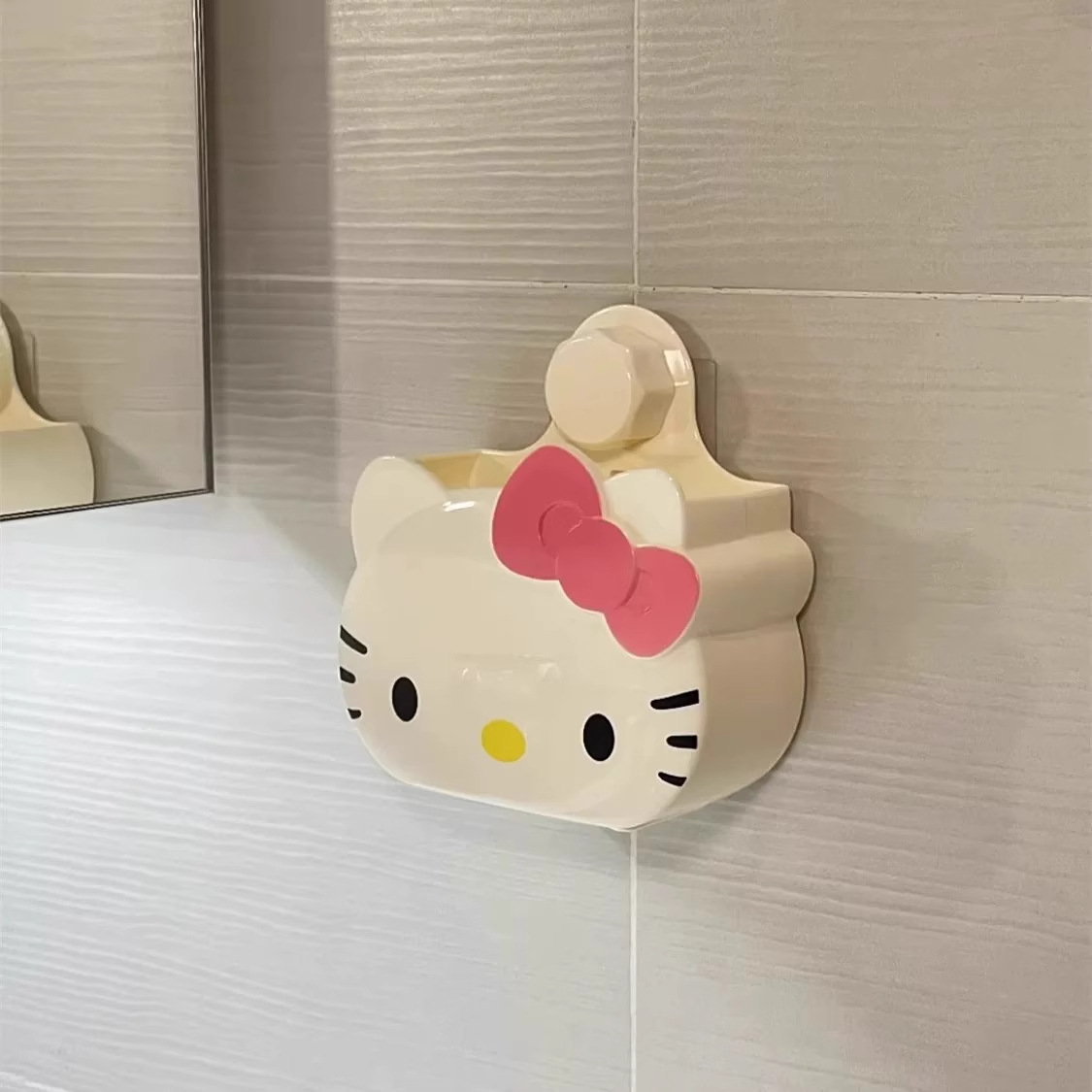 Ins 귀여운 KT 고양이 욕실 펀치없는 벽걸이 형 보관 상자 만화 보관 치약 칫솔 벽걸이 형 보관 상자