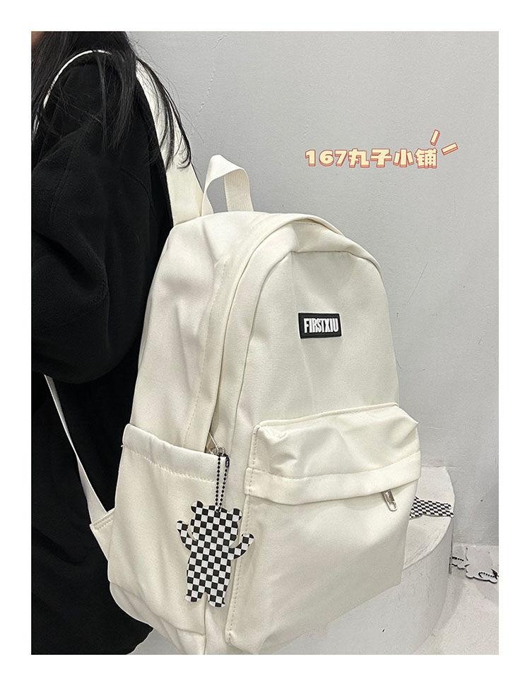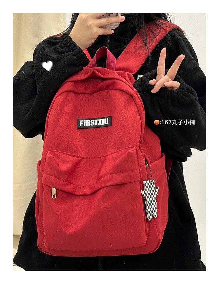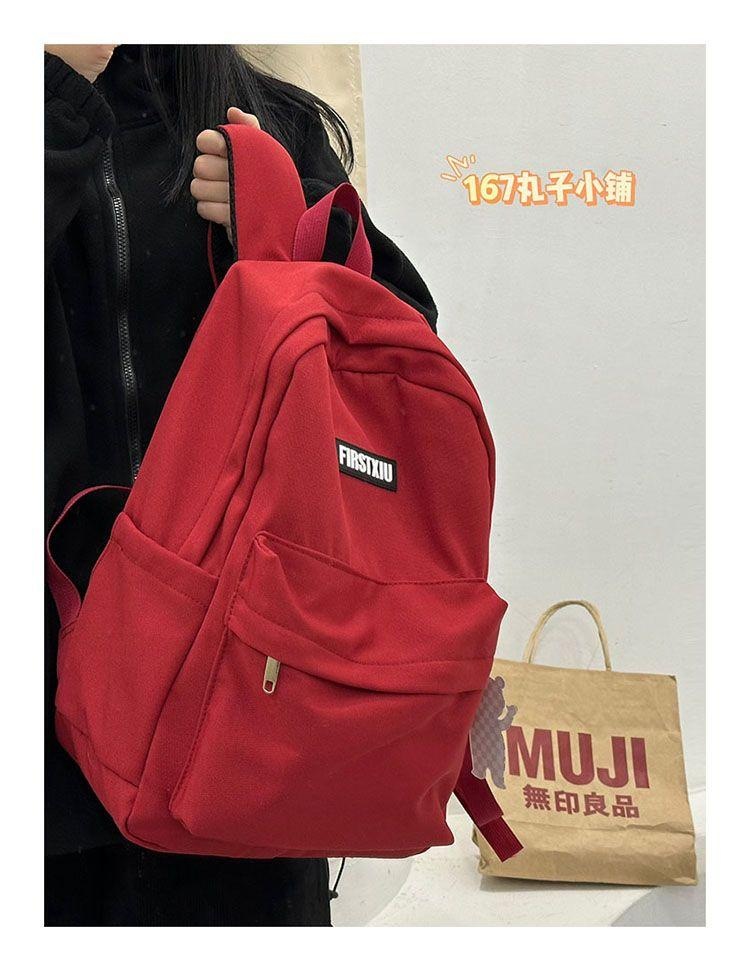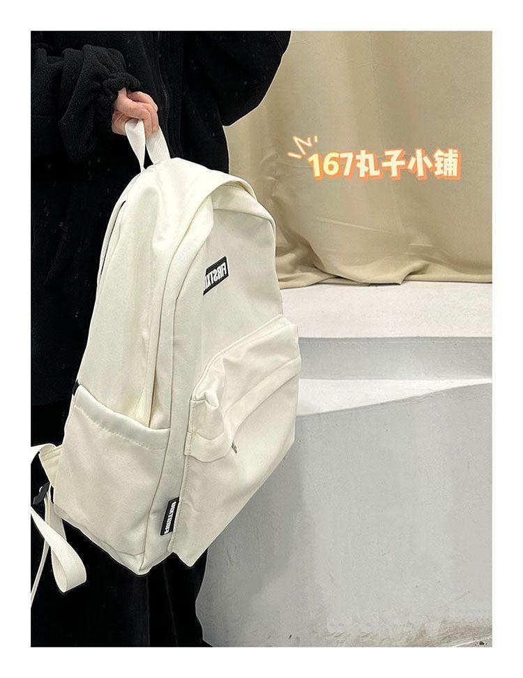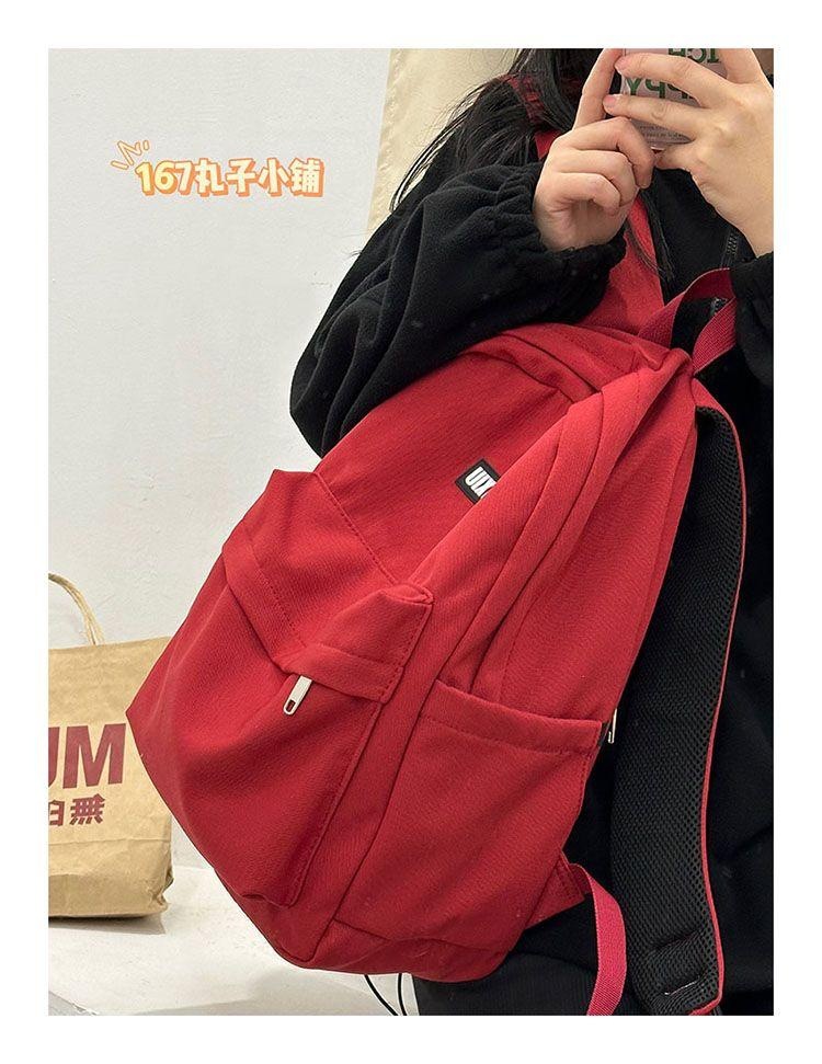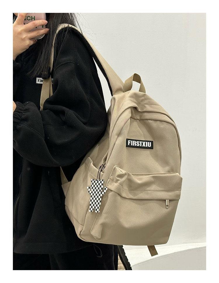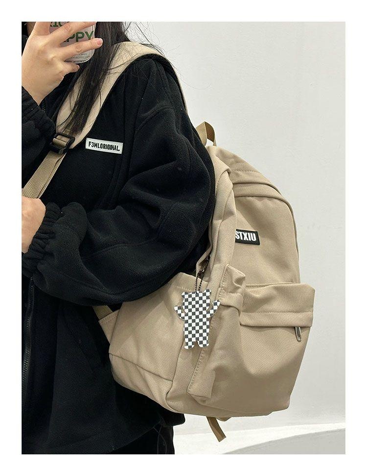 여대생을 위한 책가방, 단색, 심플하고 다재다능한 복고풍 기능 배낭, 중학생 및 고등학생 대용량 배낭 트렌드스토어 가기