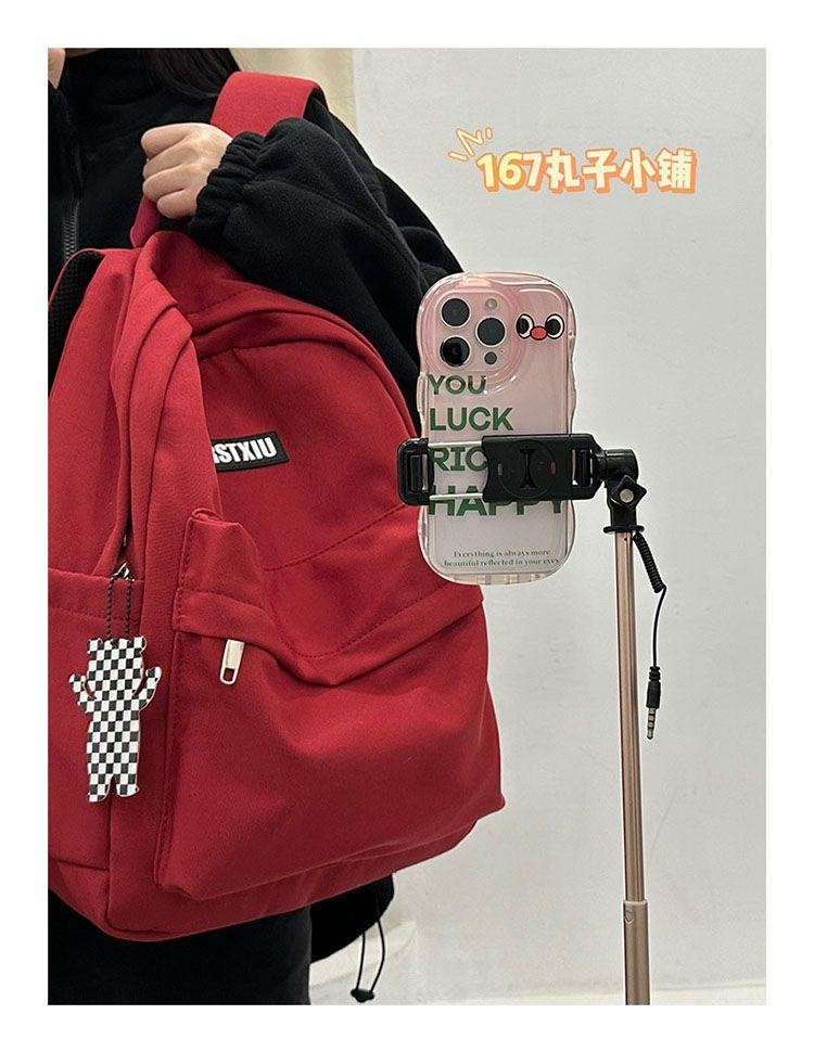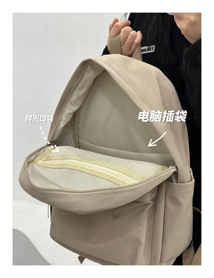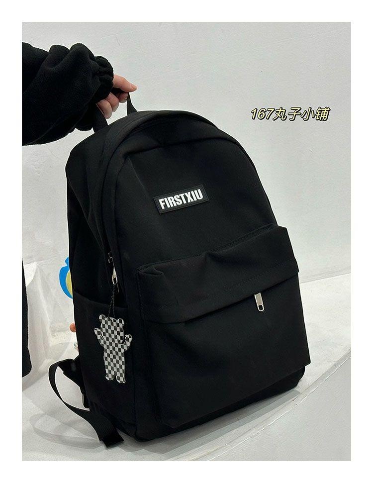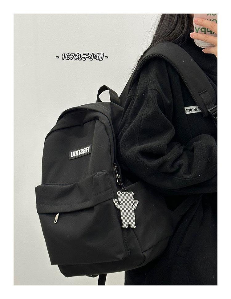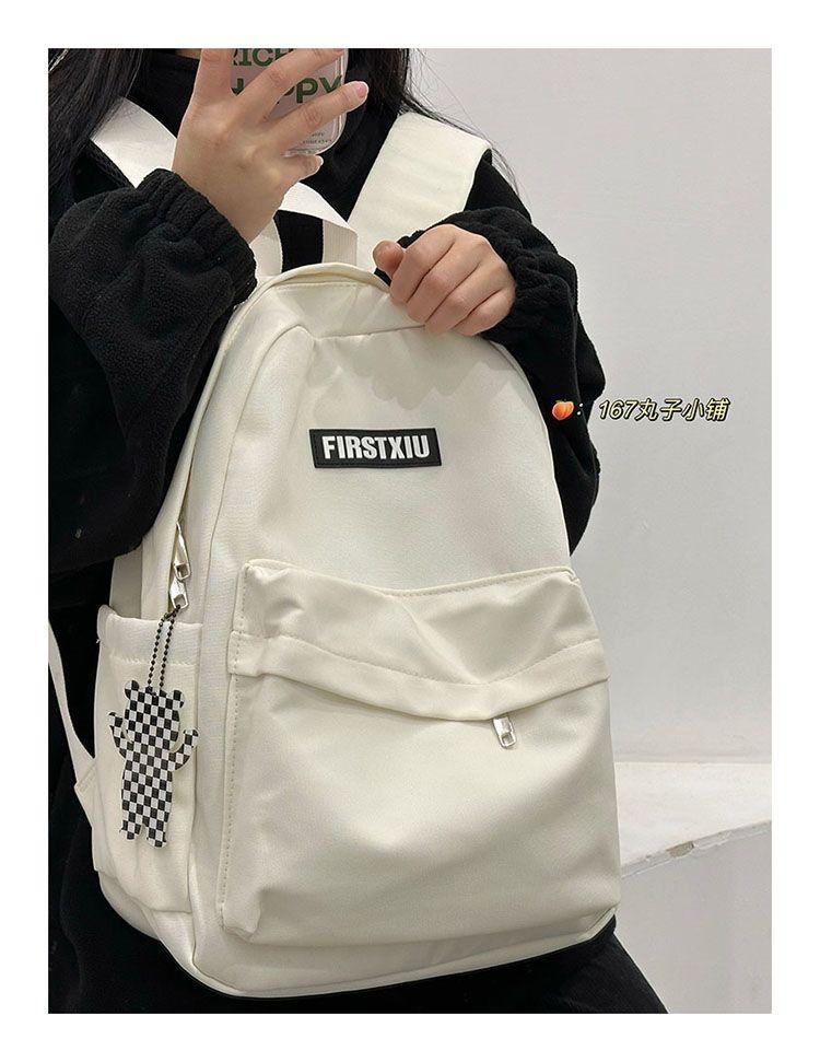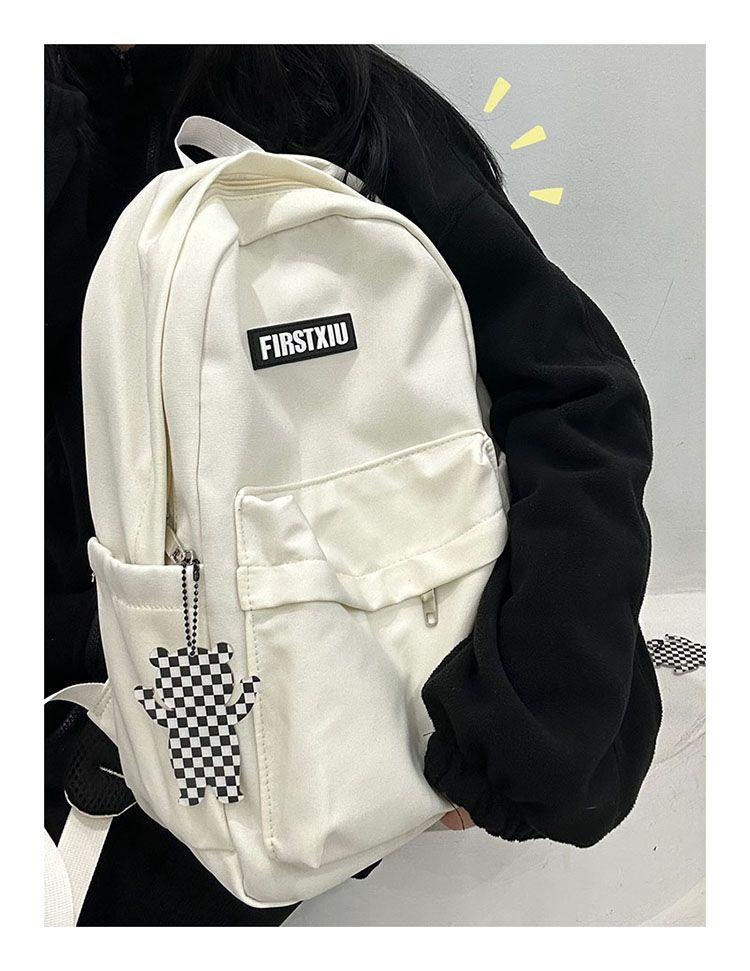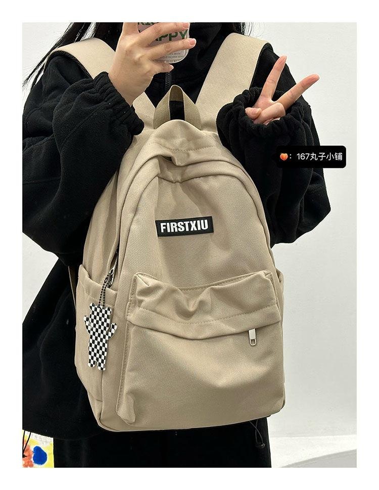 여대생을 위한 책가방, 단색, 심플하고 다재다능한 복고풍 기능 배낭, 중학생 및 고등학생 대용량 배낭 트렌드스토어 가기