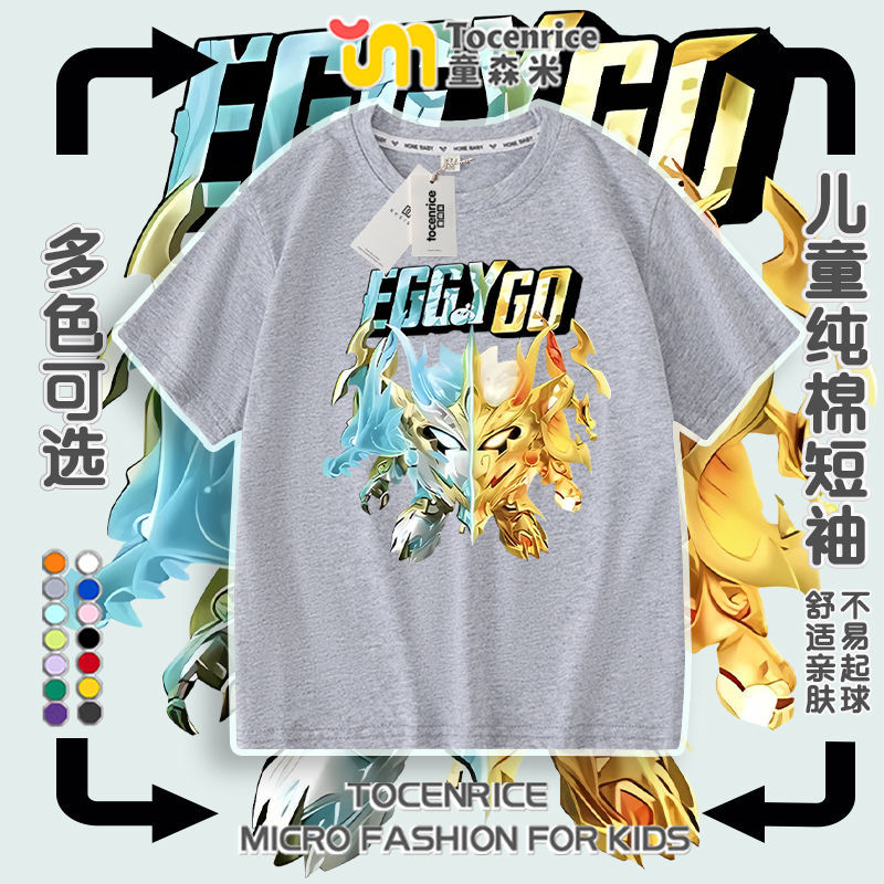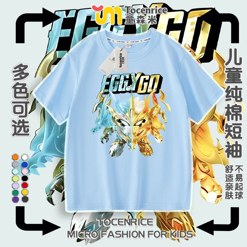 Eggboy 파티 여름 반팔 티셔츠 남성과 여성 반팔 중대형 어린이 Dragon Soul God of War 옷 2025 새로운 여름 옷