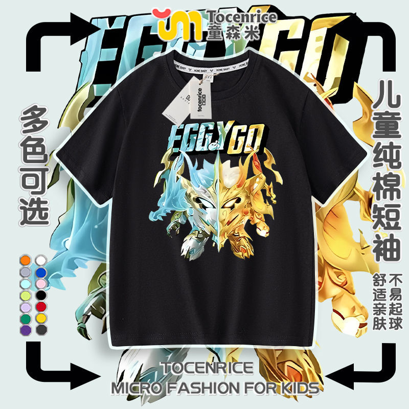 Eggboy 파티 여름 반팔 티셔츠 남성과 여성 반팔 중대형 어린이 Dragon Soul God of War 옷 2025 새로운 여름 옷스토어 가기