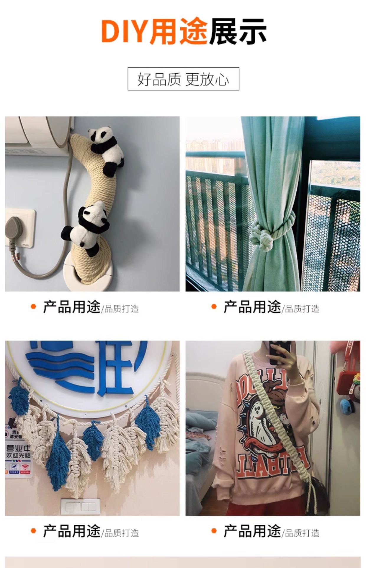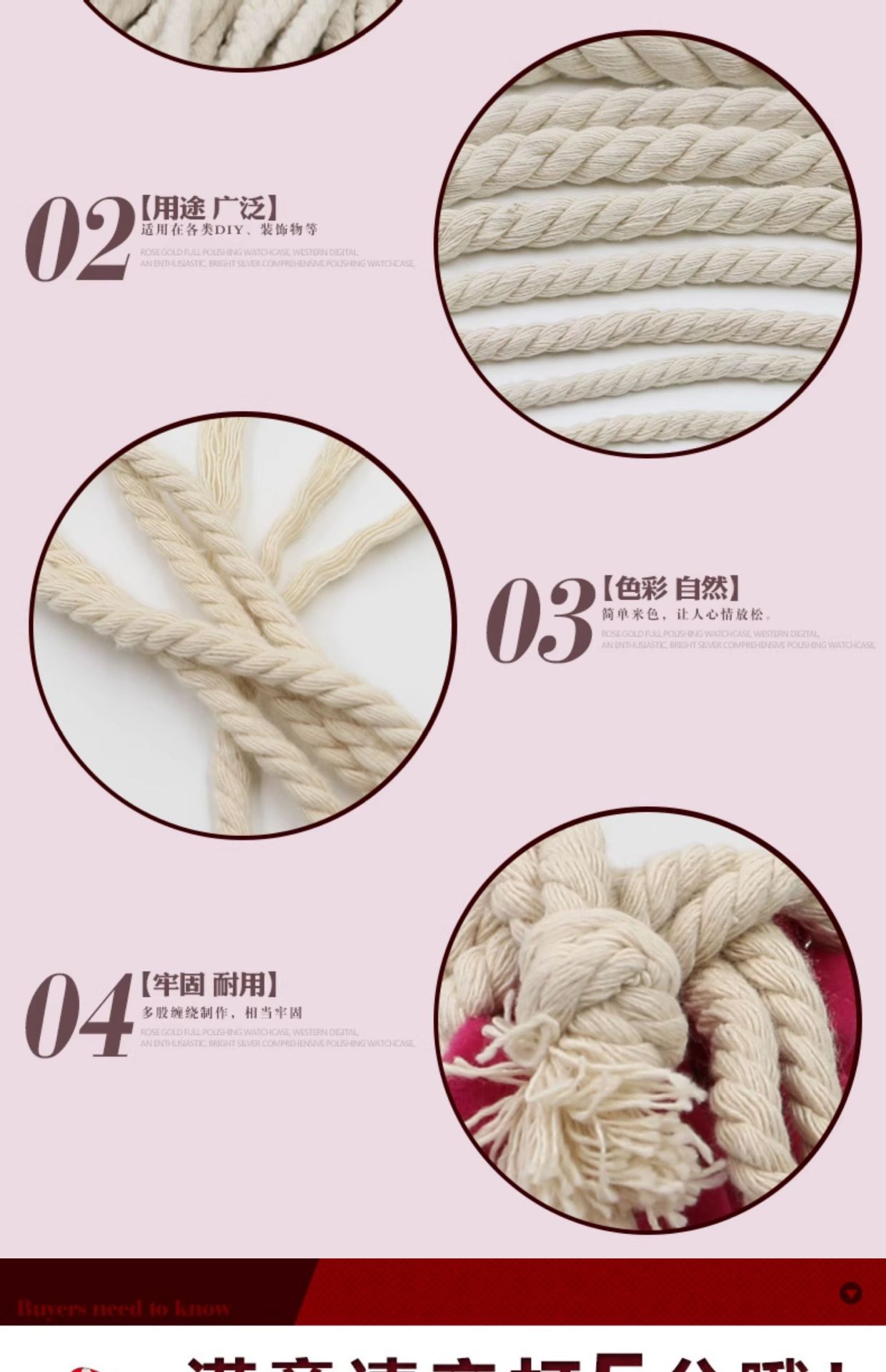 3 가닥 면 로프 DIY 손으로 짠 수도관 장식 로프 내마모성 바인딩 로프 에어컨 파이프 로프 대마 로프 흰색스토어 가기