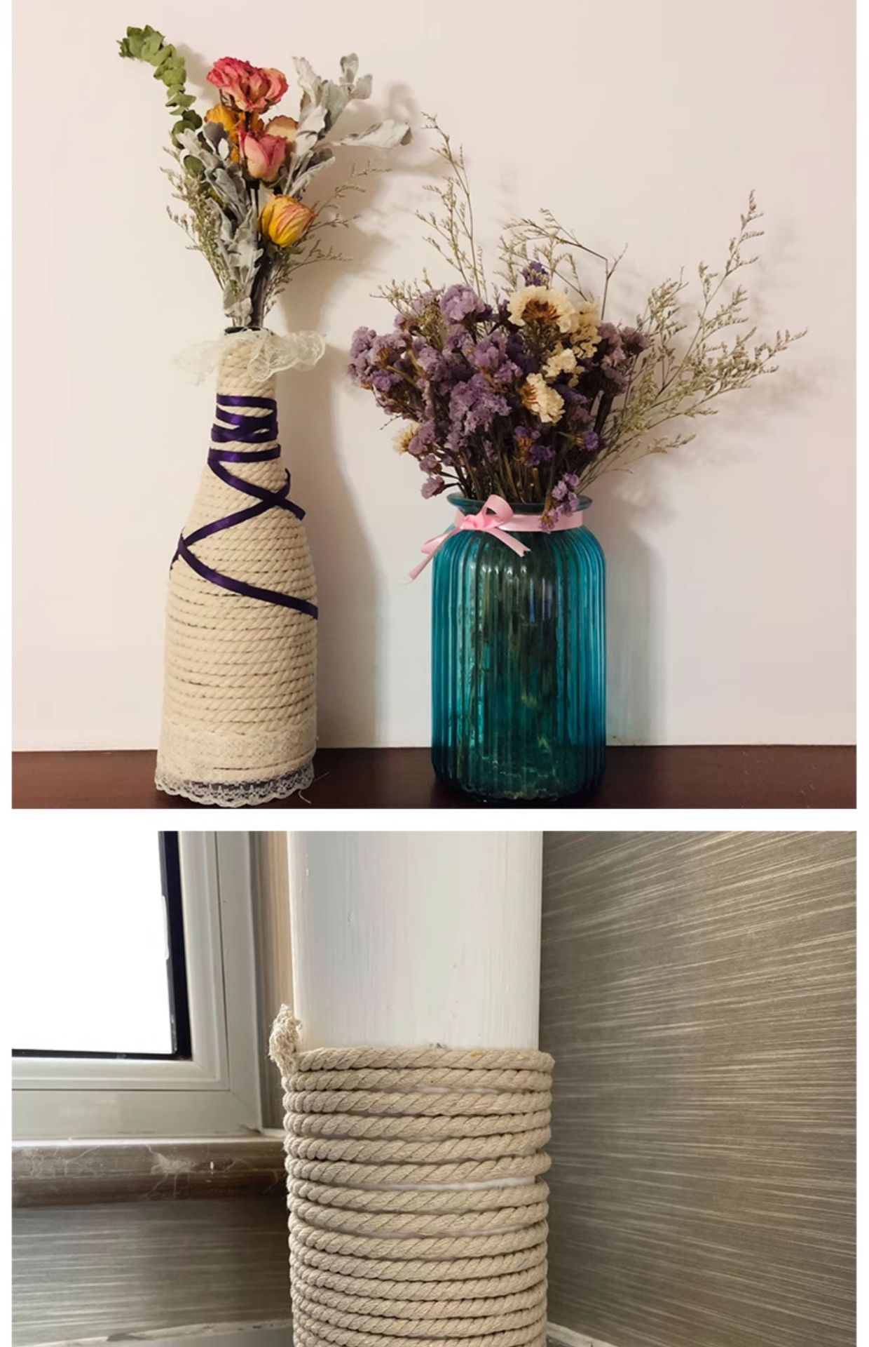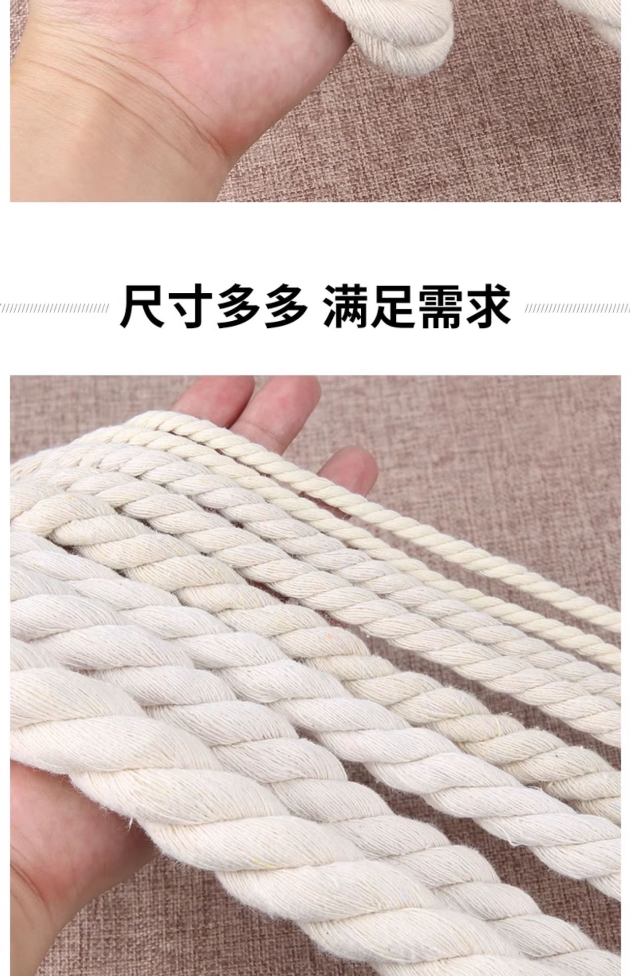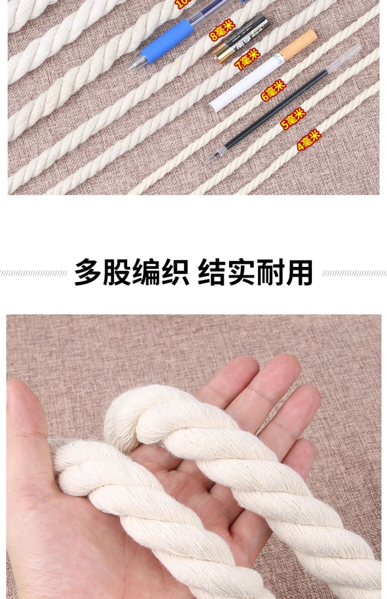 3 가닥 면 로프 DIY 손으로 짠 수도관 장식 로프 내마모성 바인딩 로프 에어컨 파이프 로프 대마 로프 흰색
