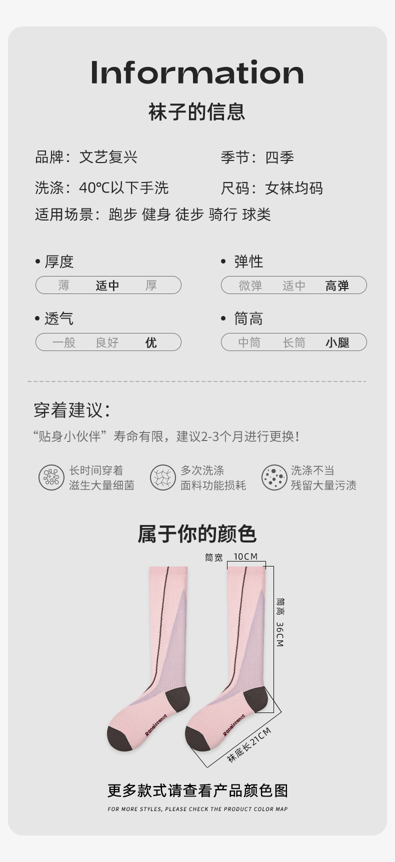르네상스 압력 스포츠 종아리 양말 여성 봄 여름 달리기 통기성 땀 흡수 야외 피트니스 하이킹 양말