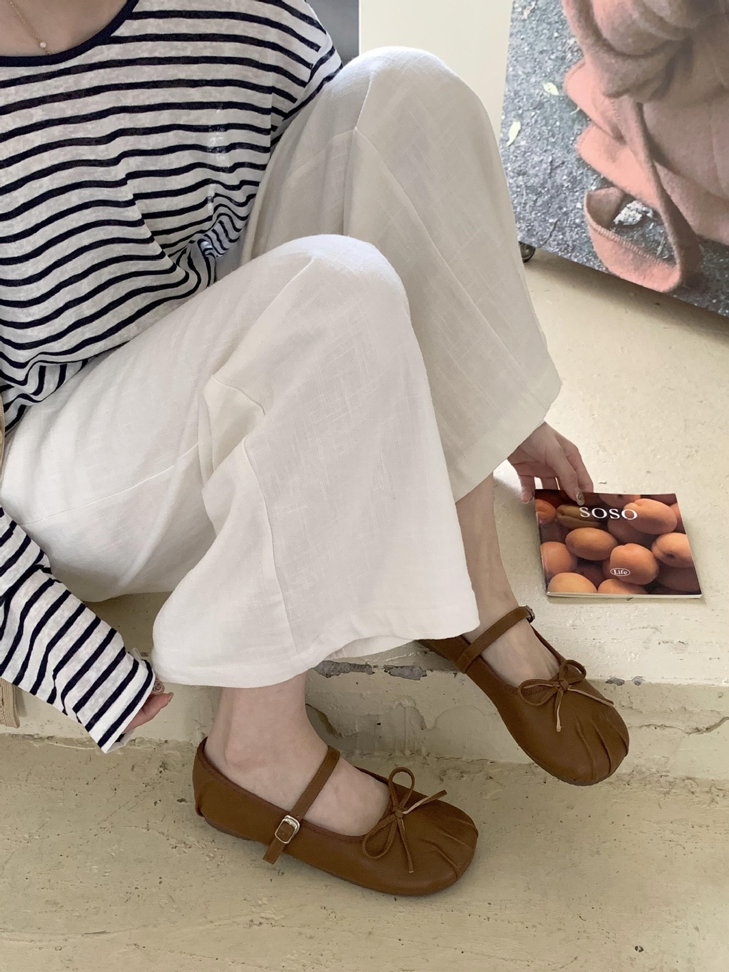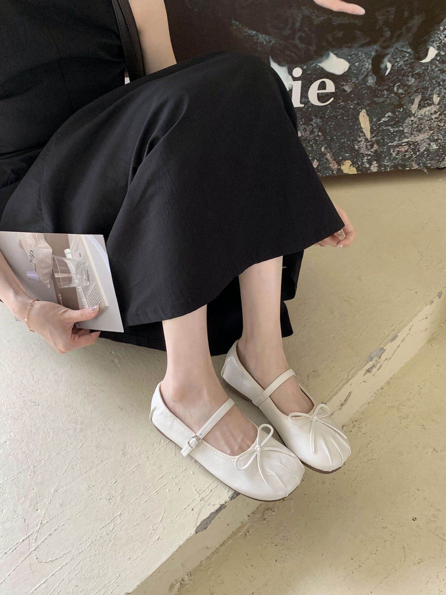 2025년 신상 여름 한국식 프렌치 스타일 플랫 슈즈, 다용도 스퀘어 토 메리제인 슈즈, 특가스토어 가기
