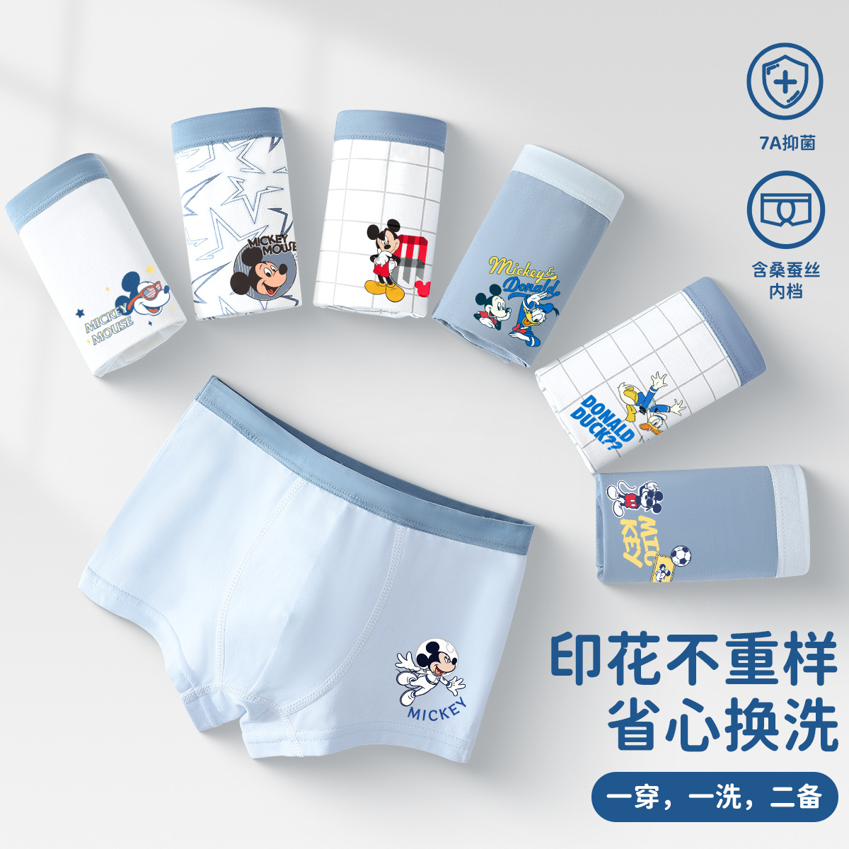 디즈니 7A 항균 멀버리 실크 바닥 가랑이 7팩 소년 속옷 여름 얇은 중대형 어린이 복서 팬티스토어 가기