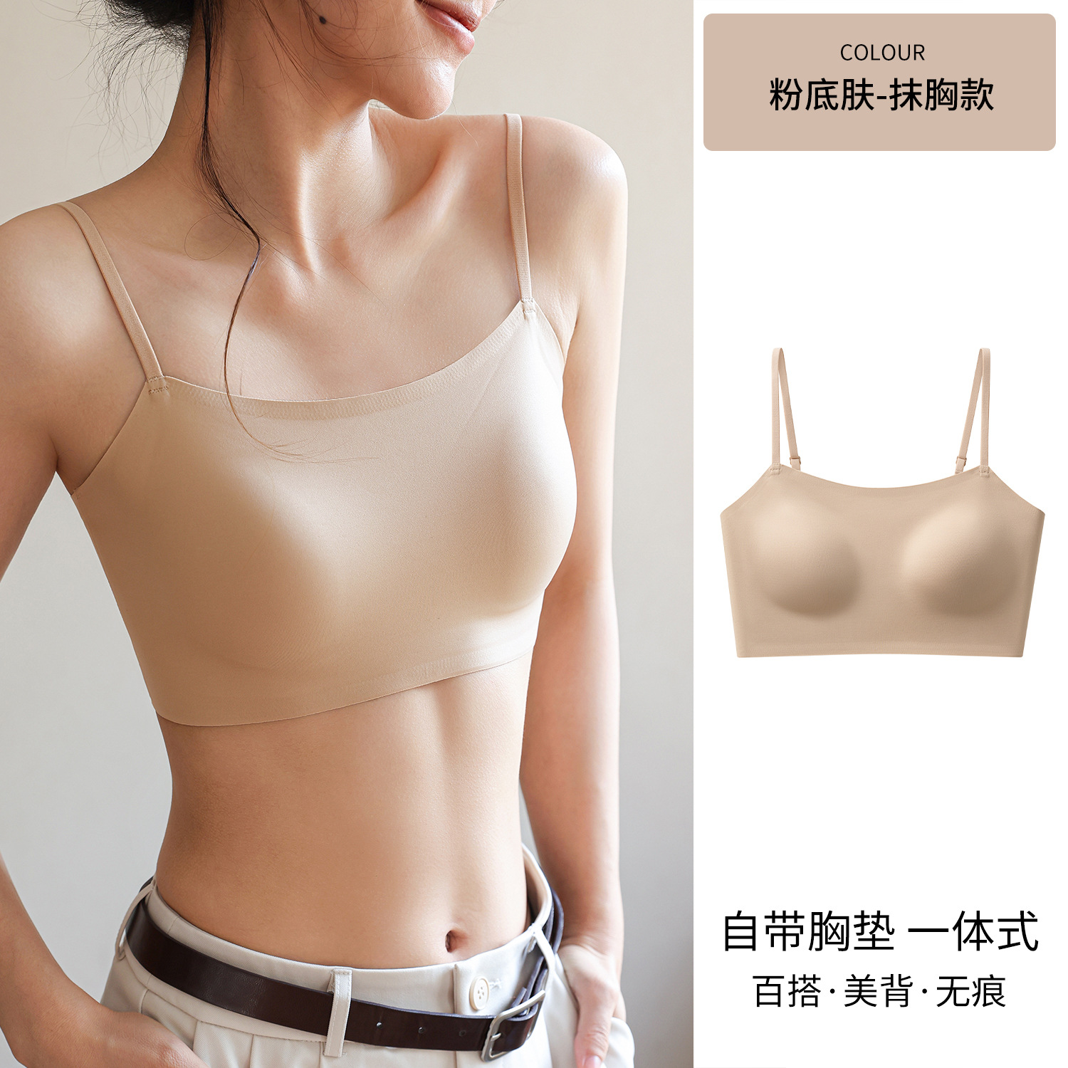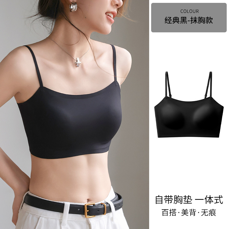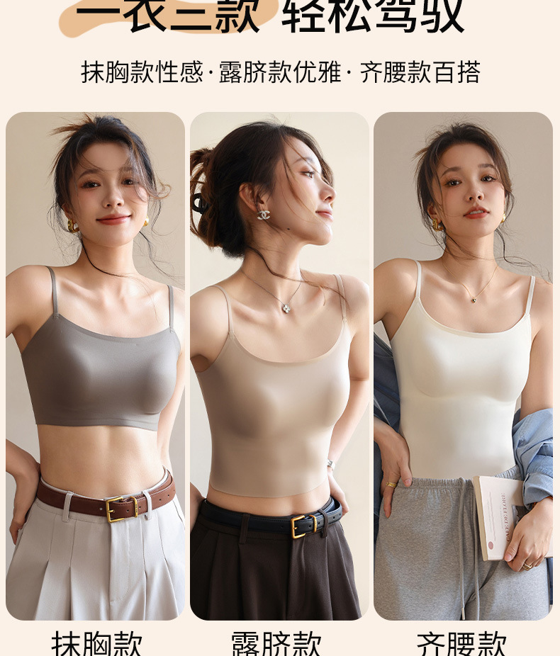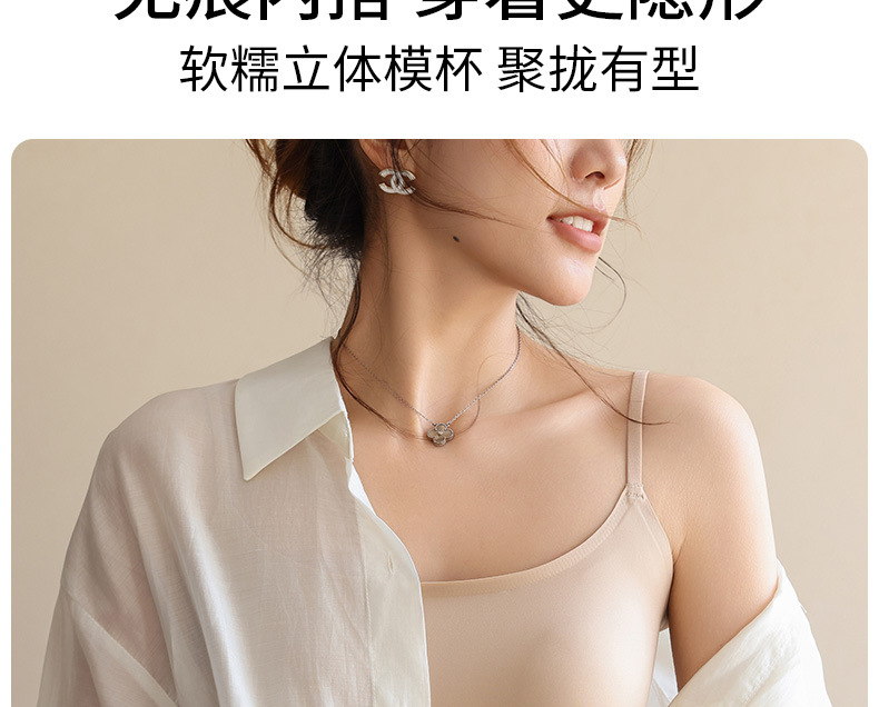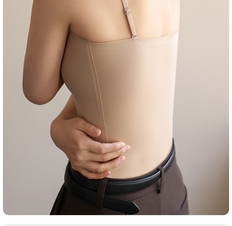 여성용 심리스 리퀴드 파운데이션 속옷, 여름 스파게티 스트랩, 아이스 실크 심리스 보이지 않는 브라, 가슴 수축, 노출 방지, 스킨 컬러 조끼