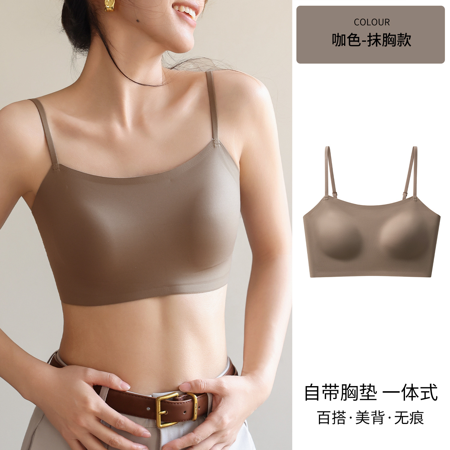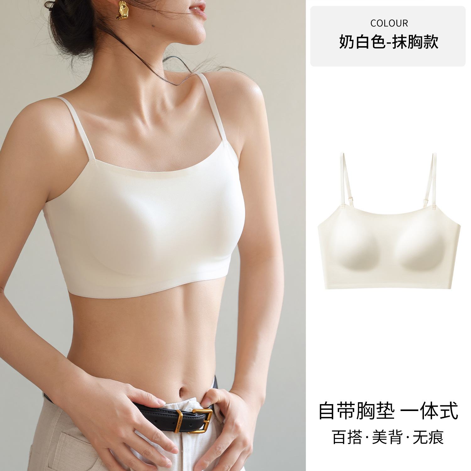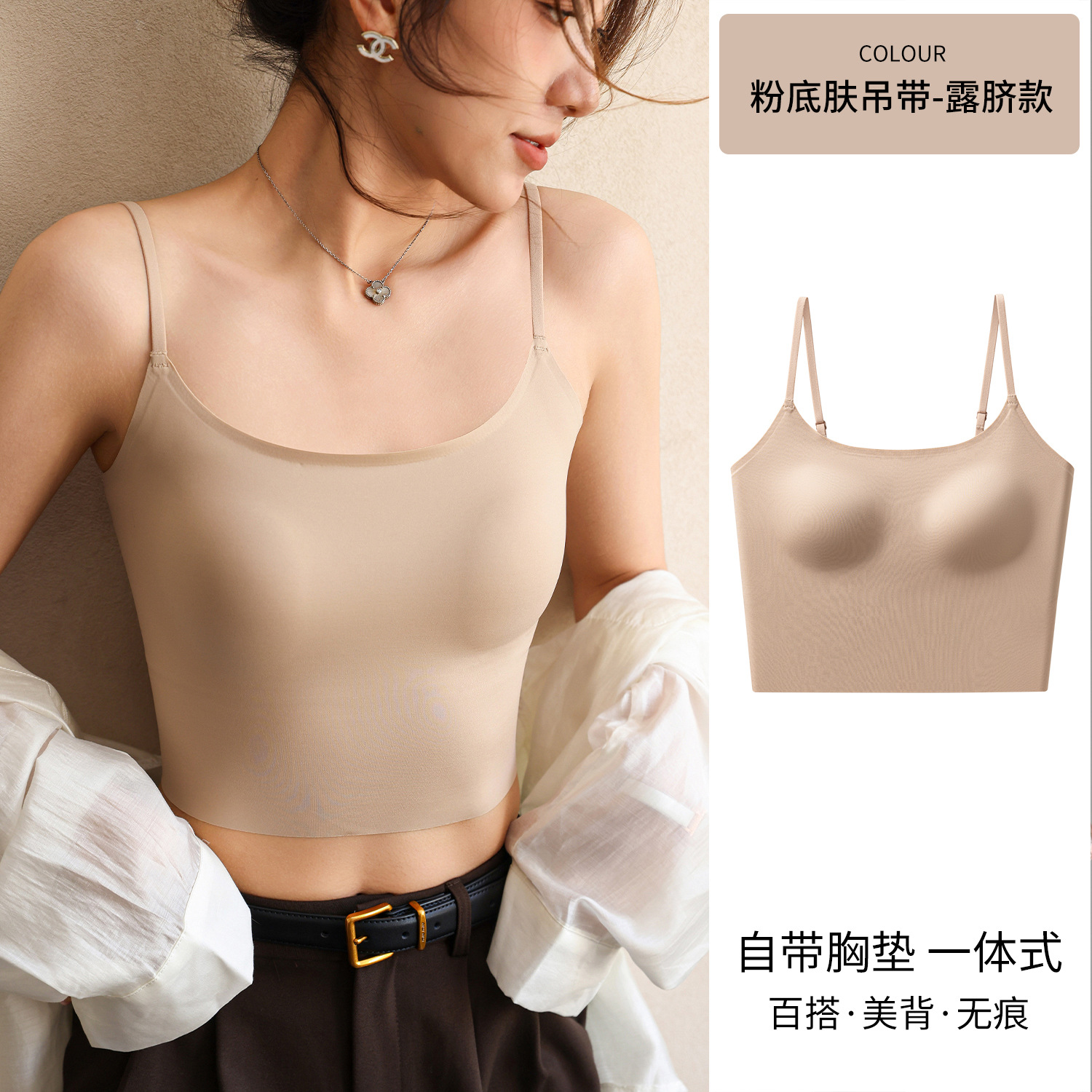 여성용 심리스 리퀴드 파운데이션 속옷, 여름 스파게티 스트랩, 아이스 실크 심리스 보이지 않는 브라, 가슴 수축, 노출 방지, 스킨 컬러 조끼