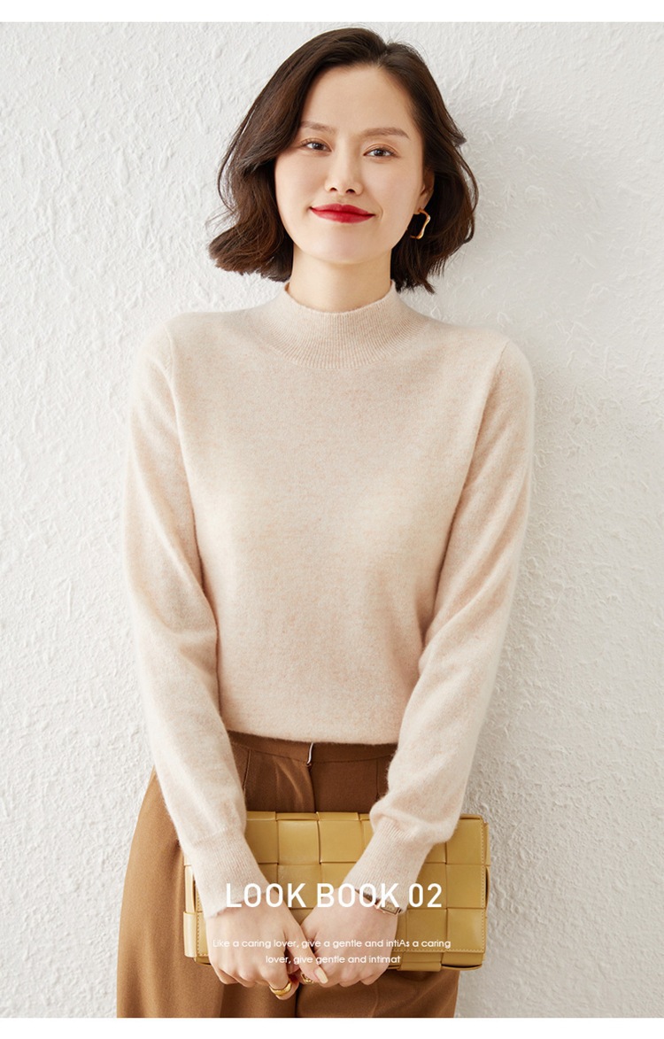 2025 새로운 가을, 겨울 여성용 하프 터틀넥 스웨터, 루즈하고 다재다능한 솔리드 컬러 풀오버, 따뜻한 베이스 레이어스토어 가기