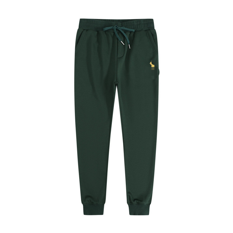 • 골드 라벨이 있는 짙은 녹색 스웨트팬츠