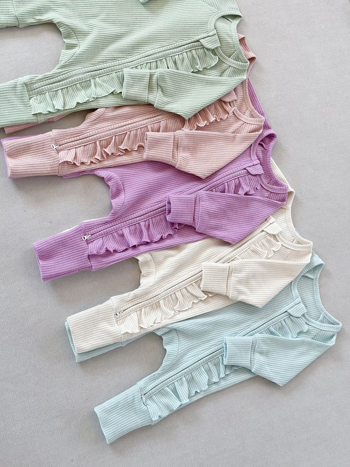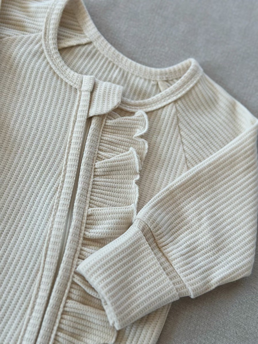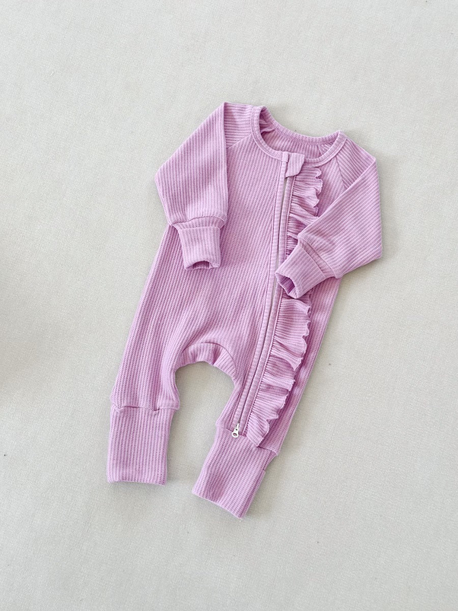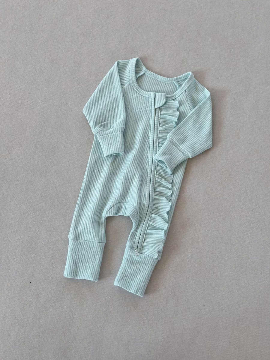 Ins 새로운 유럽과 미국의 아기 와플 긴 크롤링 슈트 아기 소녀의 세련되고 달콤한 주름 장식 점프 슈트