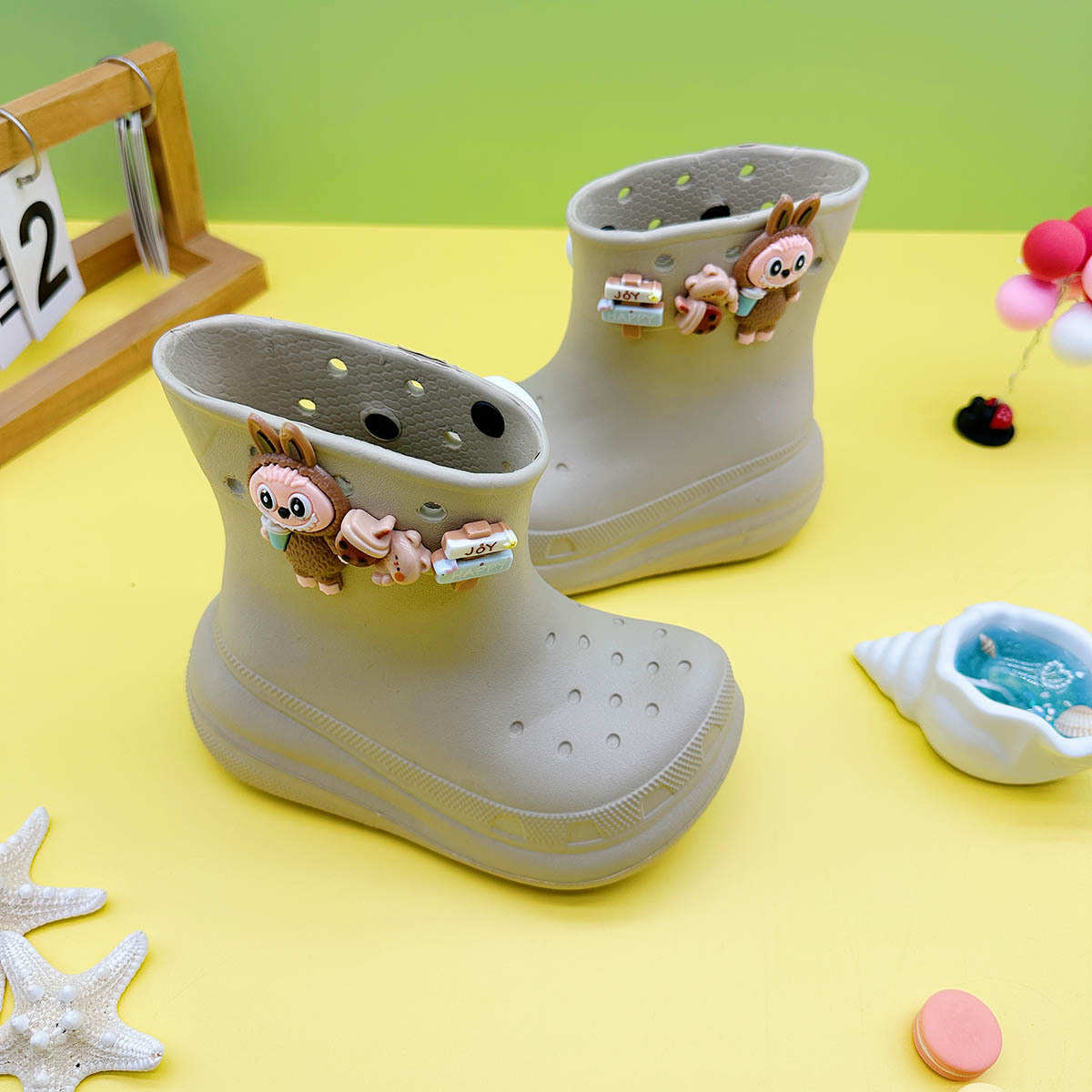 레인부츠, 만능 여아 워터슈즈, 중대형 남아 워터슈즈, 만화 커피 래브브 아동용 홀 레인부츠