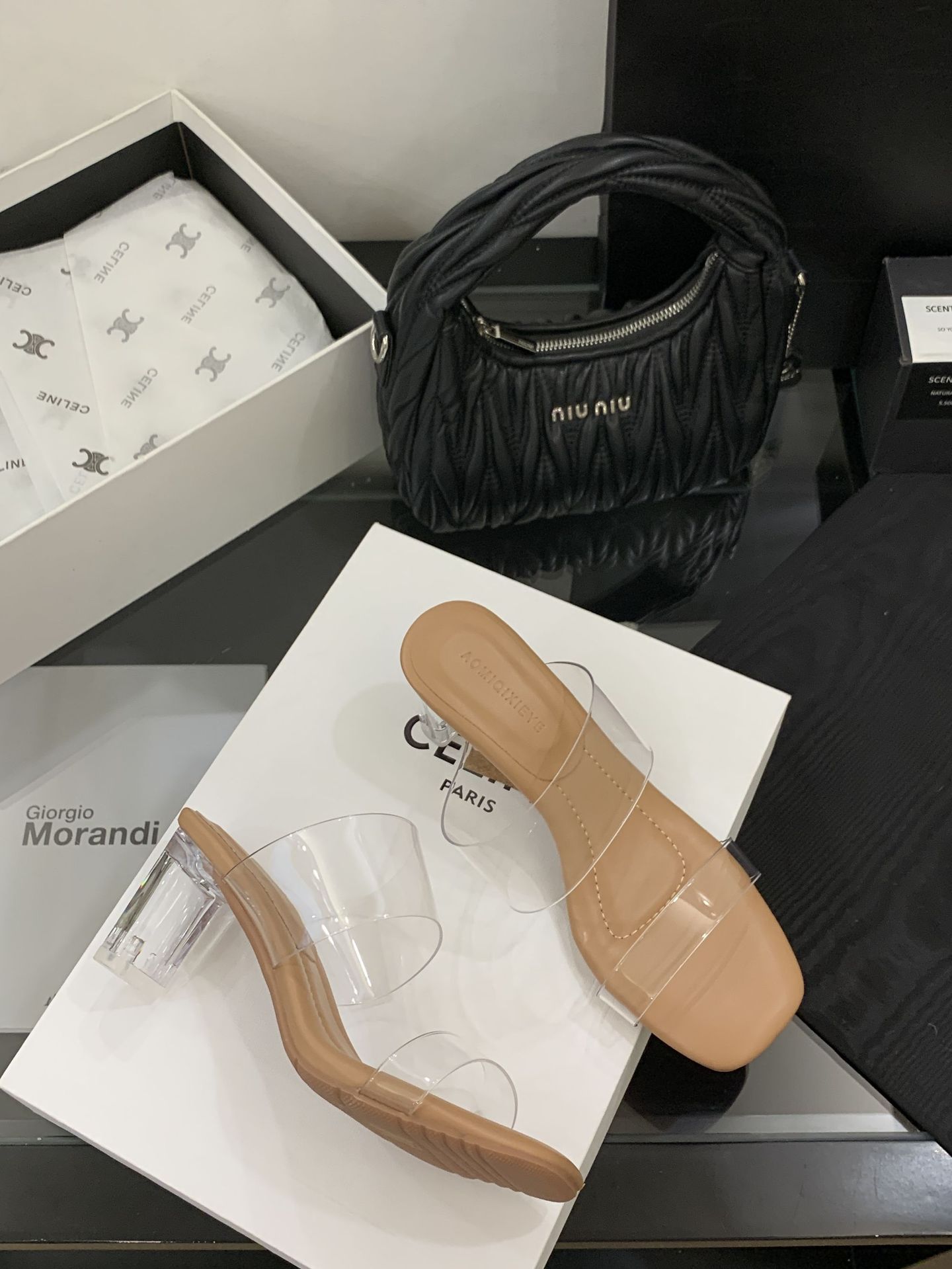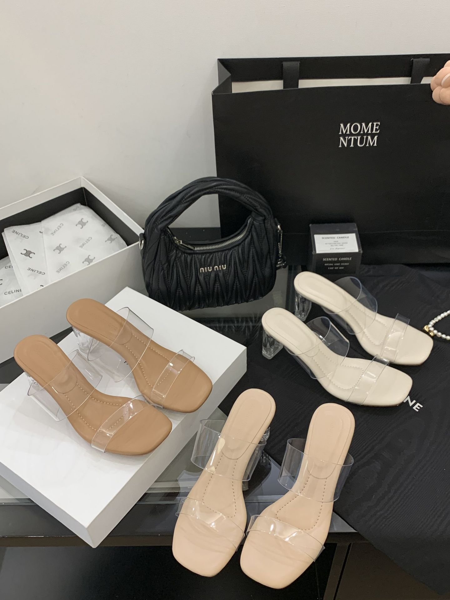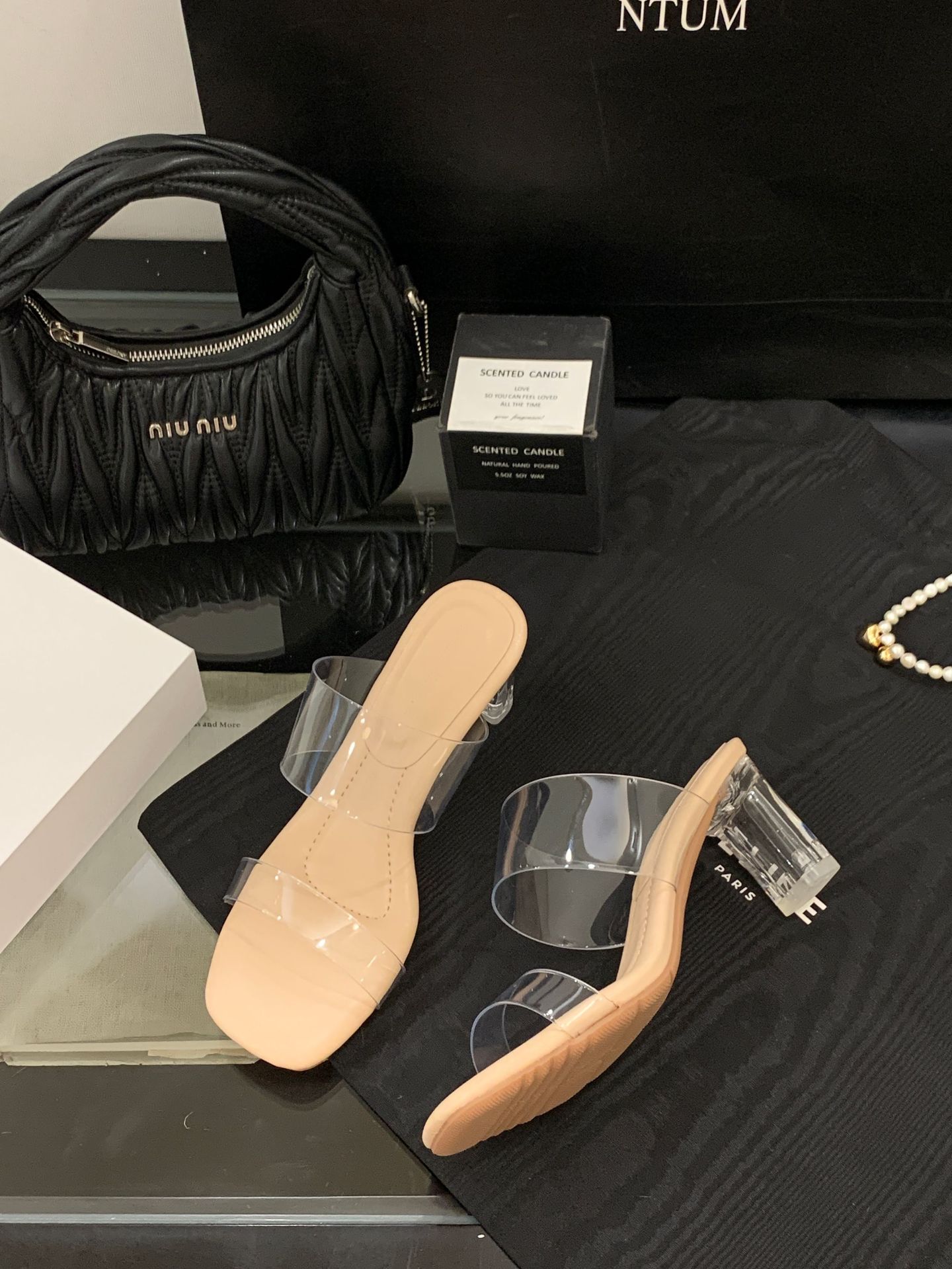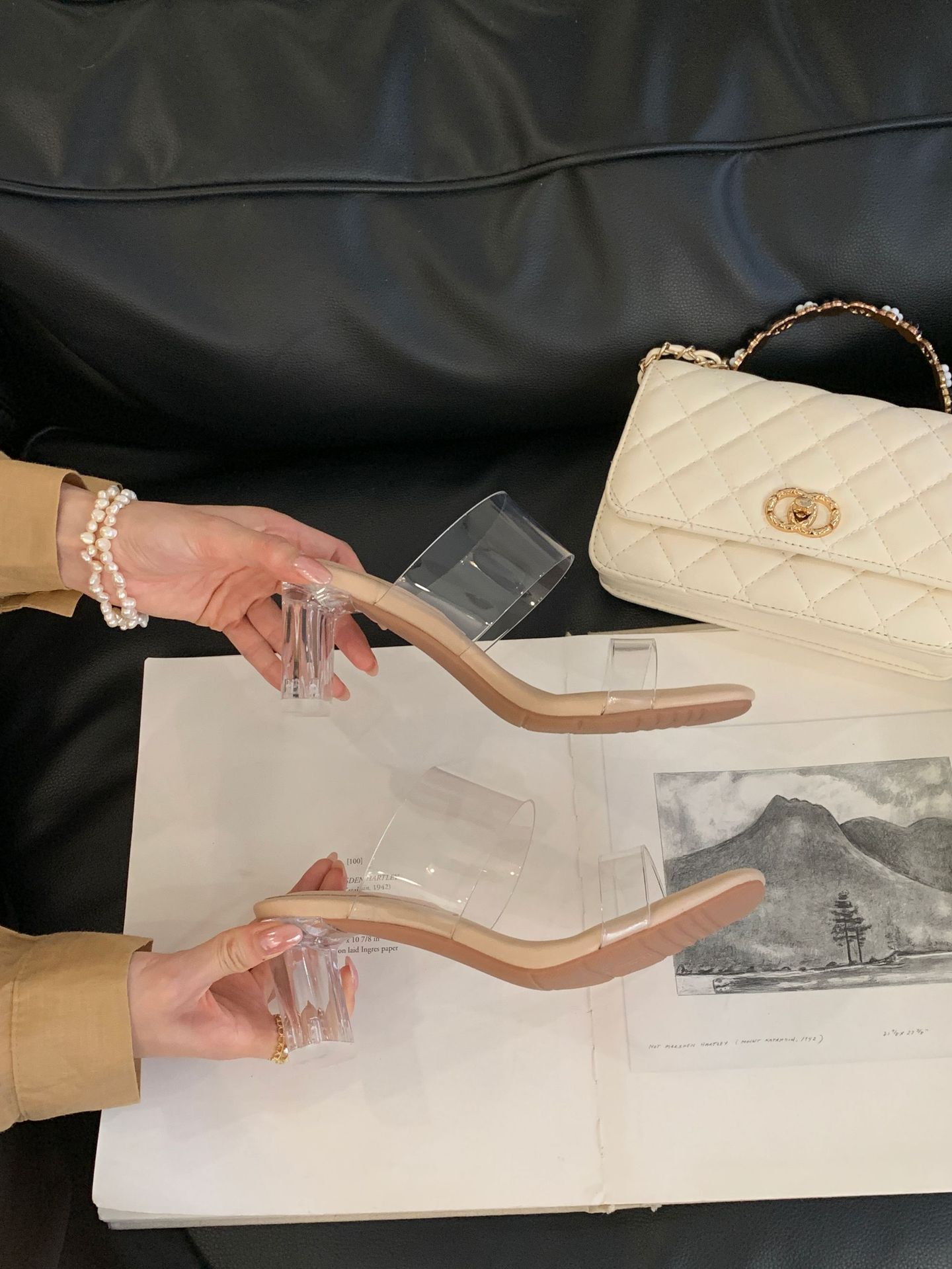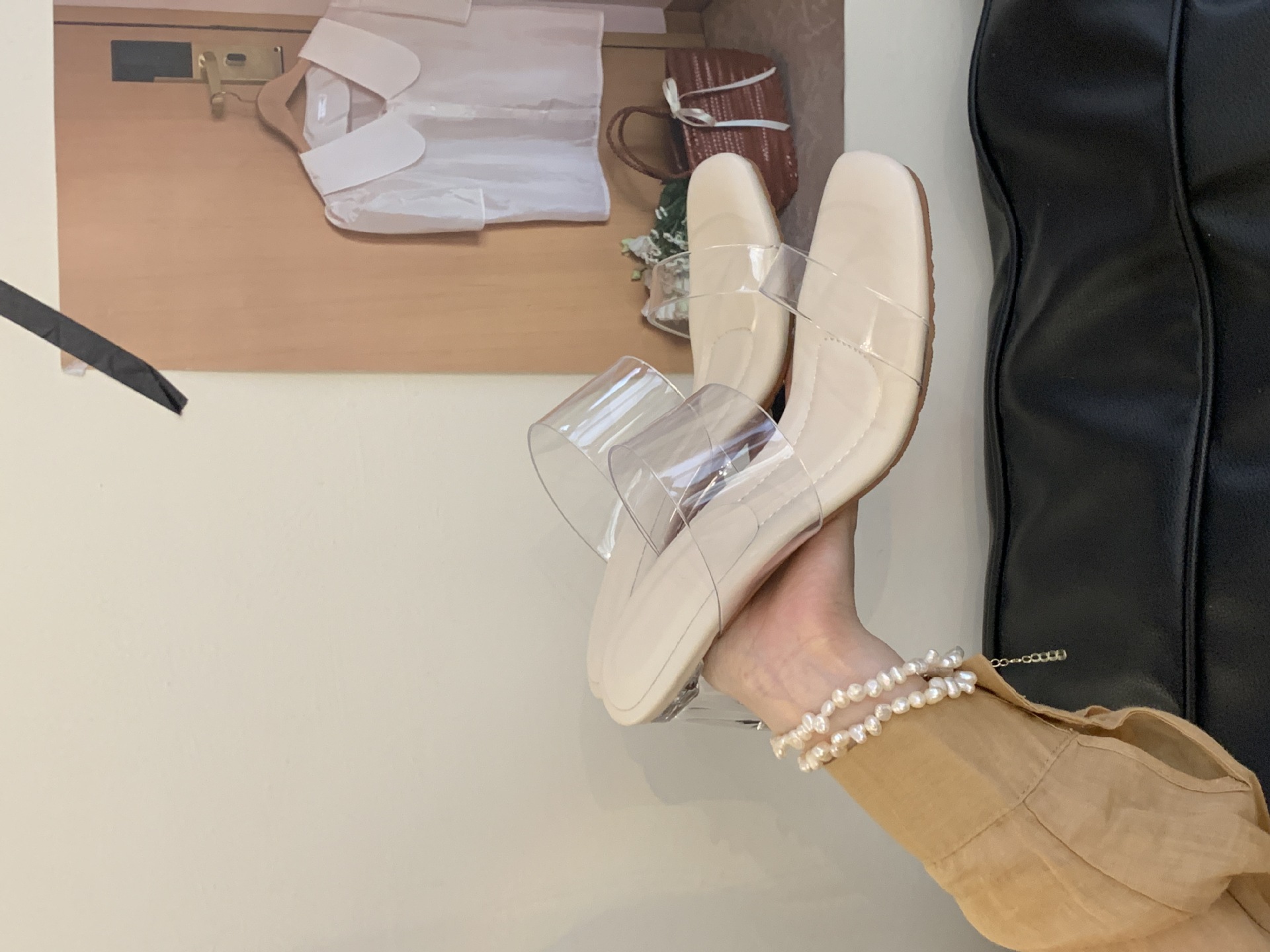 여성을위한 크리스탈 투명한 하이힐 샌들 2025 여름 새로운 패션 투명한 고무 슬리퍼 패션 두꺼운 굽 외부 슬리퍼스토어 가기