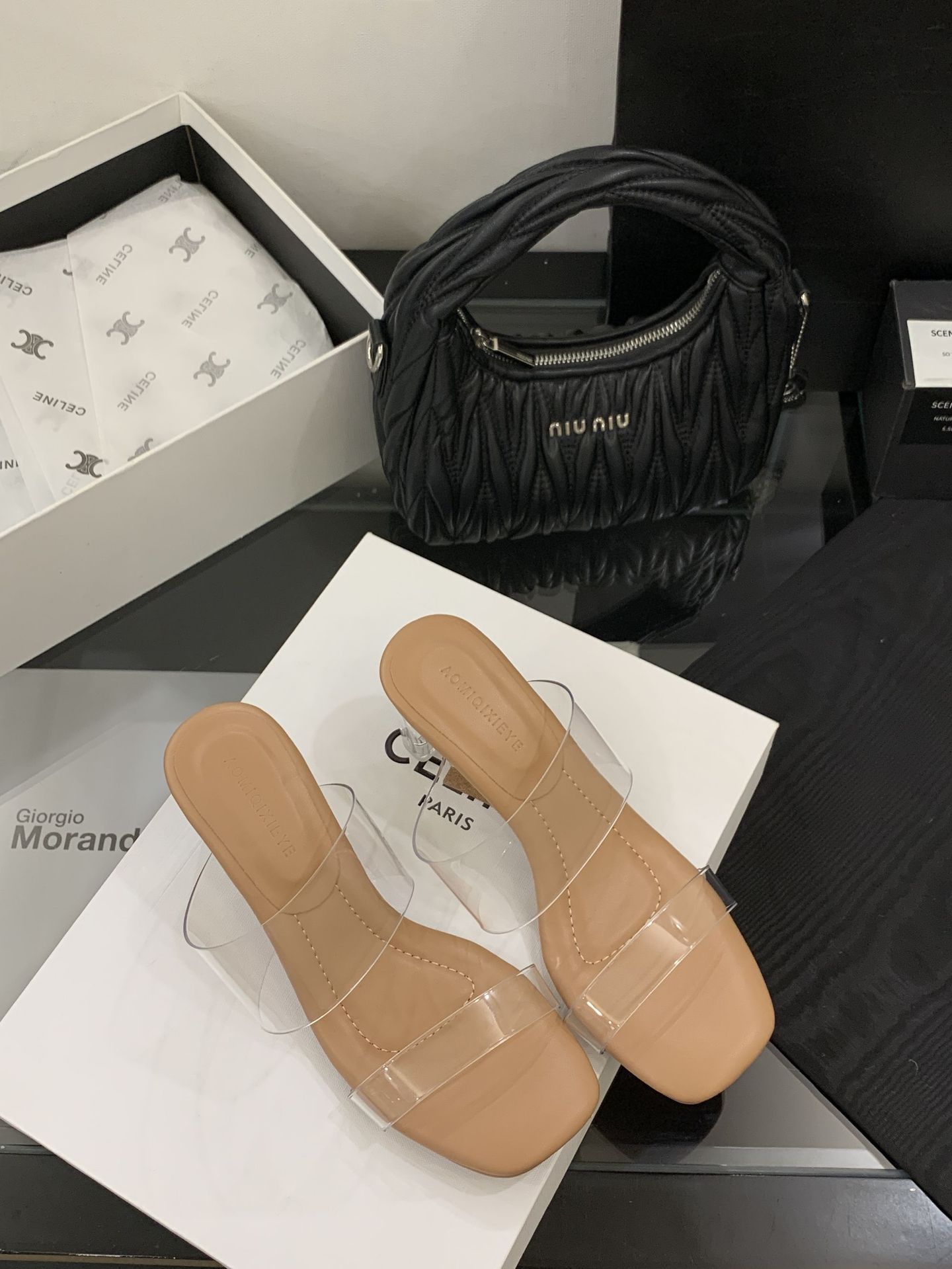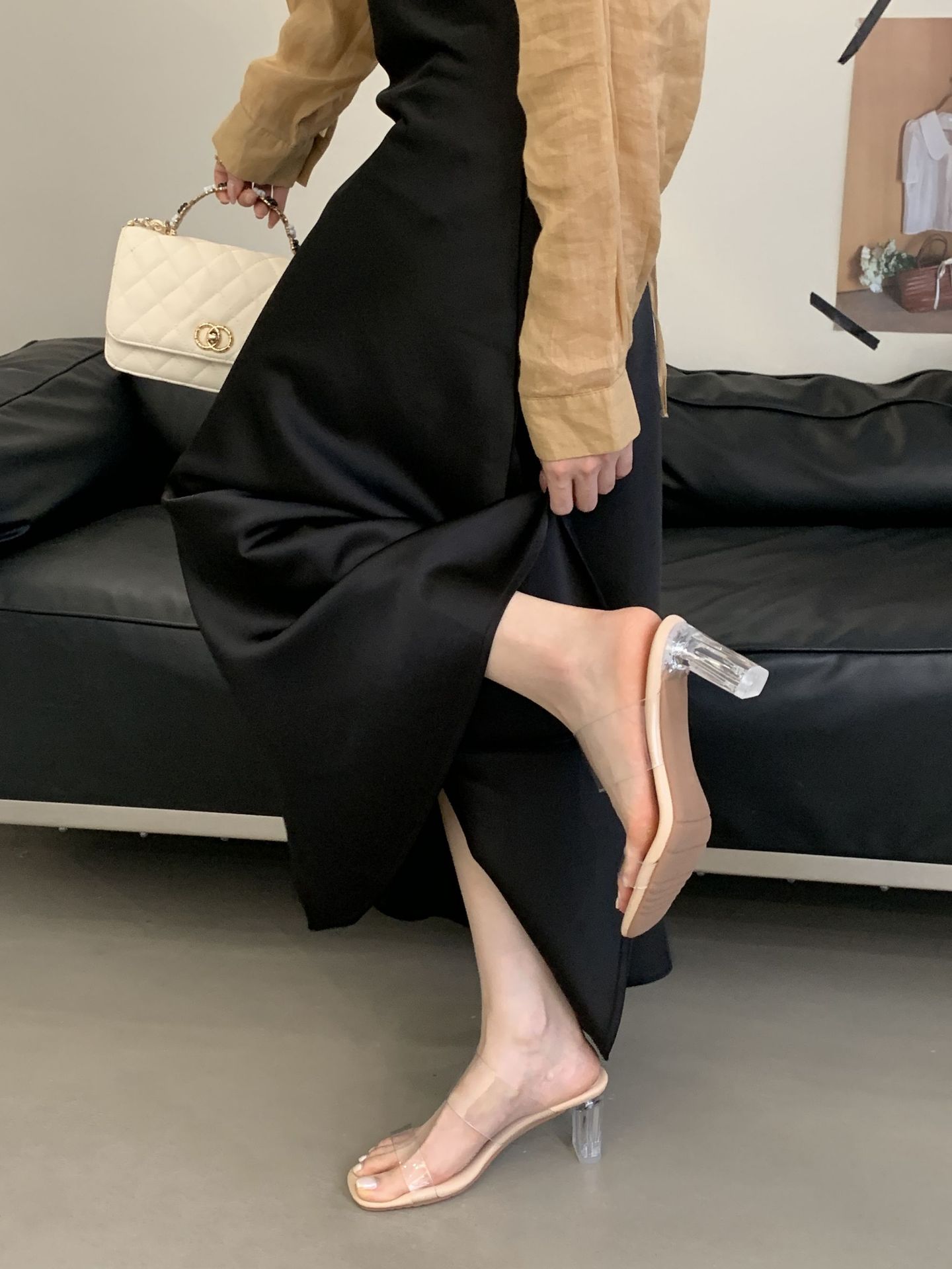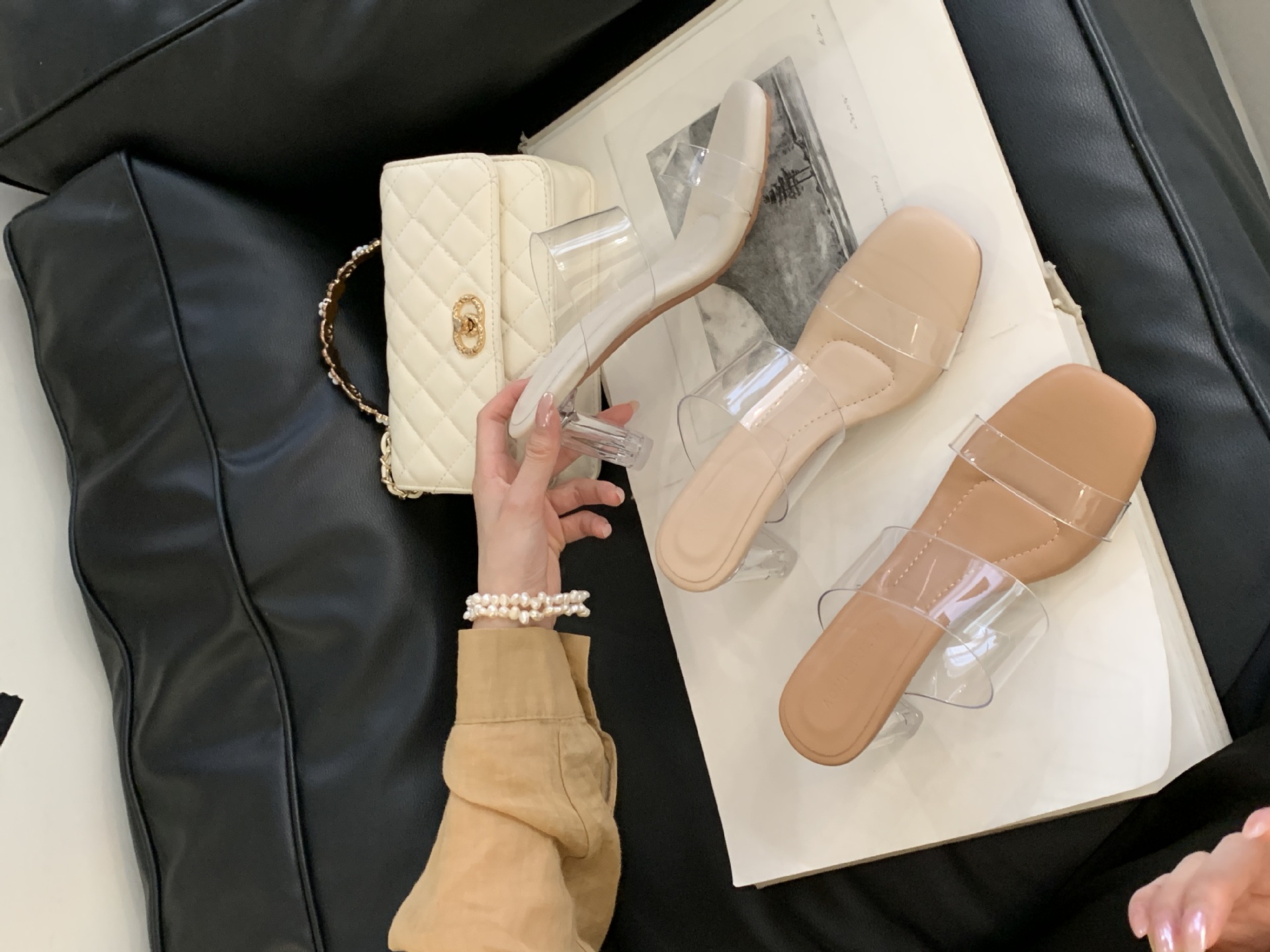 여성을위한 크리스탈 투명한 하이힐 샌들 2025 여름 새로운 패션 투명한 고무 슬리퍼 패션 두꺼운 굽 외부 슬리퍼