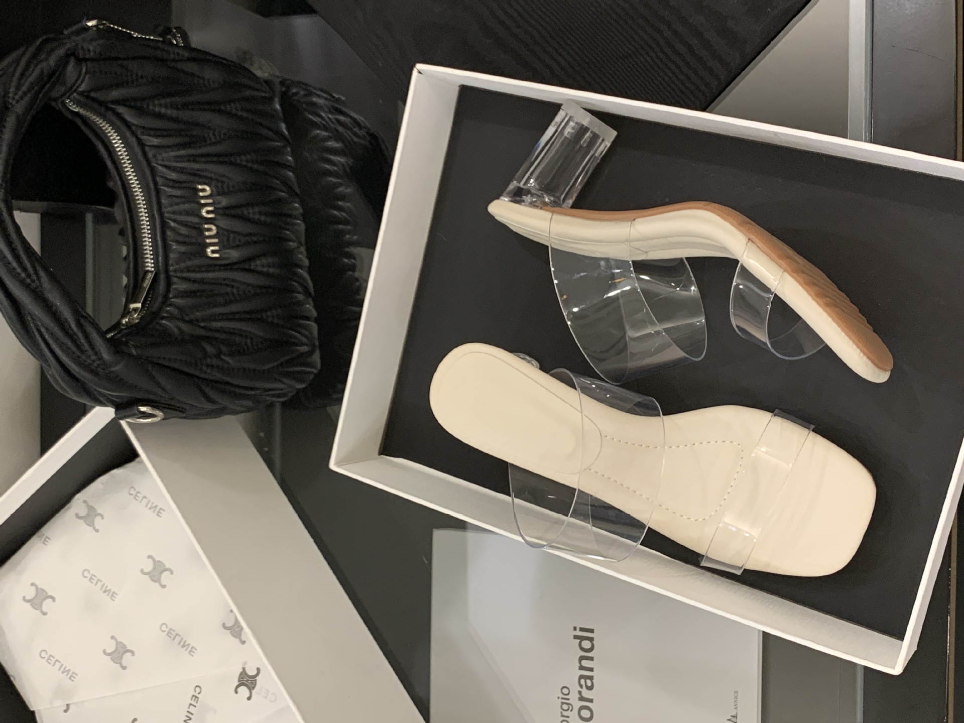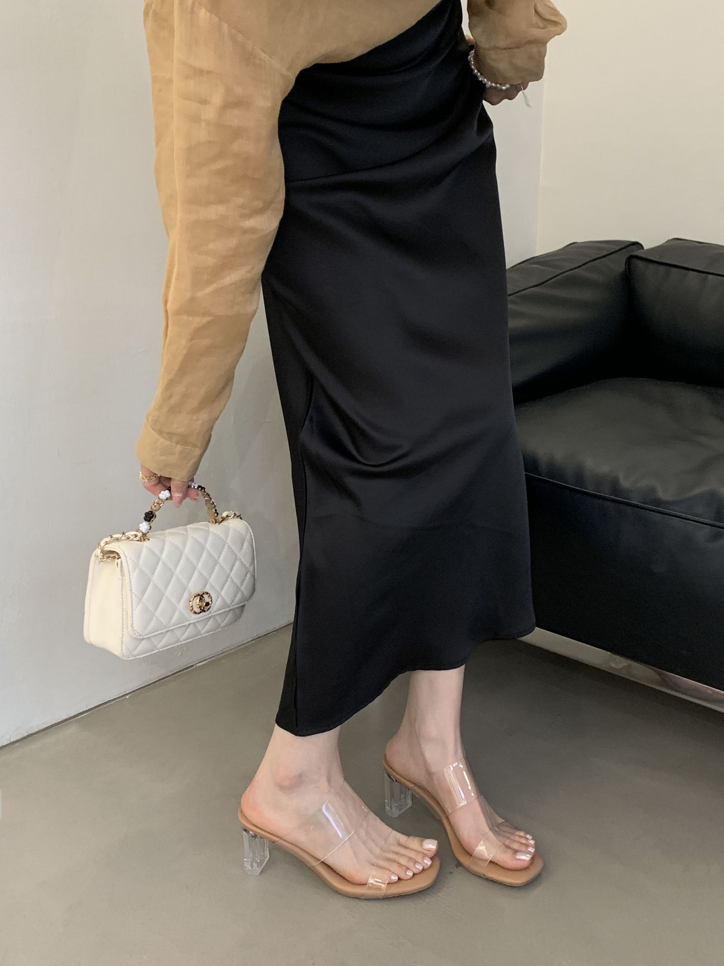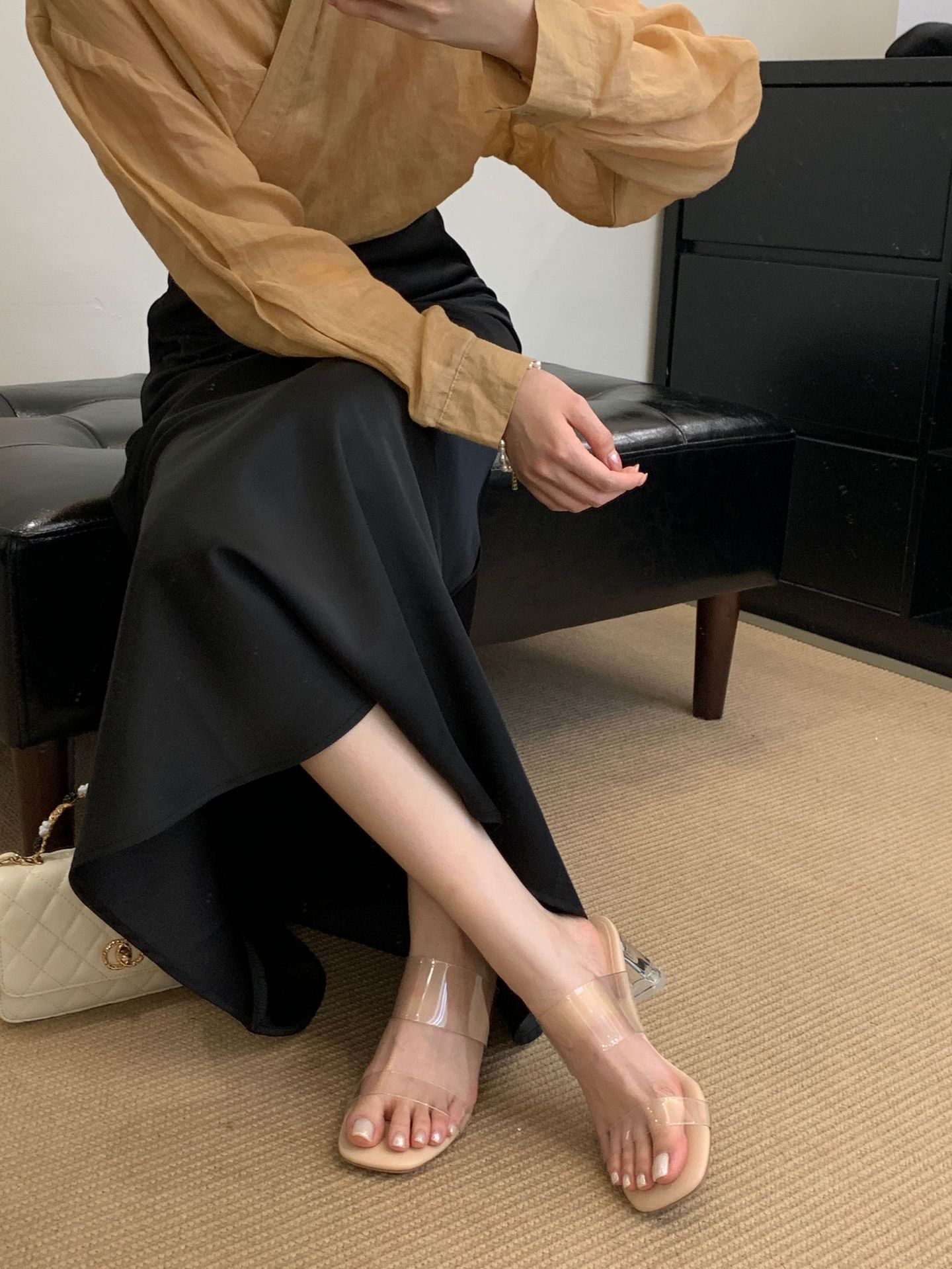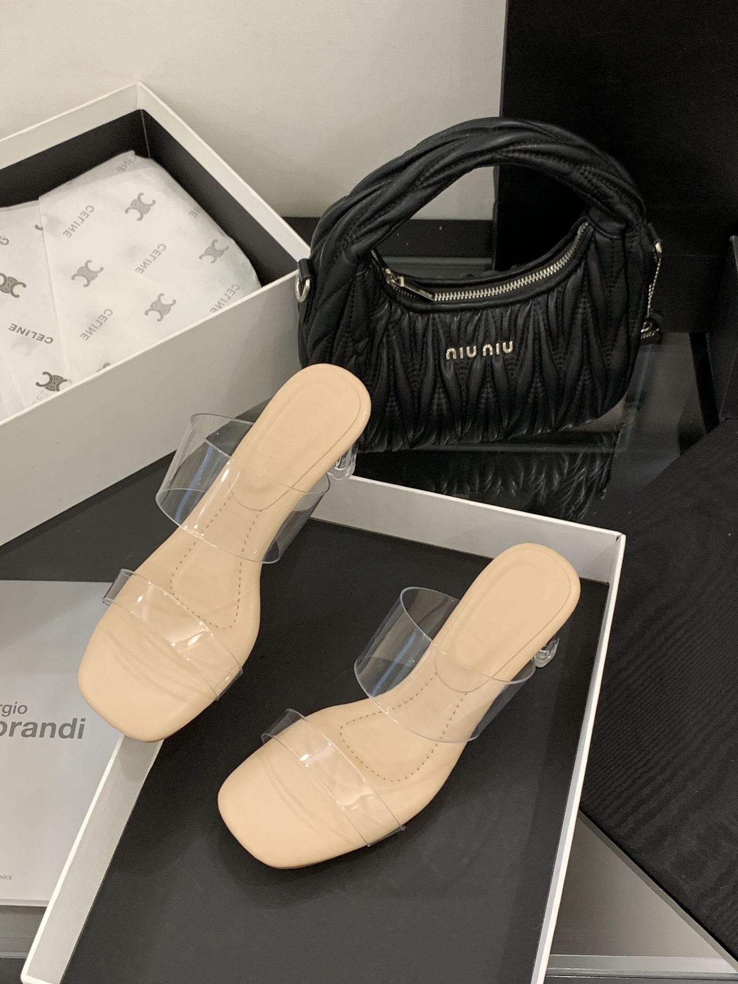 여성을위한 크리스탈 투명한 하이힐 샌들 2025 여름 새로운 패션 투명한 고무 슬리퍼 패션 두꺼운 굽 외부 슬리퍼