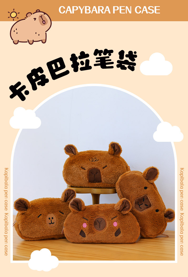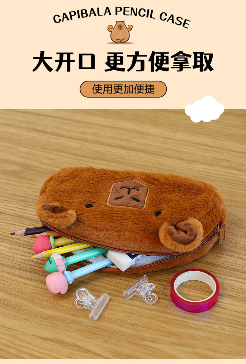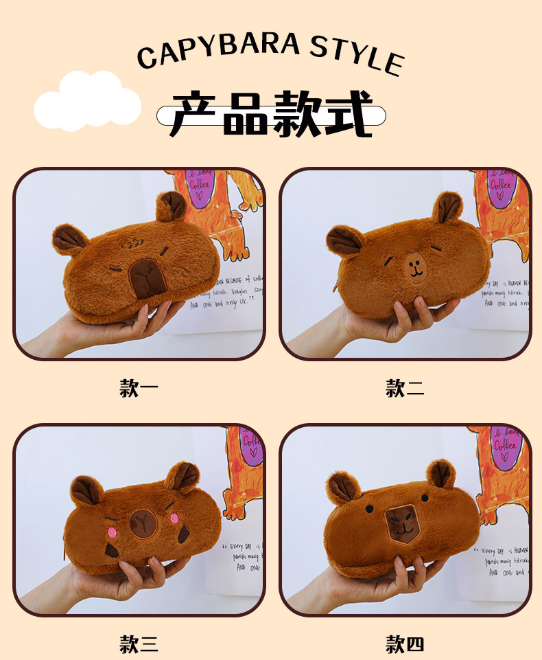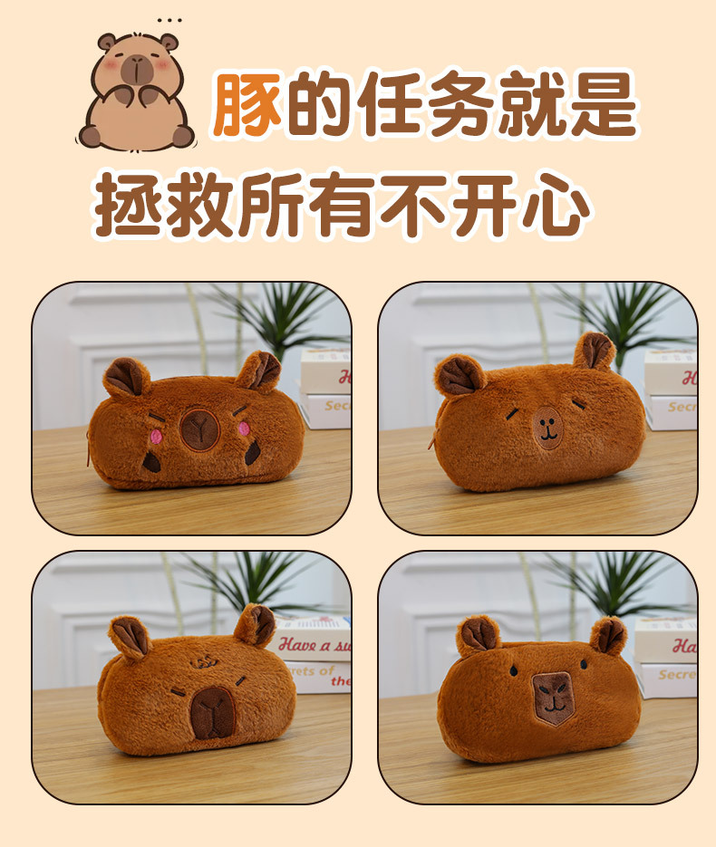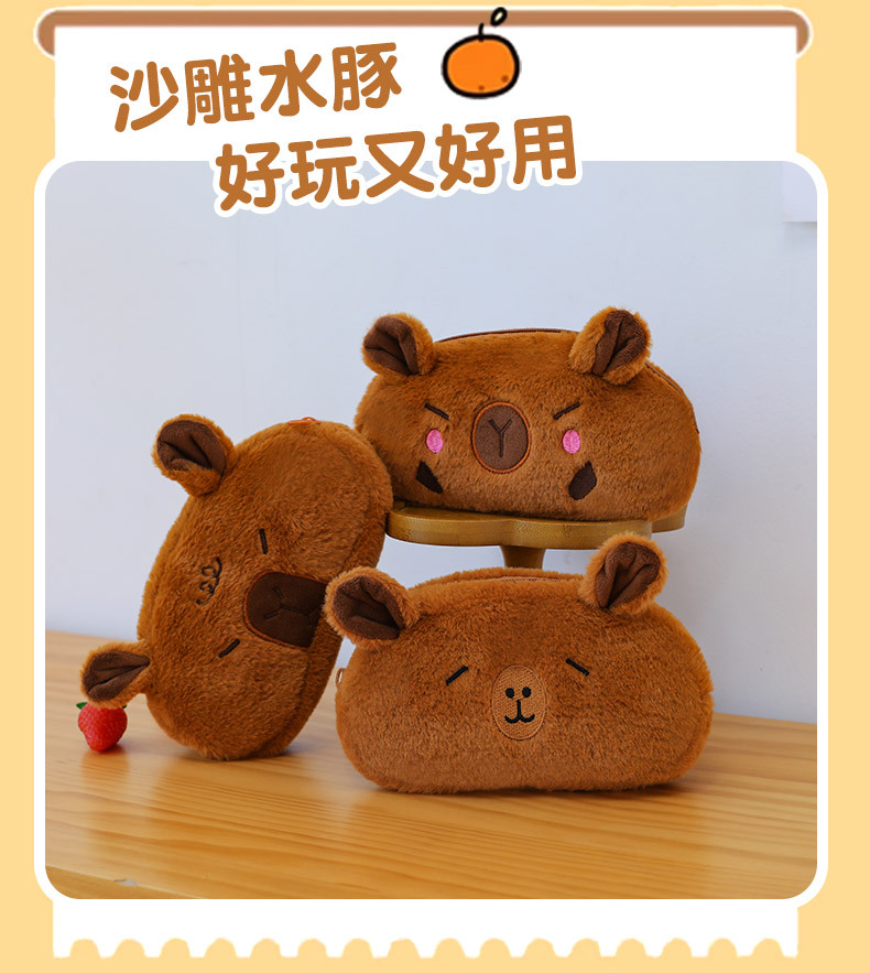 카피바라 플러시 가방 카피바라 연필 가방 귀여운 만화 문구 보관 가방 어린이와 학생을위한 대용량 문구 상자스토어 가기