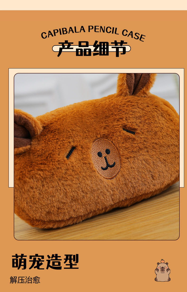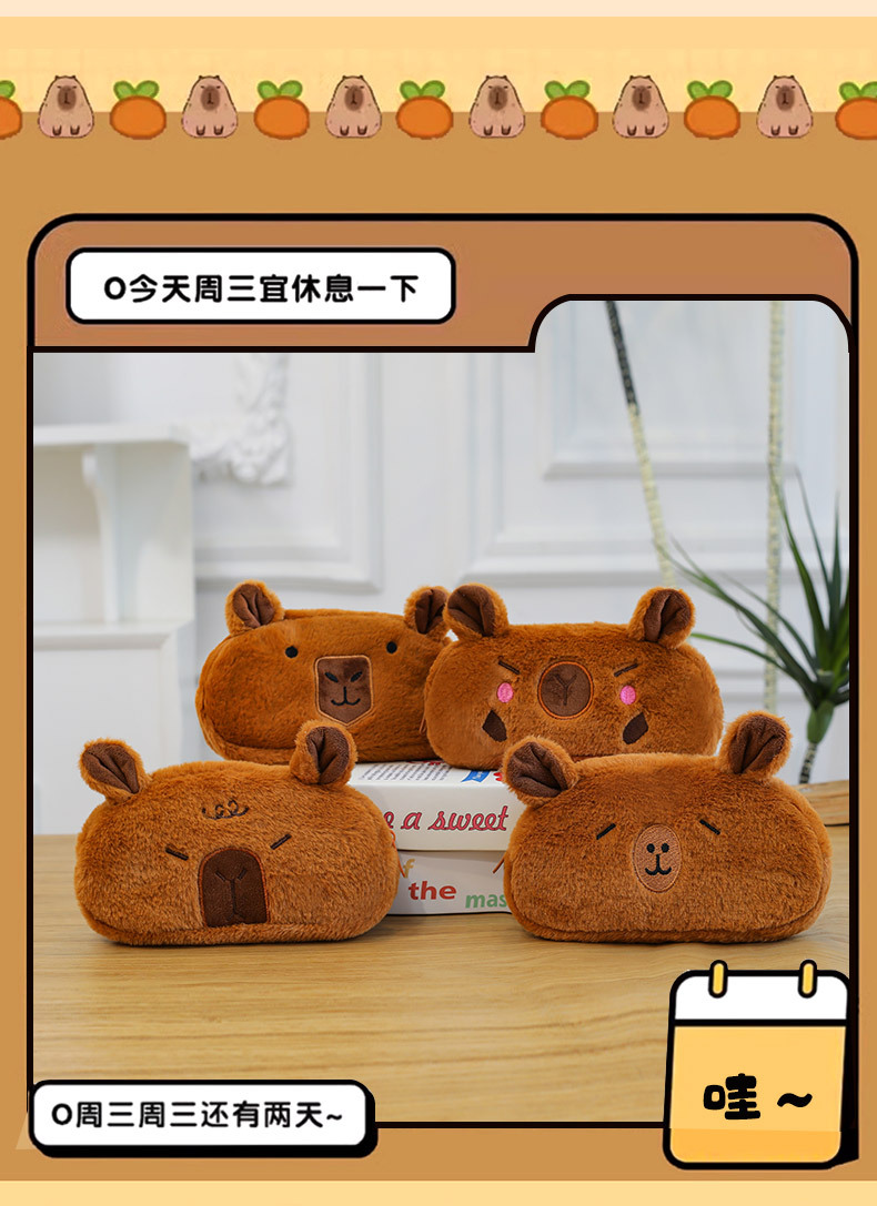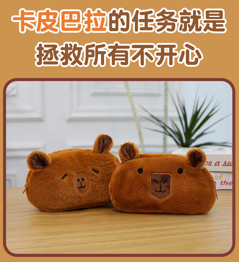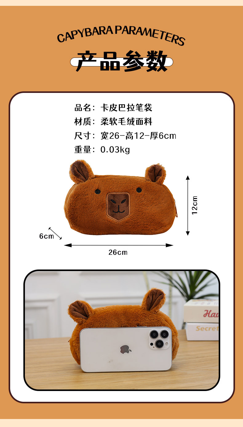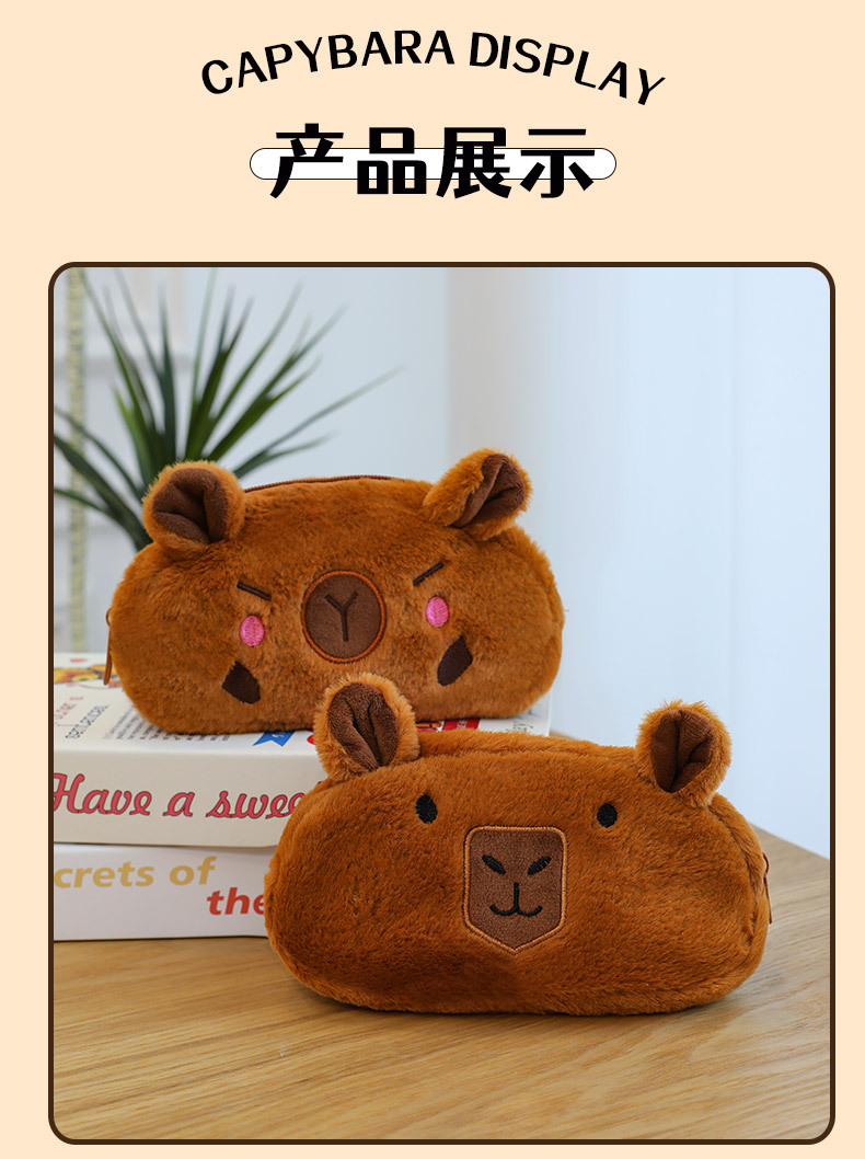 카피바라 플러시 가방 카피바라 연필 가방 귀여운 만화 문구 보관 가방 어린이와 학생을위한 대용량 문구 상자스토어 가기