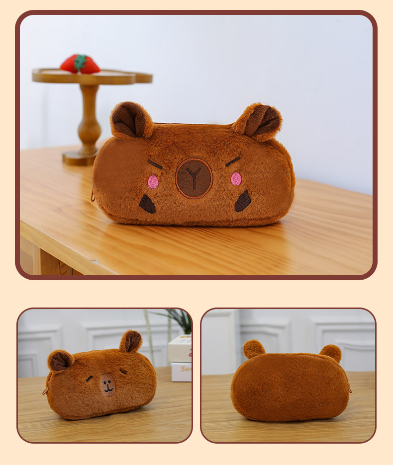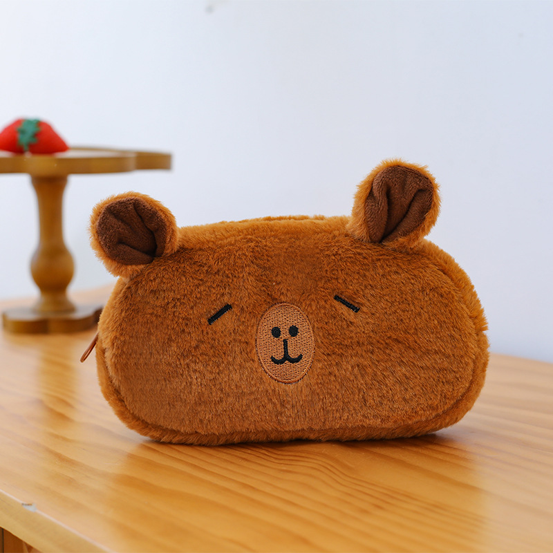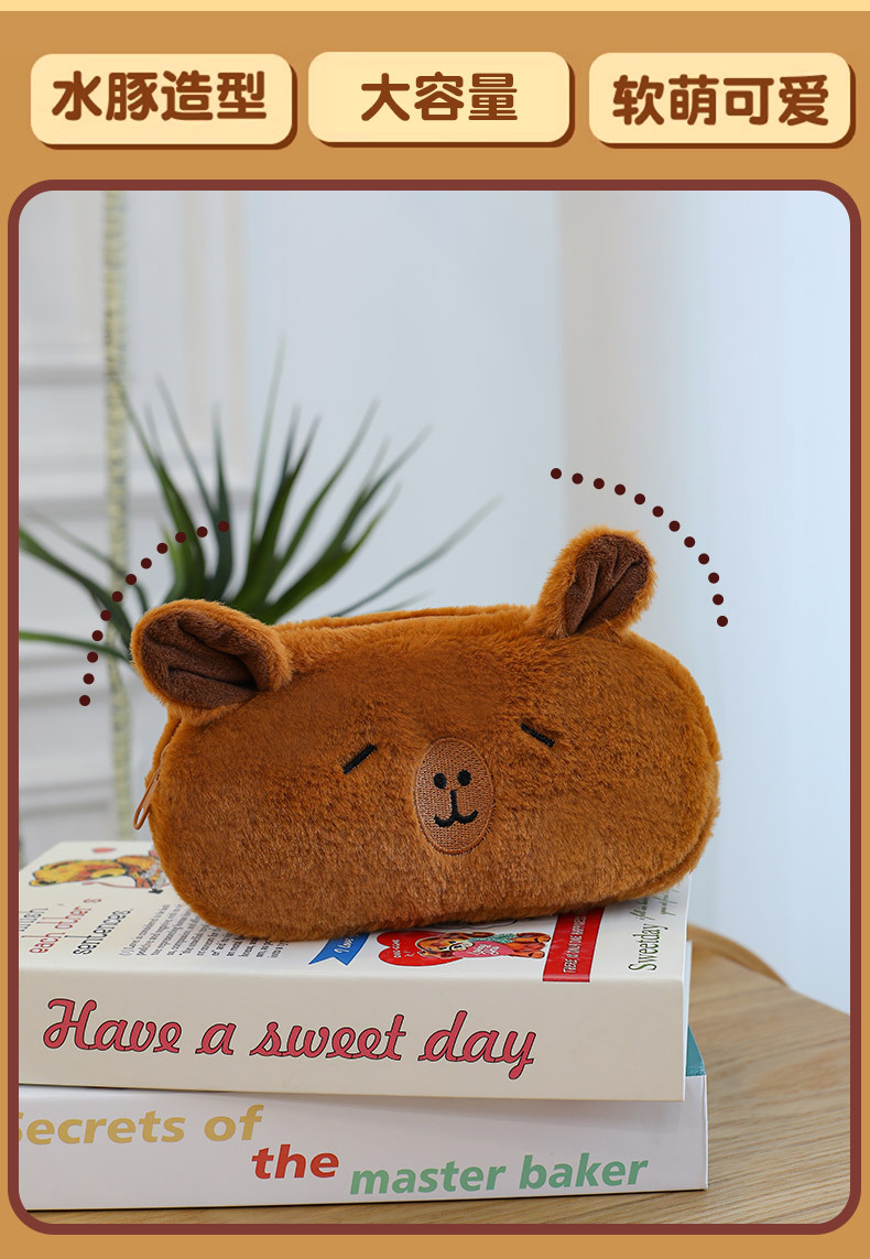 카피바라 플러시 가방 카피바라 연필 가방 귀여운 만화 문구 보관 가방 어린이와 학생을위한 대용량 문구 상자