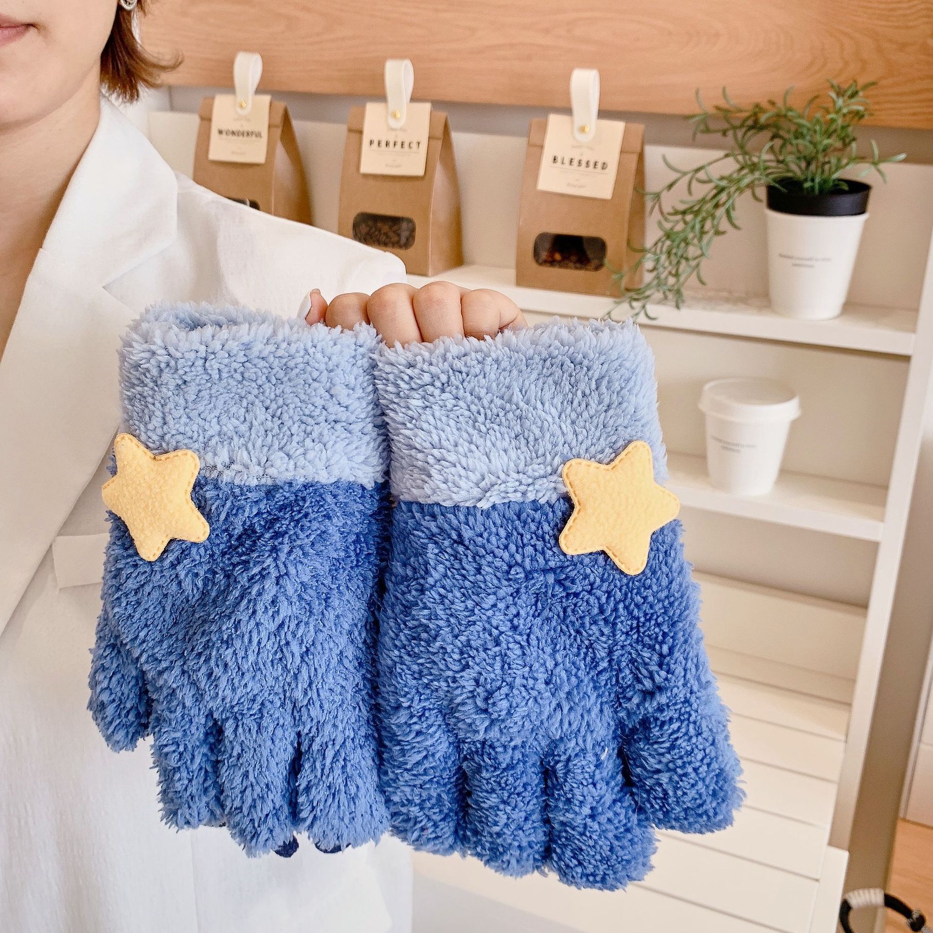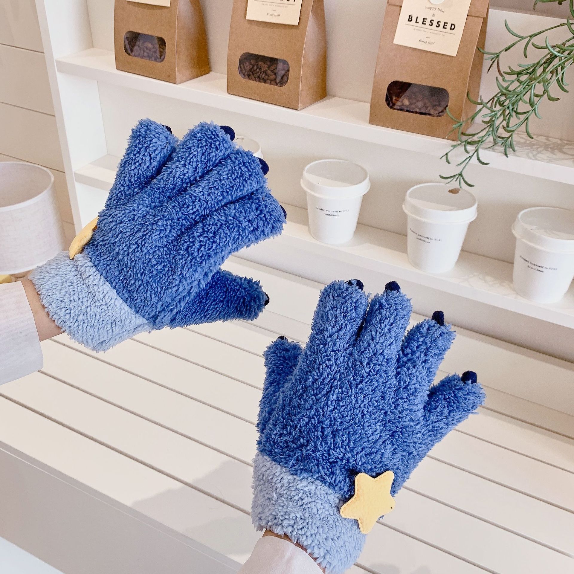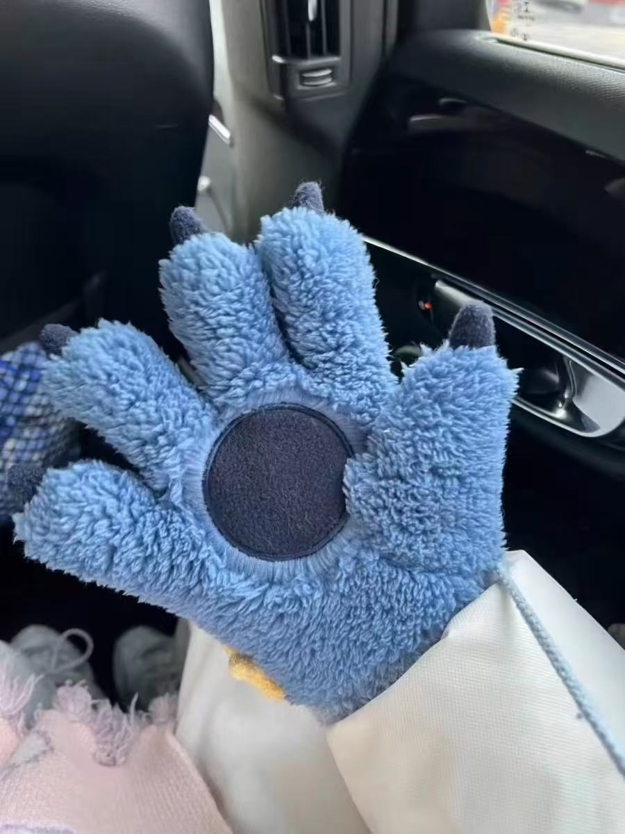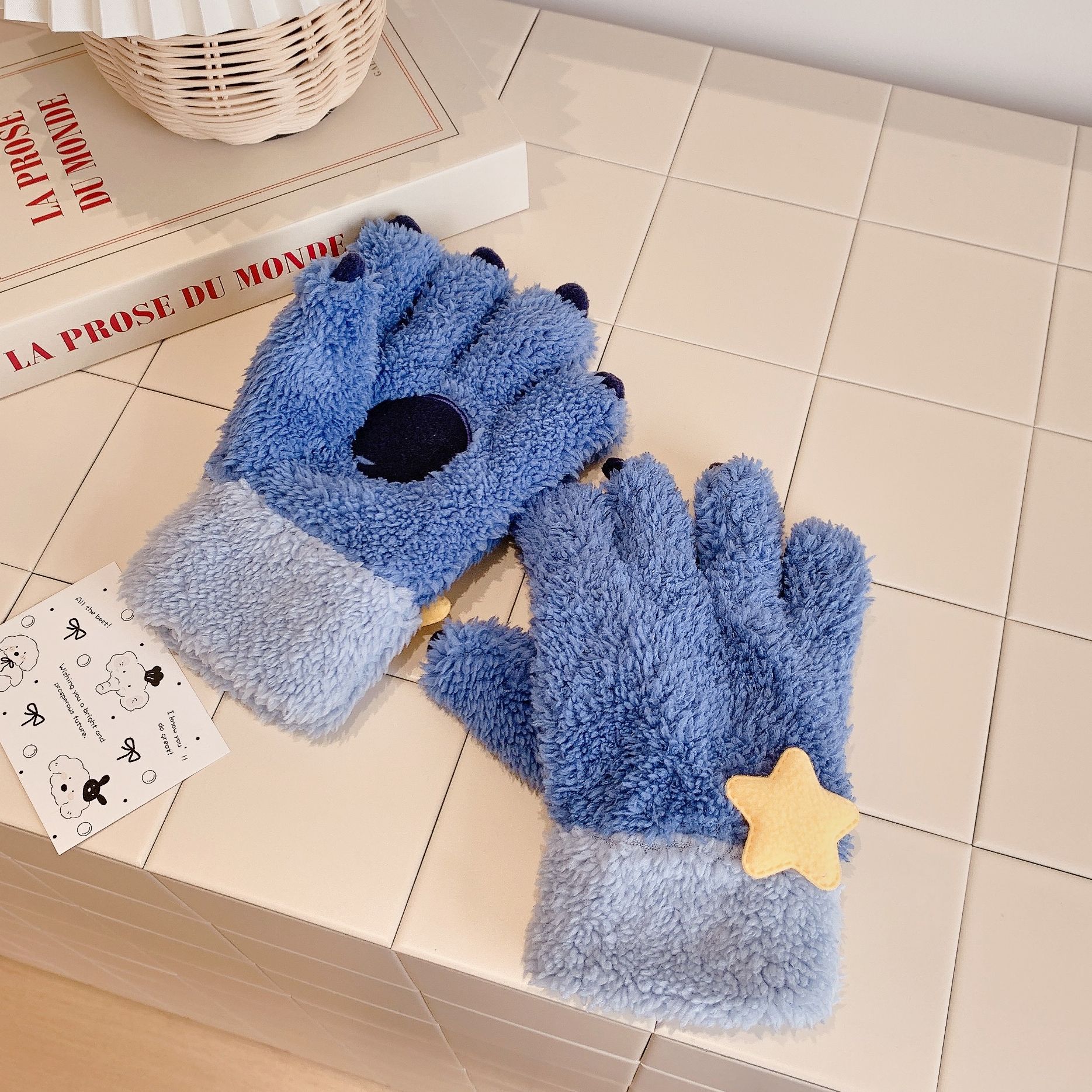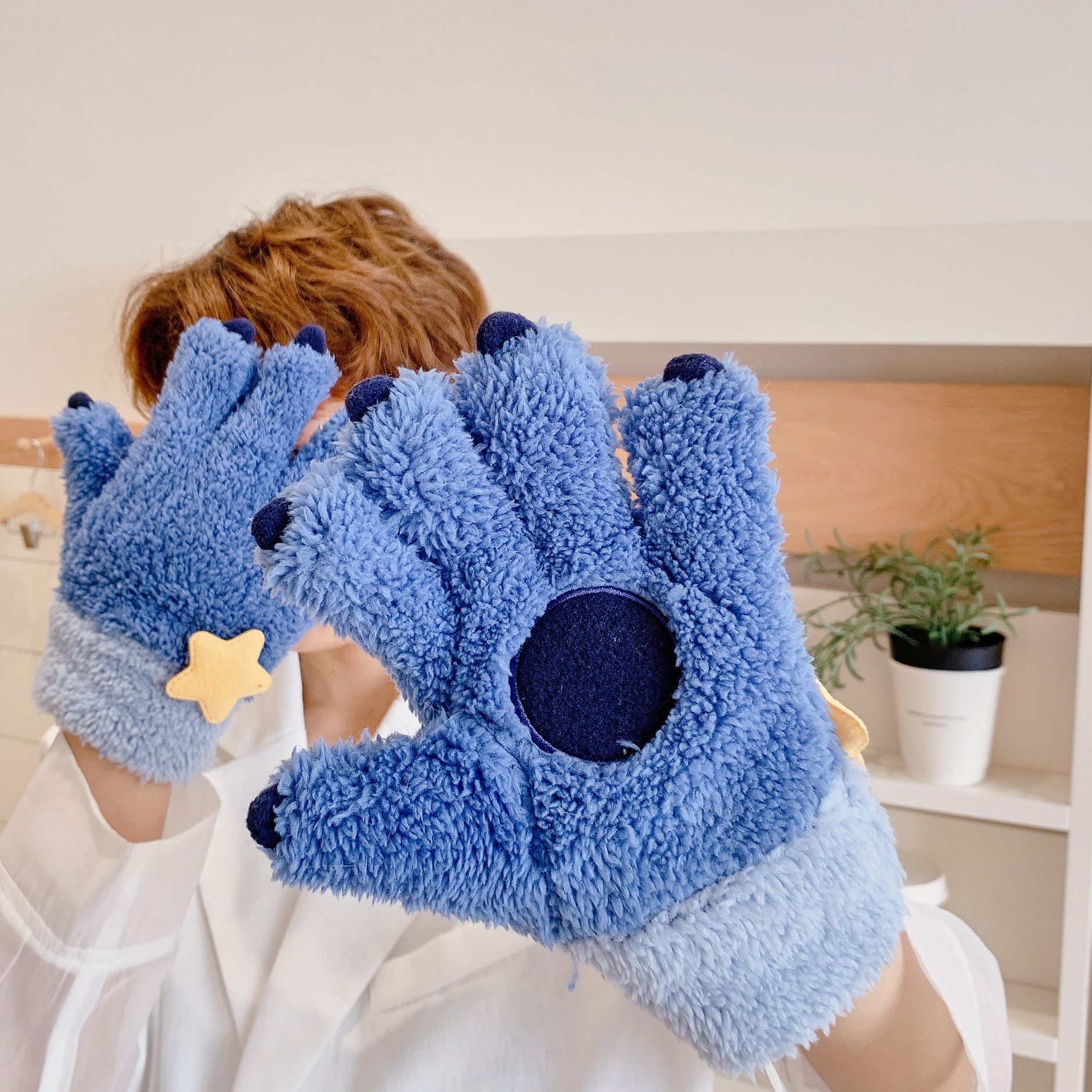 여성을위한 귀여운 스티치 발 다섯 손가락 플러시 장갑 겨울 2025 새로운 두꺼운 방한 및 따뜻한 학생 사이클링스토어 가기