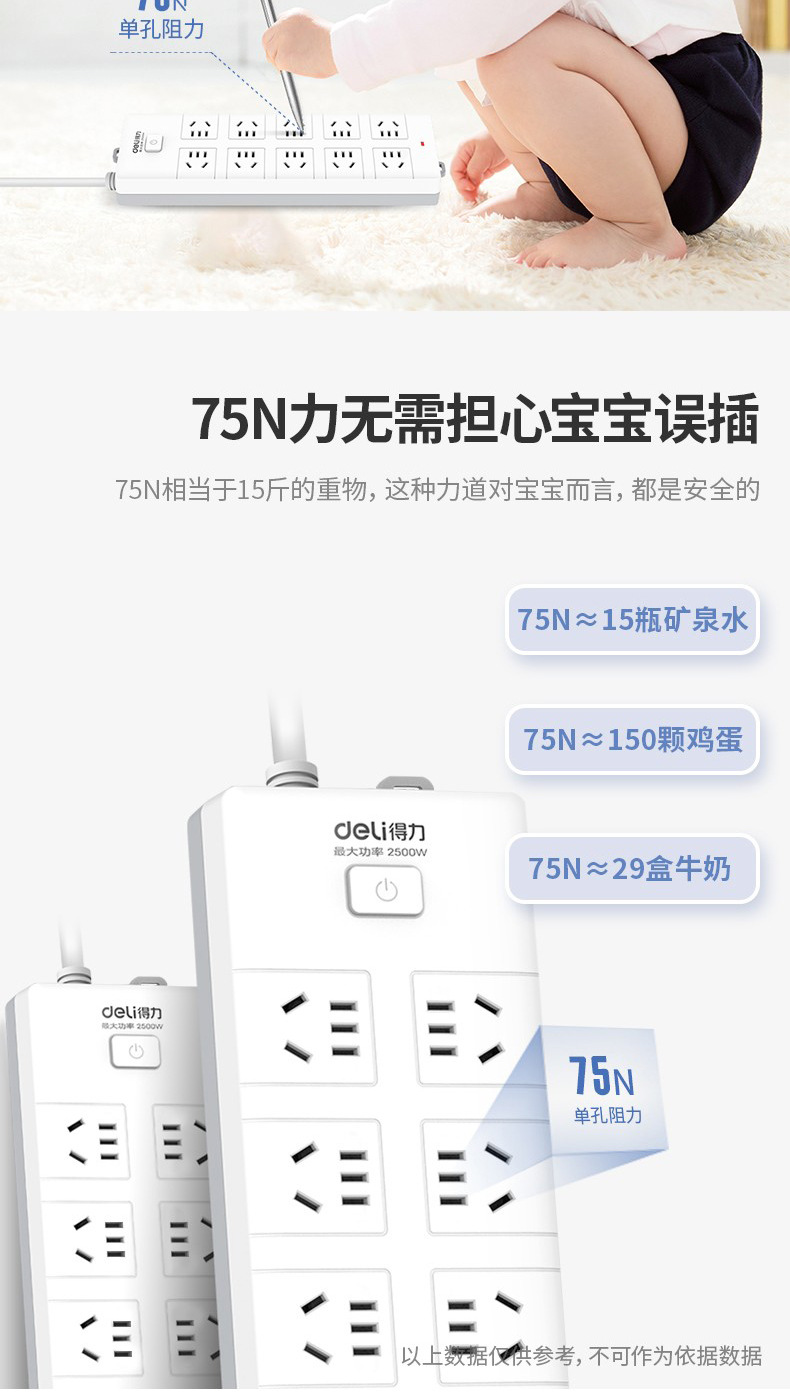 Deli 18275-05/10 홀/ 5m 새로운 국가 표준 소켓 전원 플러그 배선 보드 다기능 플러그스토어 가기