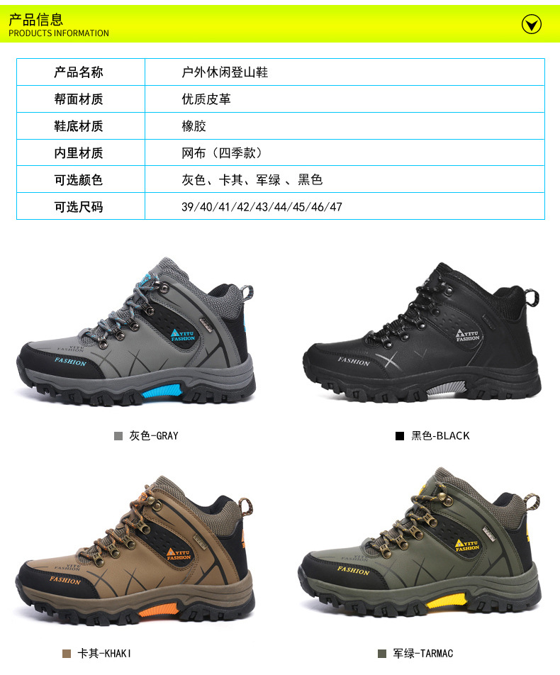 사계절용 남성 신발 대형 사이즈 47 야외 하이탑 등산화 남성용 미끄럼 방지 내구성 오프로드 스포츠 하이킹화스토어 가기