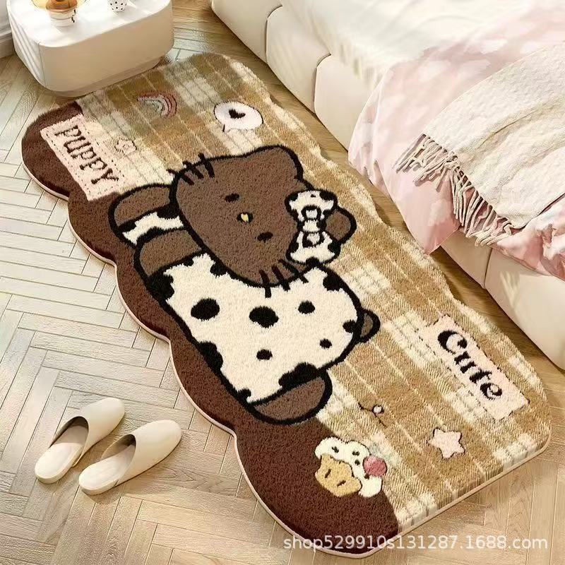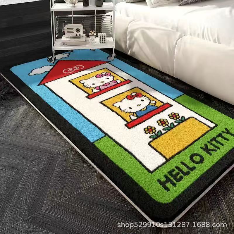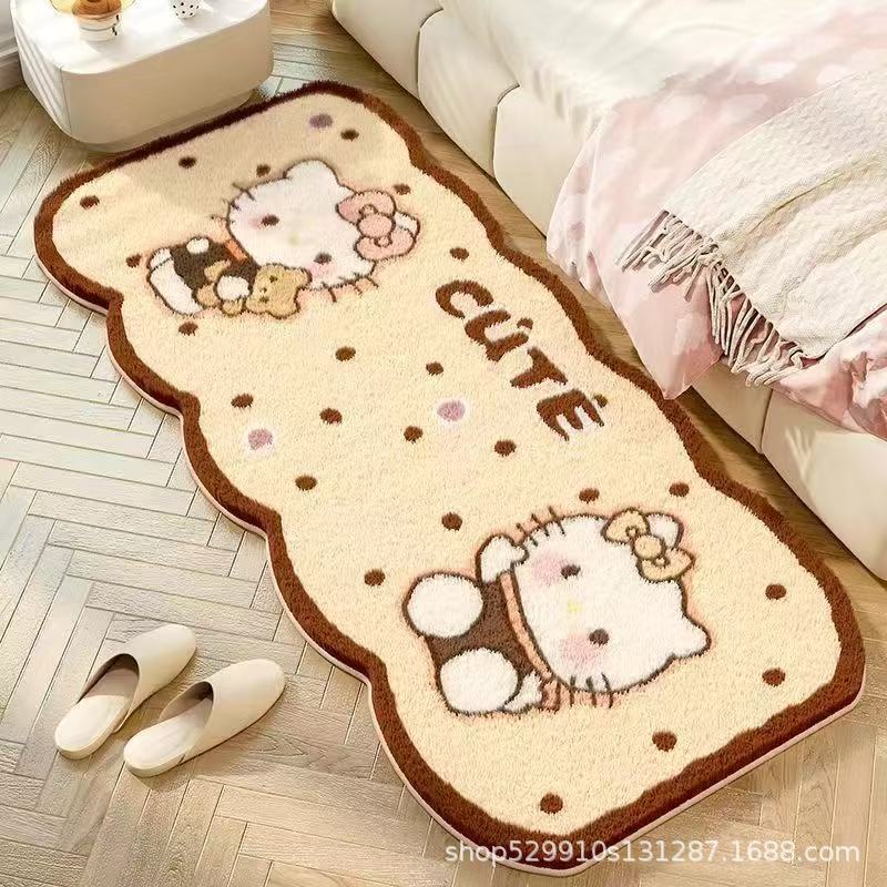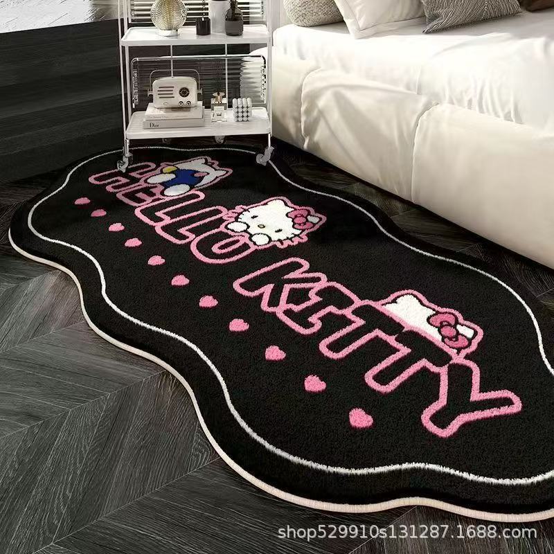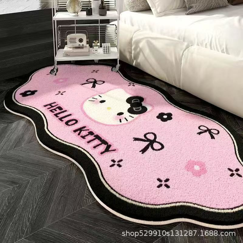 만화 헬로 키티 특별한 모양의 모조 캐시미어 카펫 미끄럼 방지 소녀 스타일 어린이 방 침실 범용 카펫 침대 옆 담요스토어 가기
