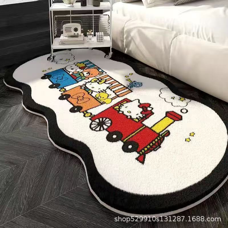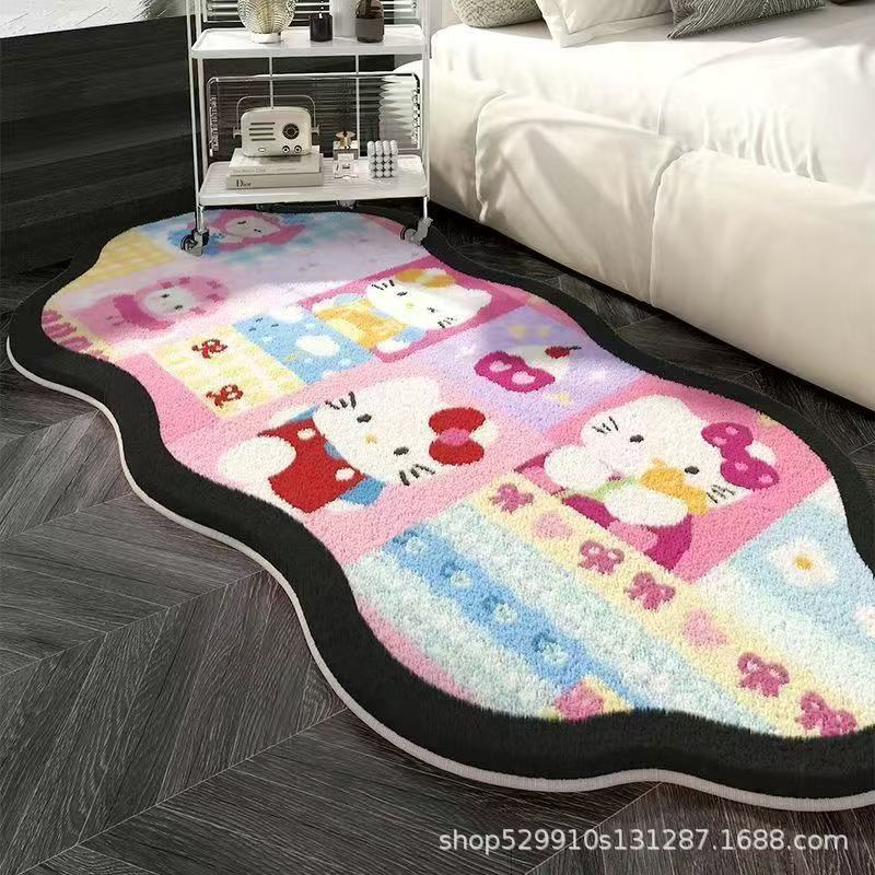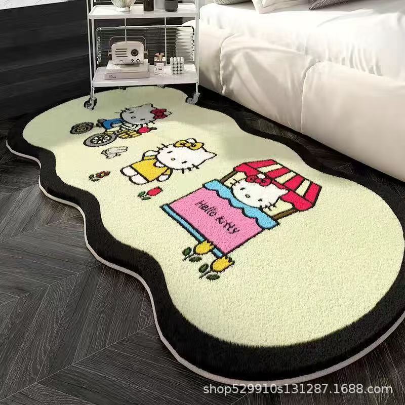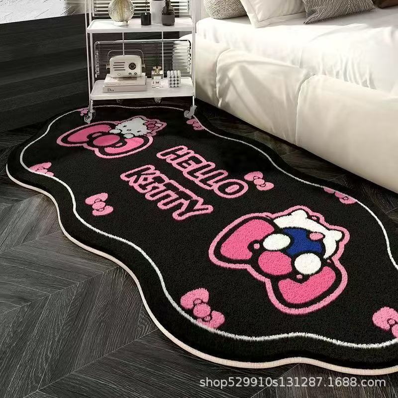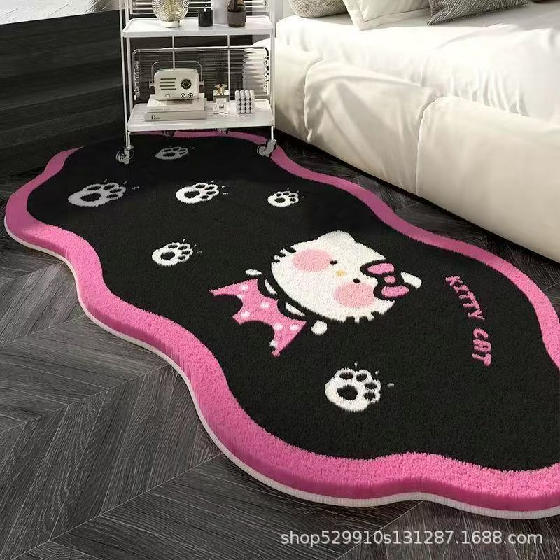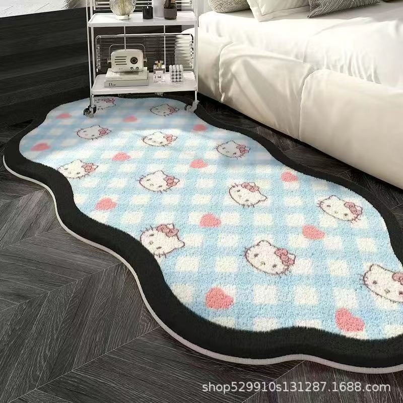 만화 헬로 키티 특별한 모양의 모조 캐시미어 카펫 미끄럼 방지 소녀 스타일 어린이 방 침실 범용 카펫 침대 옆 담요