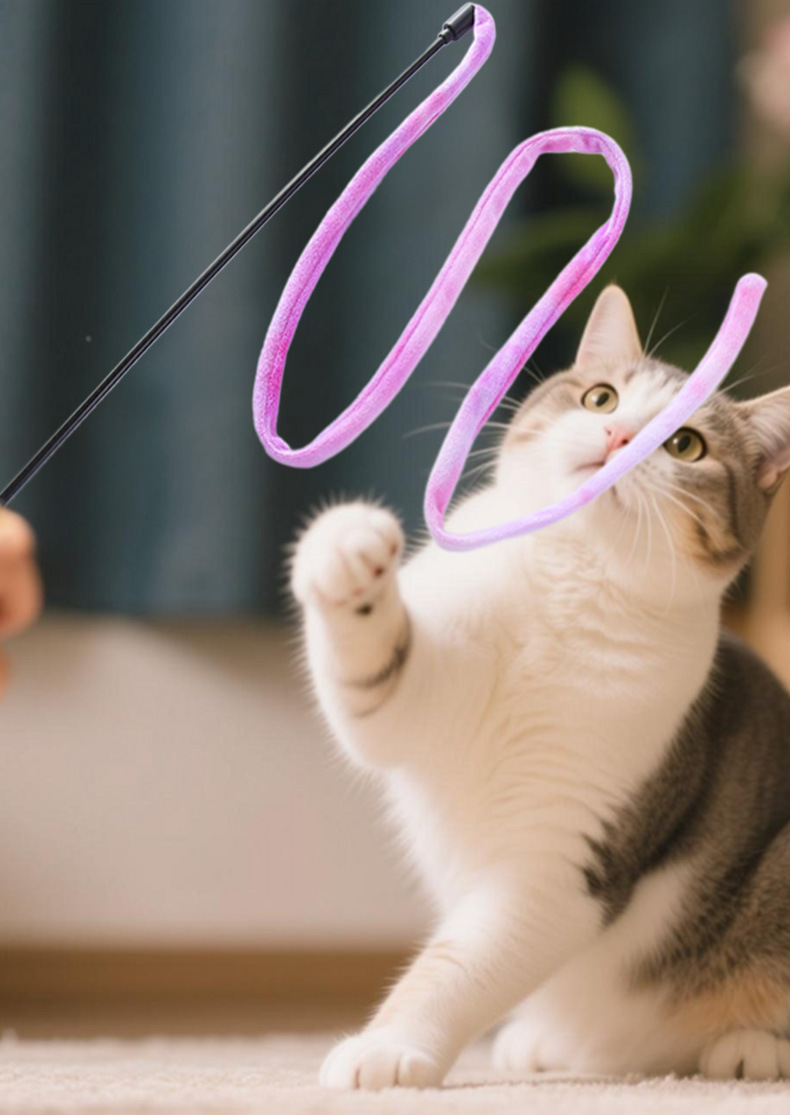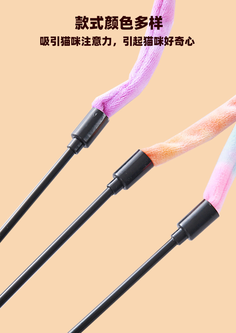애완 동물 플러시 장난감, 고양이 놀리는 스틱, 다채롭고 신선한 인쇄 새끼 고양이 요정 스틱, 자기 즐거움 및 지루함 해소 장난감, 도매 재고 있음