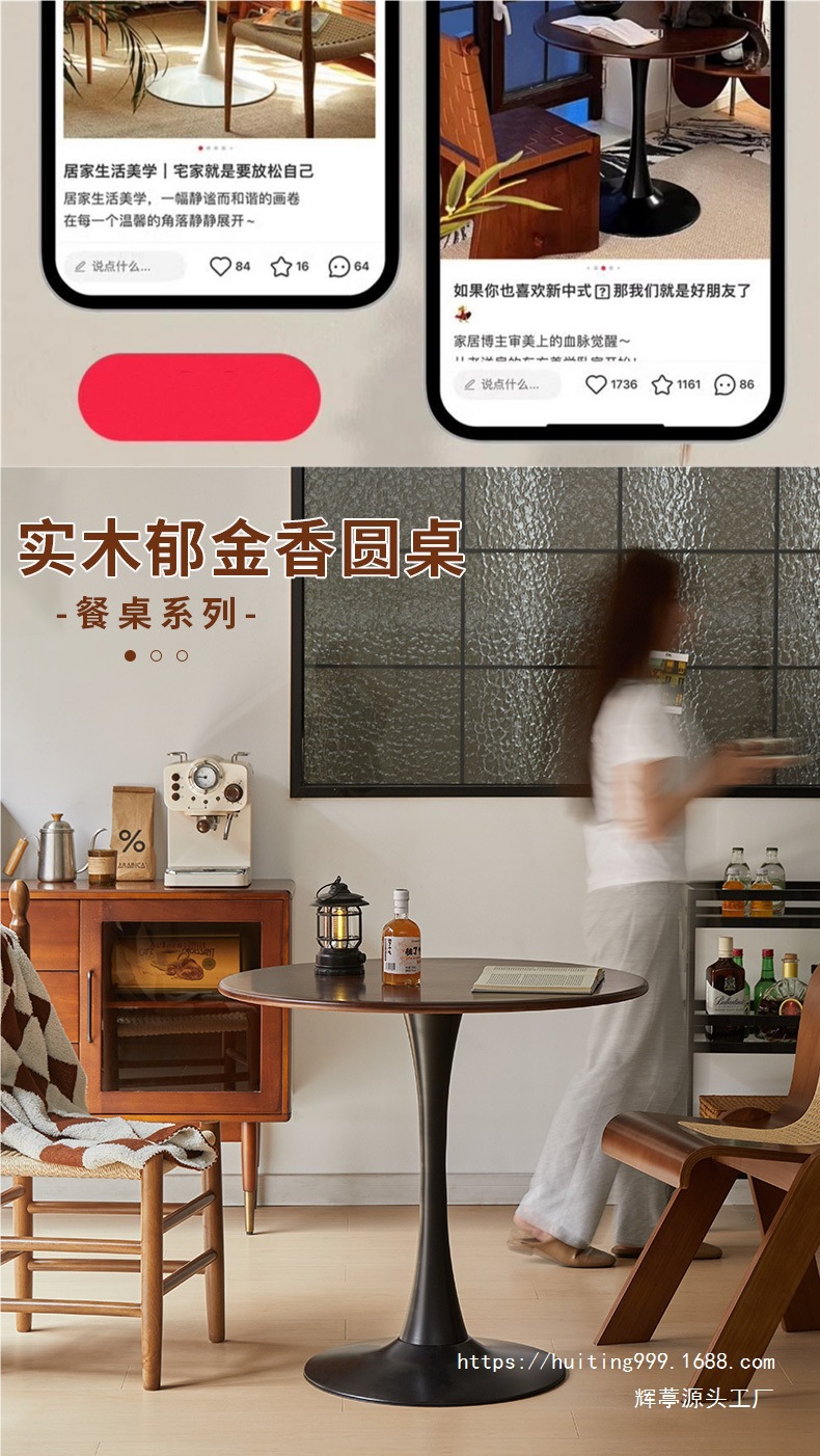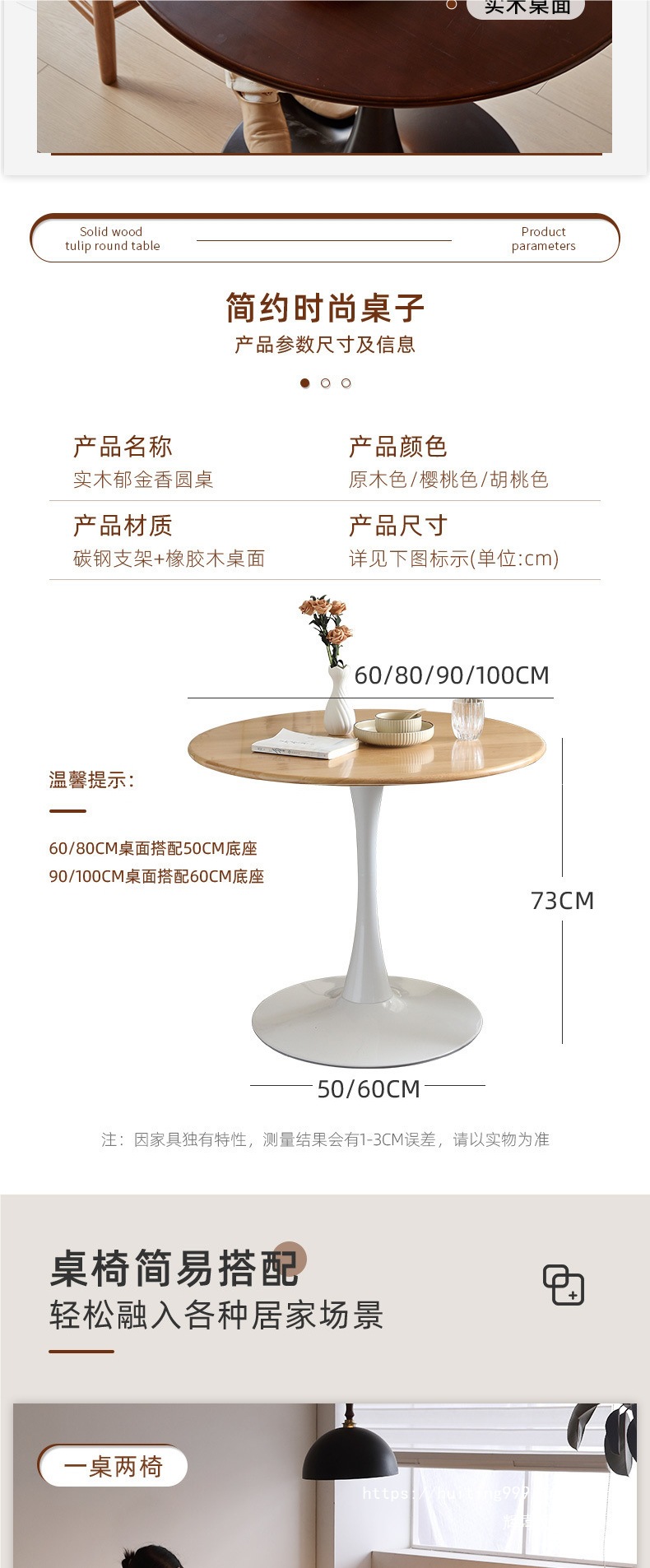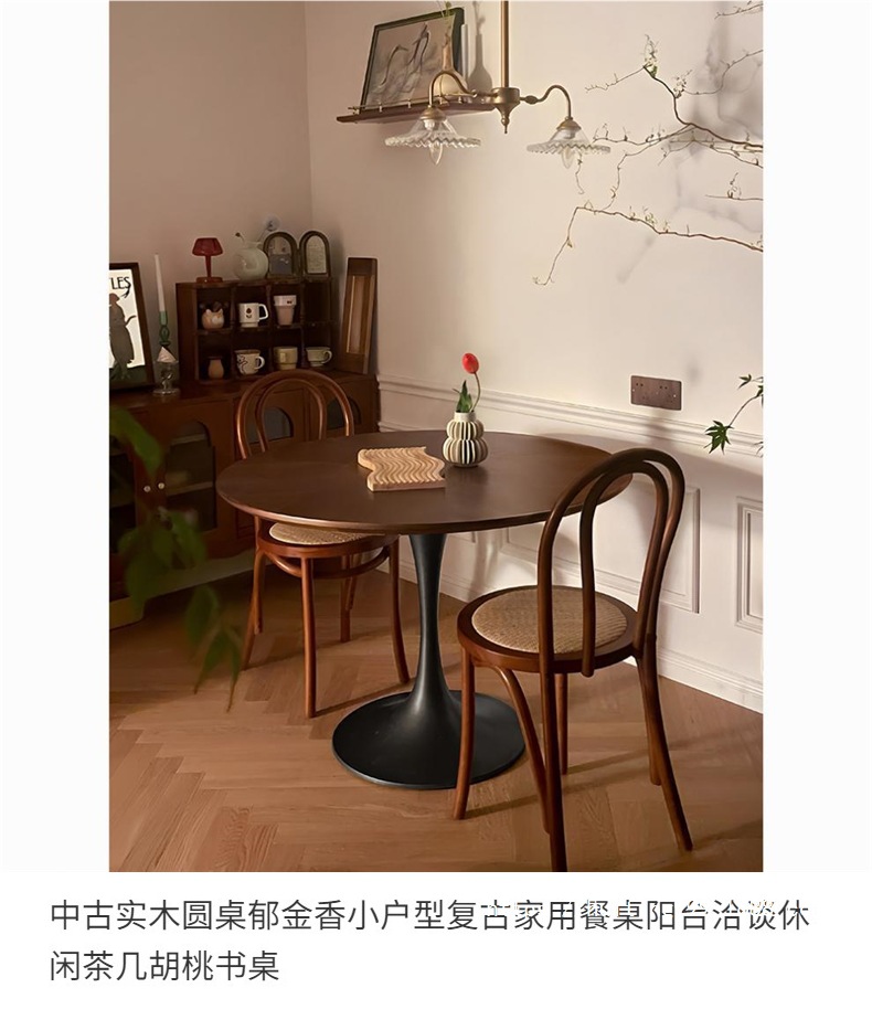 중세 단단한 나무 원형 테이블 튤립 작은 아파트 복고풍 홈 식탁 발코니 협상 레저 커피 테이블 호두 책상스토어 가기