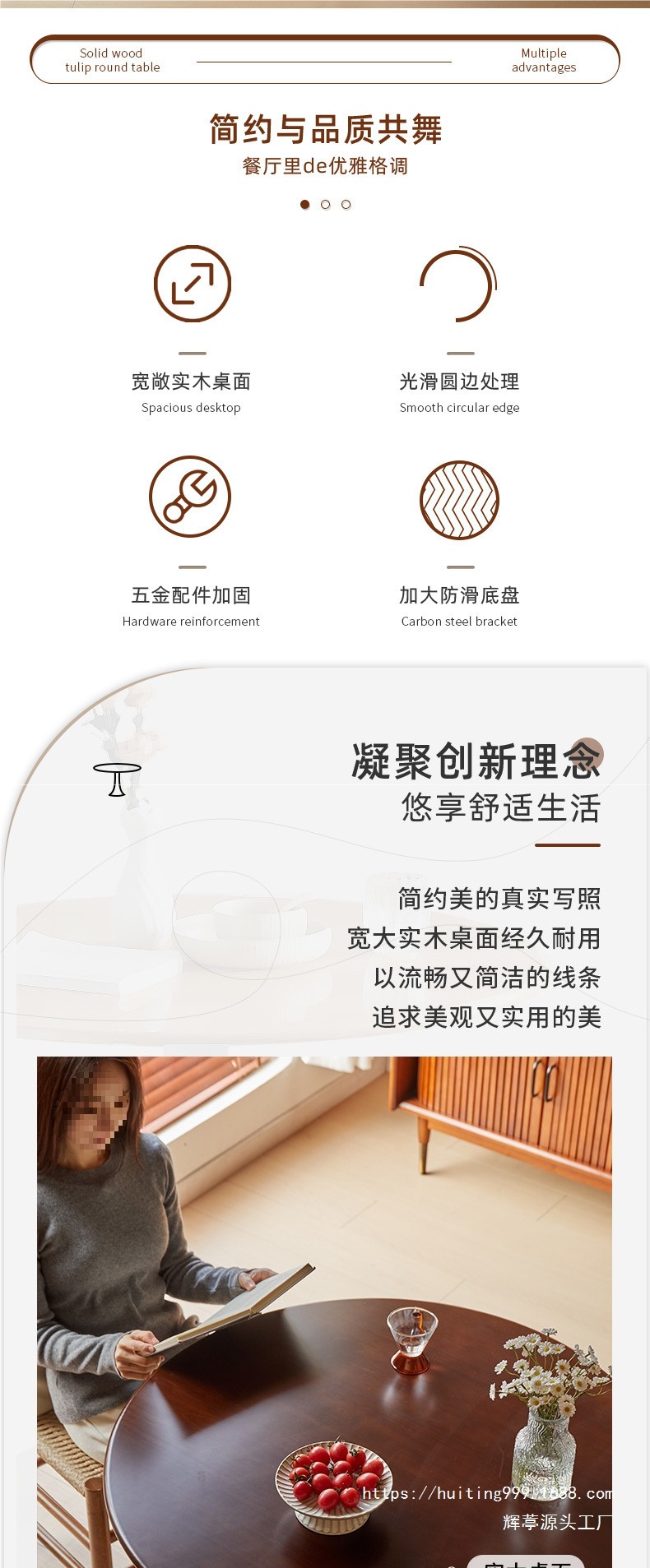 중세 단단한 나무 원형 테이블 튤립 작은 아파트 복고풍 홈 식탁 발코니 협상 레저 커피 테이블 호두 책상