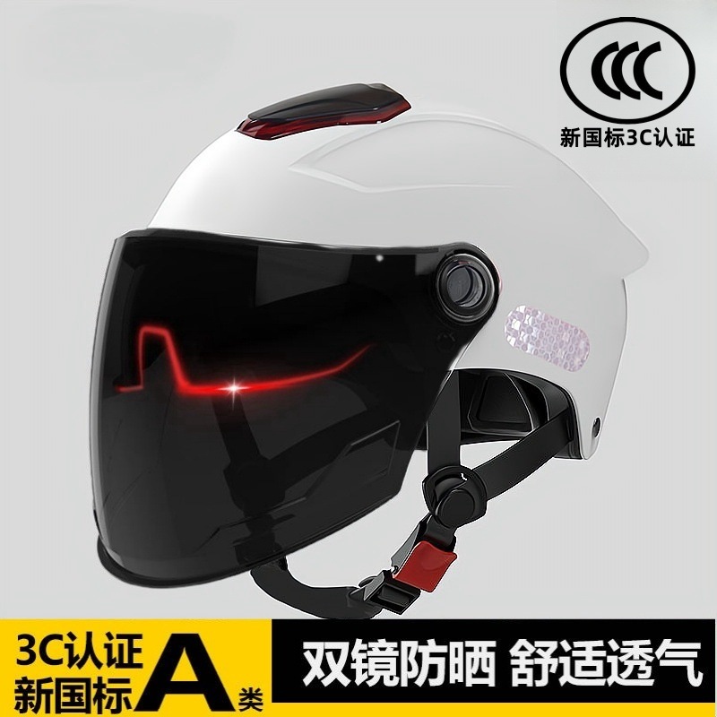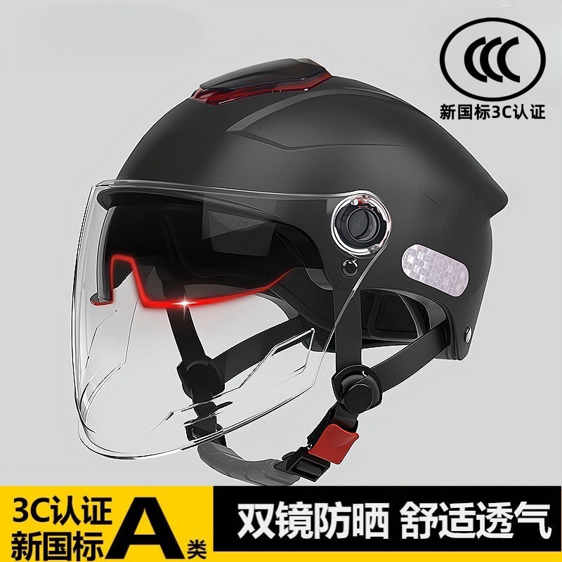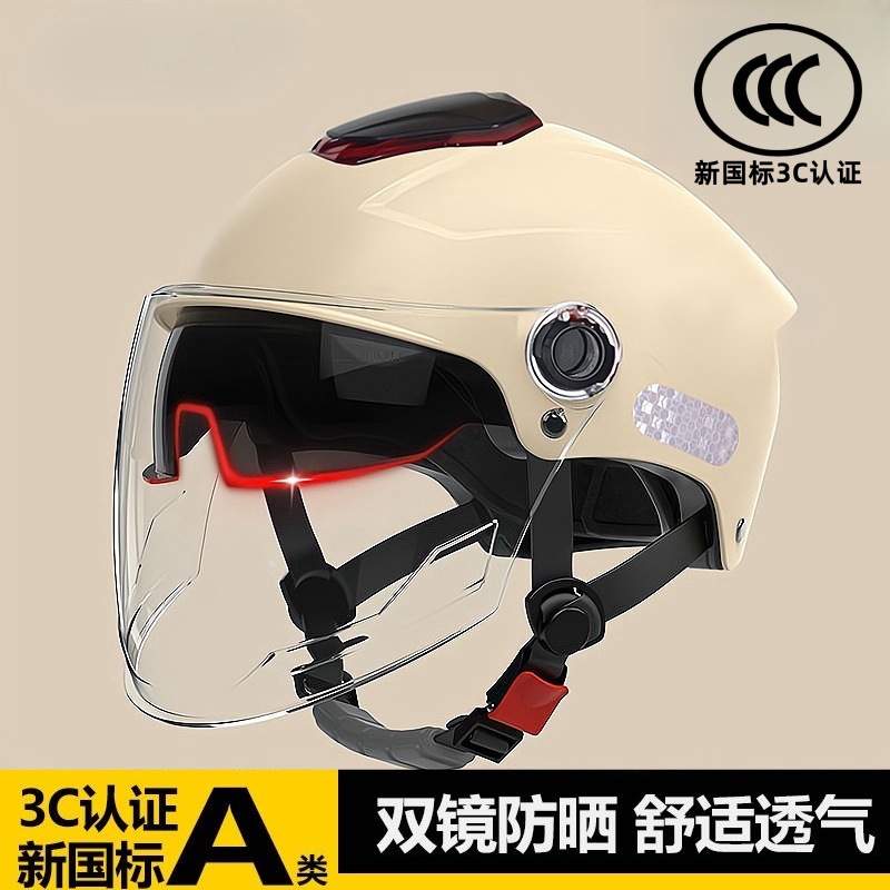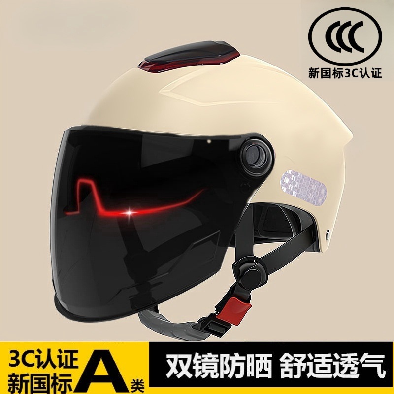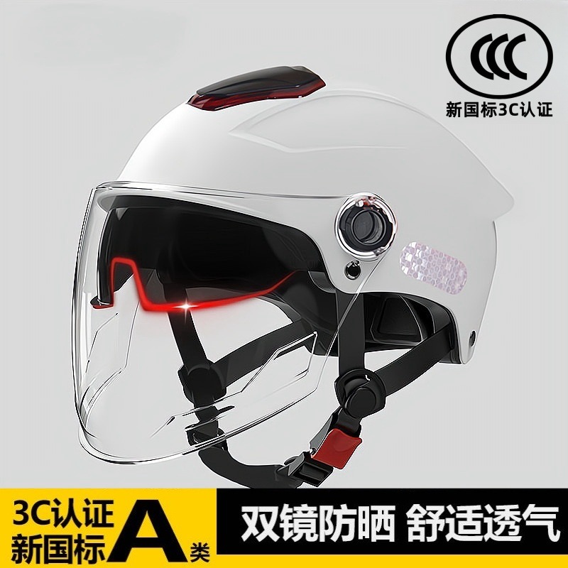 남성과 여성을 위한 3C 인증 전기 배터리 자전거 헬멧, 여름 자외선 차단, 국가 표준 이중 미러 하프 헬멧, 모든 계절에 적합한 안전 헬멧